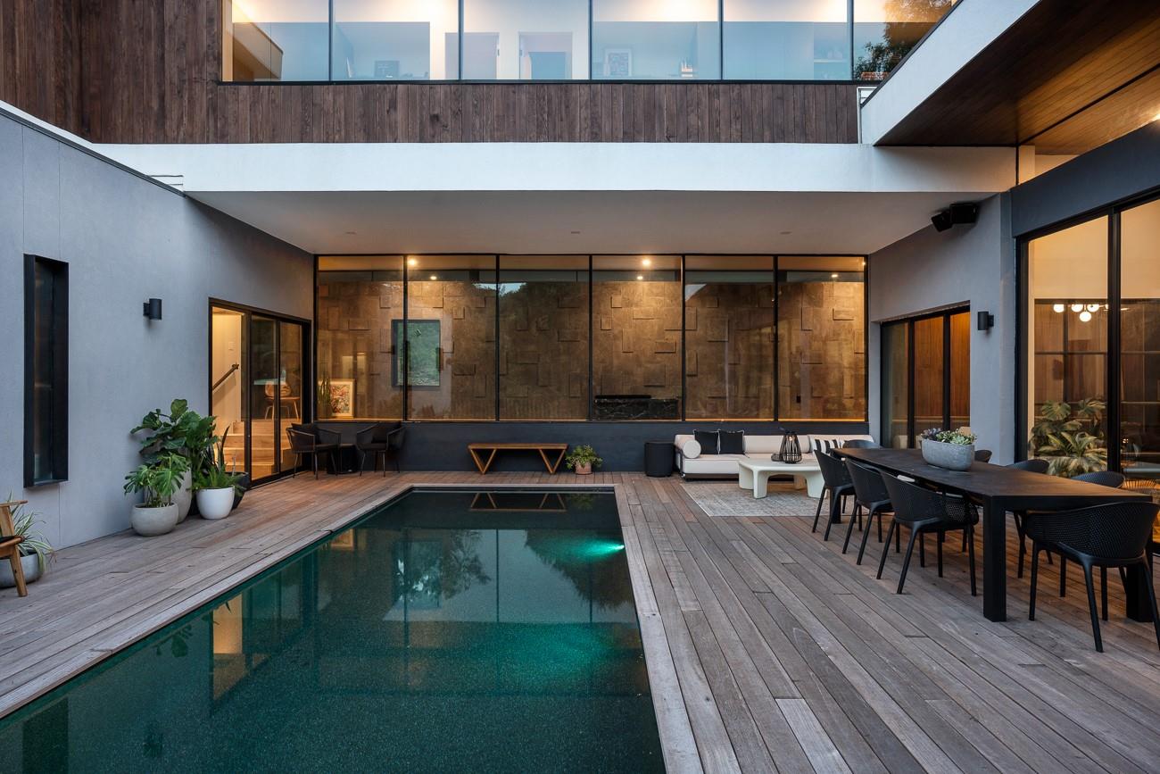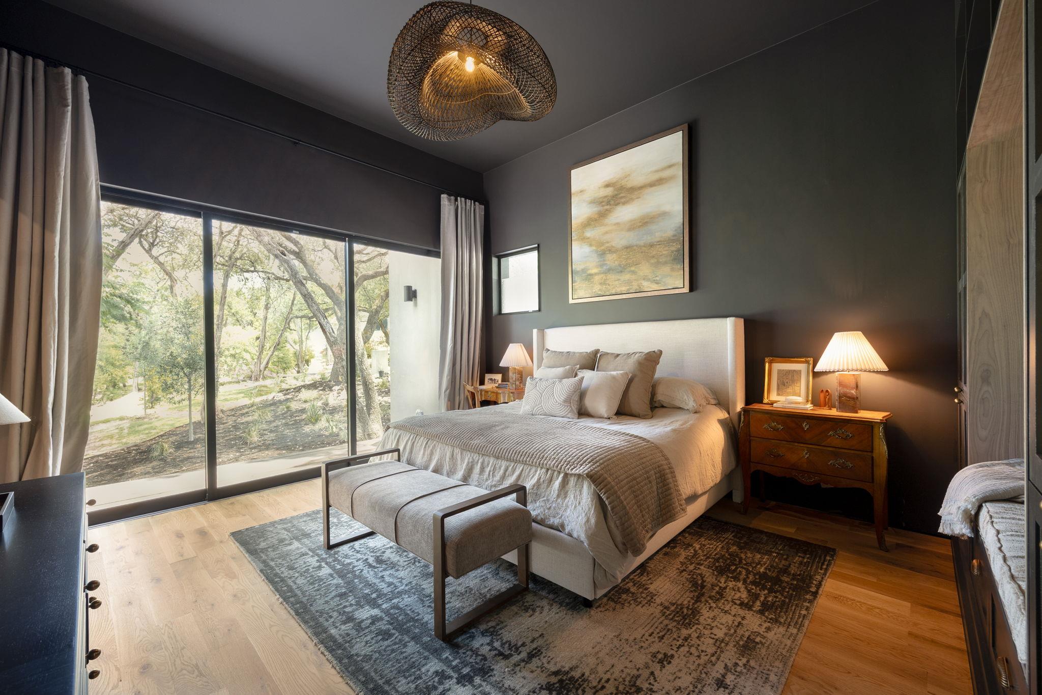 In the builder's words.... "This is not just a house. It's a discovery. And as such, it was found, not built -- like a ruin half-buried in the land, then pulled forward in time. The builder describes it Mesoamerican Contemporary. A cruciform plan grounded in Cantera stone... black, gray and volcanic. It anchors the structure like myth anchors a memory. The form is deliberate. Geometry sharpened by light. There is no waste, no excess. Only rhythm. Wood, glass, stone -- each in balance, each unafraid of its own texture. The walls rise clean and quiet. The lines do not shout. They cut. The rooms hold breath. The light moves. Spaces are open, but not empty. They are made for stillness. Made for gathering. Made for living without apology." Truly nothing like this and an amazing value for a newer modern home in Westlake. Builder's personal home can be customized for the next owner. Features include a custom pivot door and gracious foyer with walnut finished walls, a striking floating staircase, designer fixtures and gorgeous hardwood floors. The main living area appears to be floating in the trees. A 27 ft collapsible wall seamlessly blends the indoor/outdoor spaces. The kitchen is like no other with a massive stone waterfall island, sleek custom cabinetry, and top-of-the-line European appliances. Clean and contemporary and perfect for entertaining. The adjacent scullery continues the modern line but takes its inspiration from the chef's kitchens of France. The primary bedroom features a spa-like bath with a walk-in rain shower, double vanity and outdoor patio with tub. The closet is a showstopper with gorgeous cabinetry that marries form and function. On the 2nd floor you are greeted by a spacious den and library that currently serve as kids quarters followed by 4 additional bedrooms. Flat .82 acre lot. 33 ft pool. 3 car HVAC garage w/ space for a gym & balcony for yoga. Not often do you find a home with this much heart and soul.