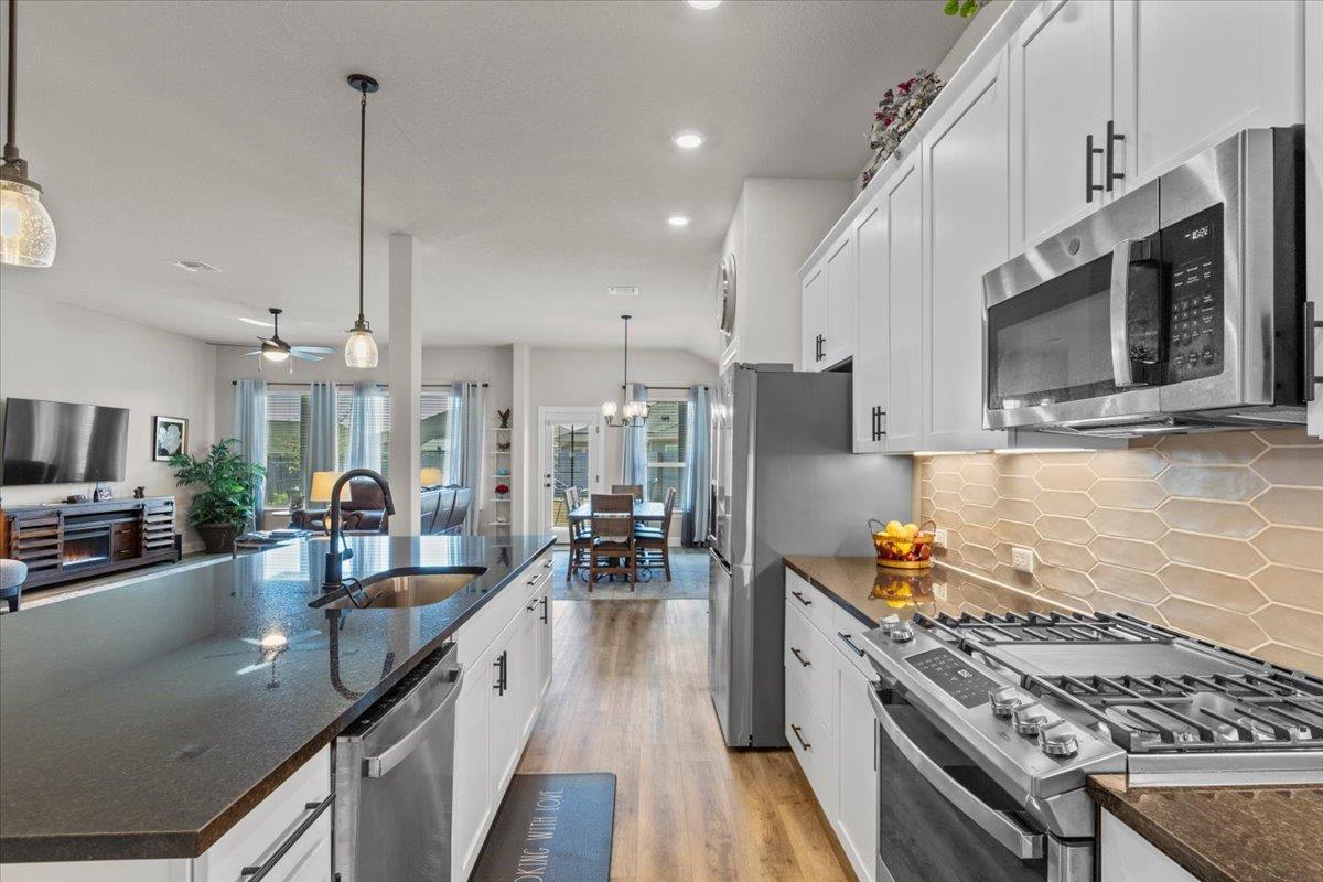 *BUY THIS HOME AND GET A BRAND NEW 17K GOLF CART* Riverside at The Colony! This better than new home with extended garage is immaculate, shows like new and offers many features you won't get with new construction. Finished in 2022, it's barely been lived in. The open floor plan is a David Weekley favorite and the owner contracted it from the ground up with upgrades on this premium lot for ample space between neighbors and room to garden. Many additional trees added for future enjoyment for years to come. The garage features a 9 x 20 (approx) extension for all your hobbies and big girl/big boy toys. Huge open kitchen is spacious enough for two chefs and an audience at the large island. It's truly the focal point of this light and bright home with stone counters, designer backsplash and gas cooking. The front living room could easily be an office or converted to a 4th bedroom. Unbelievable storage and large utility room too. The covered back porch and the primary bedroom were upgraded for extra room. The primary suite features the much coveted extra large shower. This stunning home includes all window coverings so it's move-in ready. And It's just a short walk to the river trail and resort style pool and workout facility.
