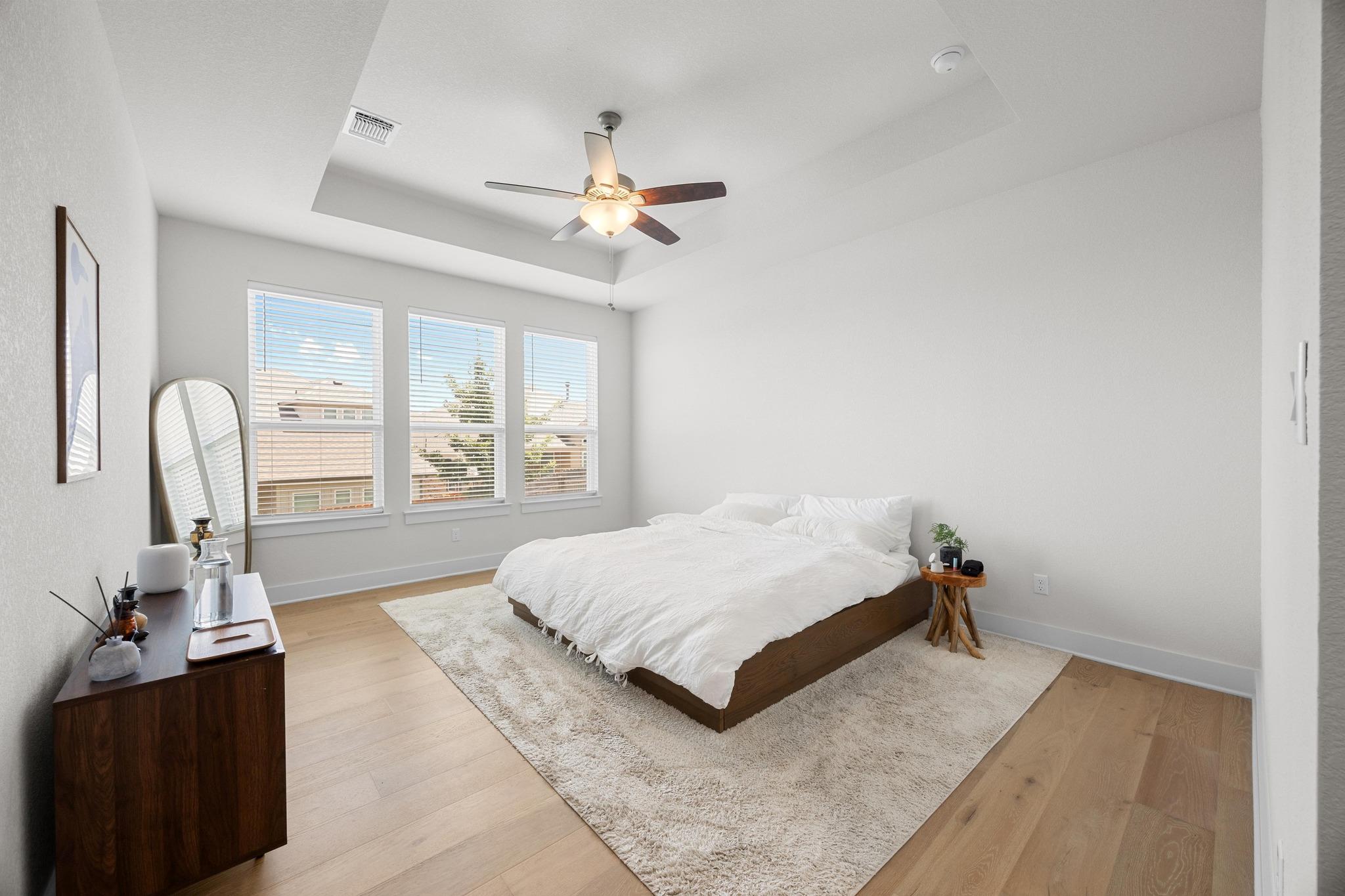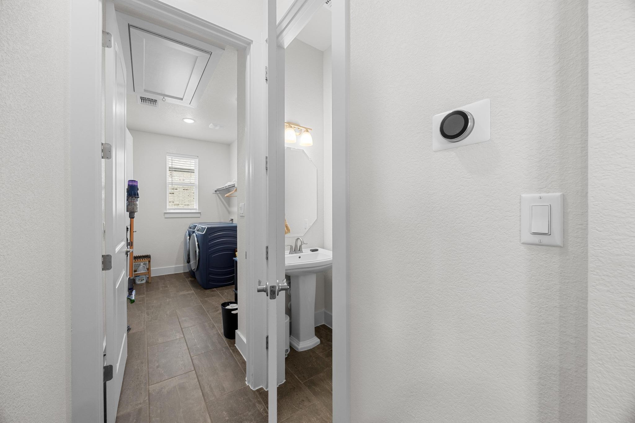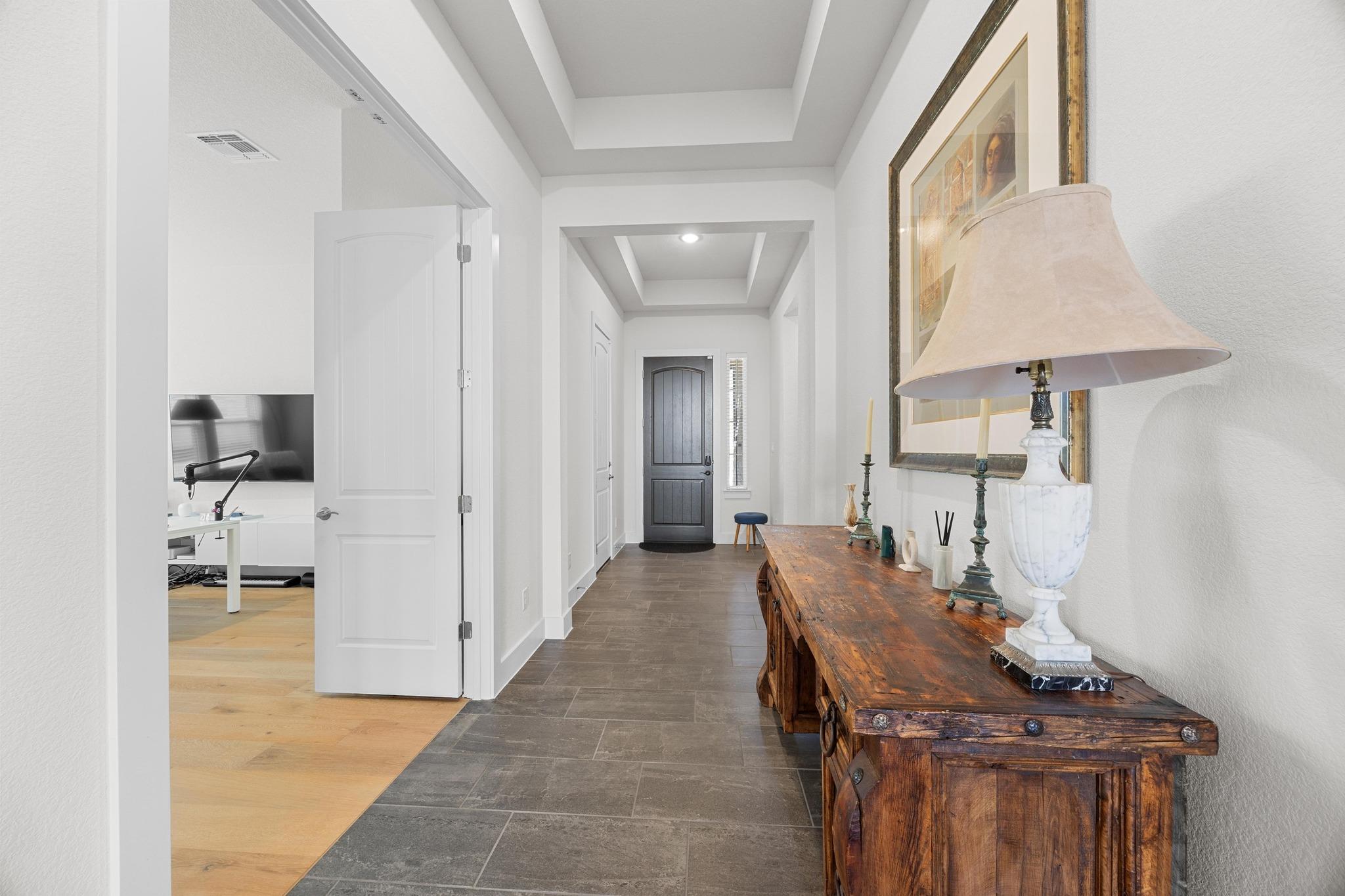 Welcome to refined Hill Country living in the desirable Water Oak community. This all-brick 4 bedroom, 2.5 bath home spans 2,390 square feet and features hard-surface flooring throughout with rich wood and slate that bring warmth, texture, and low-maintenance appeal. Natural light pours in through oversized windows and doors, highlighting the home's thoughtful design and effortless flow. The spacious kitchen features leathered granite countertops, an ideal work triangle, and Restoration Hardware fixtures that carry throughout the cabinetry, creating a cohesive, upscale look. Whether entertaining or relaxing, the open-concept layout offers a seamless connection between living, dining, and kitchen spaces. The private primary suite is a true retreat, with direct access to a spa-inspired ensuite and laundry, designed for both convenience and calm. Smart lighting throughout allows you to set the perfect mood, and small upgrades like bathroom fan timers make a big impact on daily comfort. Every detail is curated for timeless style and lasting durability. From the all-brick siding and designer finishes to oversized doors and energy-conscious features, this home combines elegance and ease in every square foot. Tucked into a quiet section of Water Oak, you'll enjoy peaceful surroundings with quick access to downtown Georgetown, Blue Hole Park, San Gabriel Trail, a popular food truck park, and essential services including medical, dental, and veterinary care. This is luxury that lives well while sophisticated, smart, and beautifully situated.