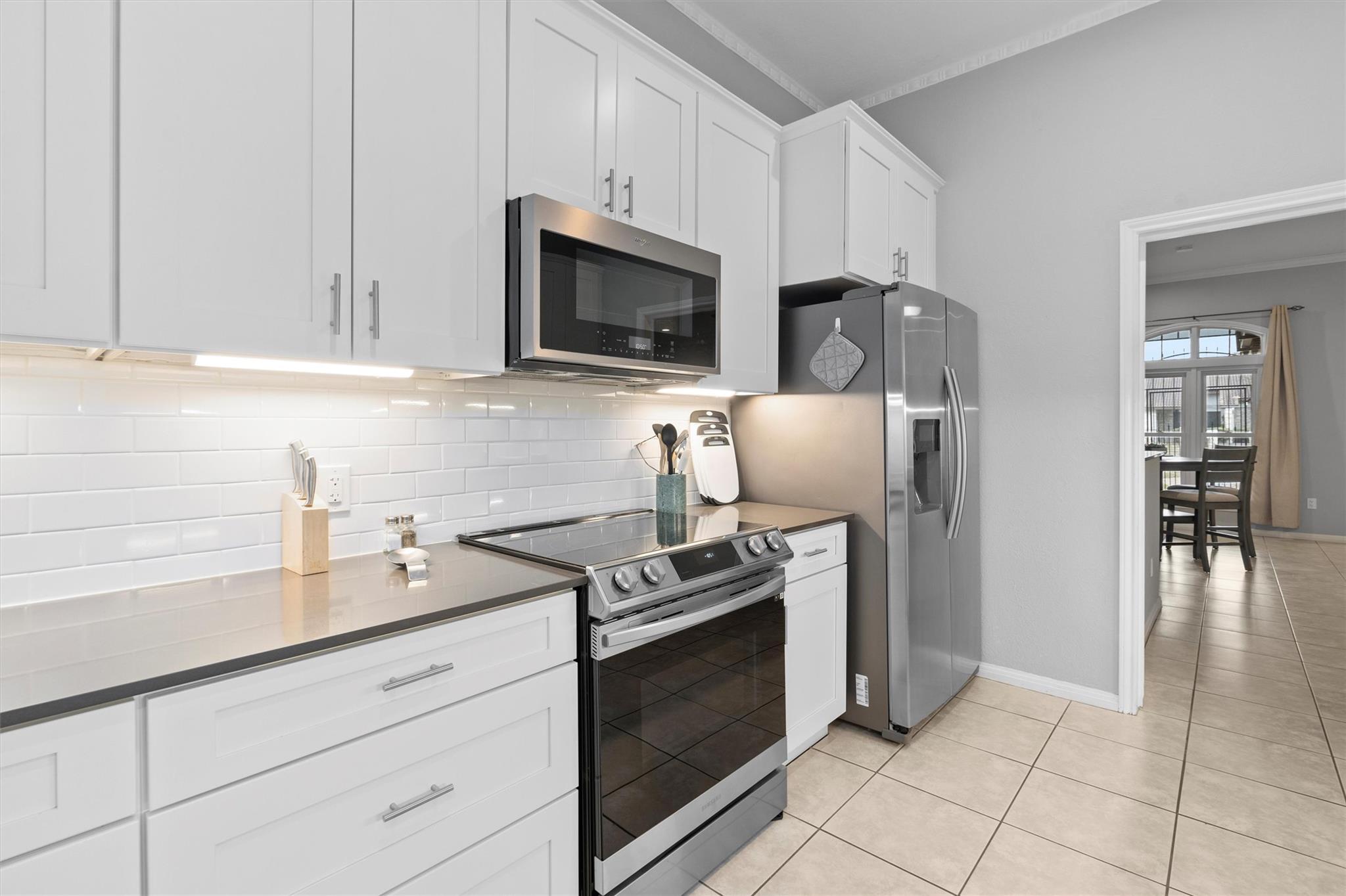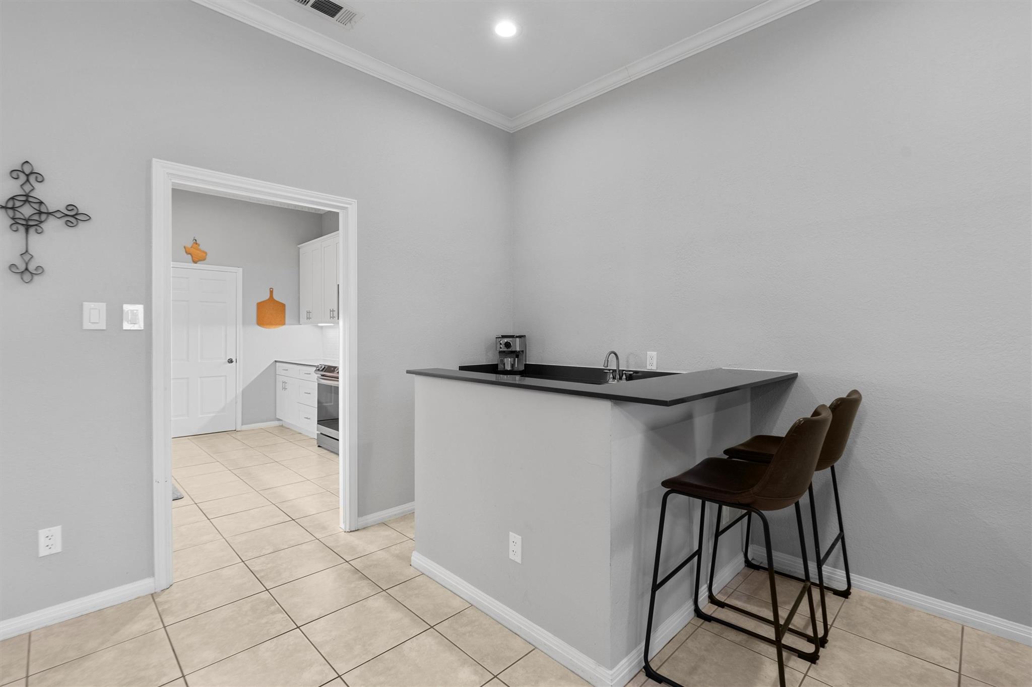 This updated home features 10-foot ceilings, an open floorplan, numerous updates, and an attached 2-car garage. Enter through a private, covered, front patio area and step into an expansive living area with a fireplace, dual eating areas, and a coffee bar. Off of the living area are 3 bedrooms, a flex space and 2 large walk-in closets. There is additional storage in the attic with 8-feet of vertical space. Updates include a fully remodeled kitchen with 42-inch cabinets and quartz countertops, partially updated bathrooms, a new roof in 2020 and a fully replace HVAC system. Very low HOA dues include lawn care and water. The home is located just a block from the Onion Creek golf course and quiet streets to enjoy walks!