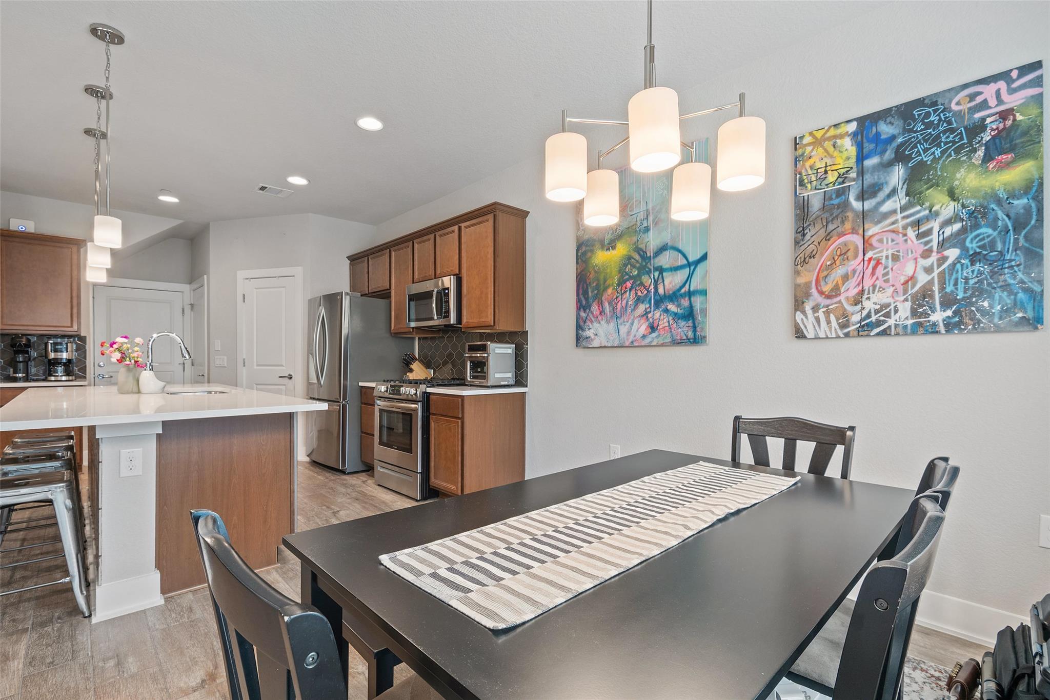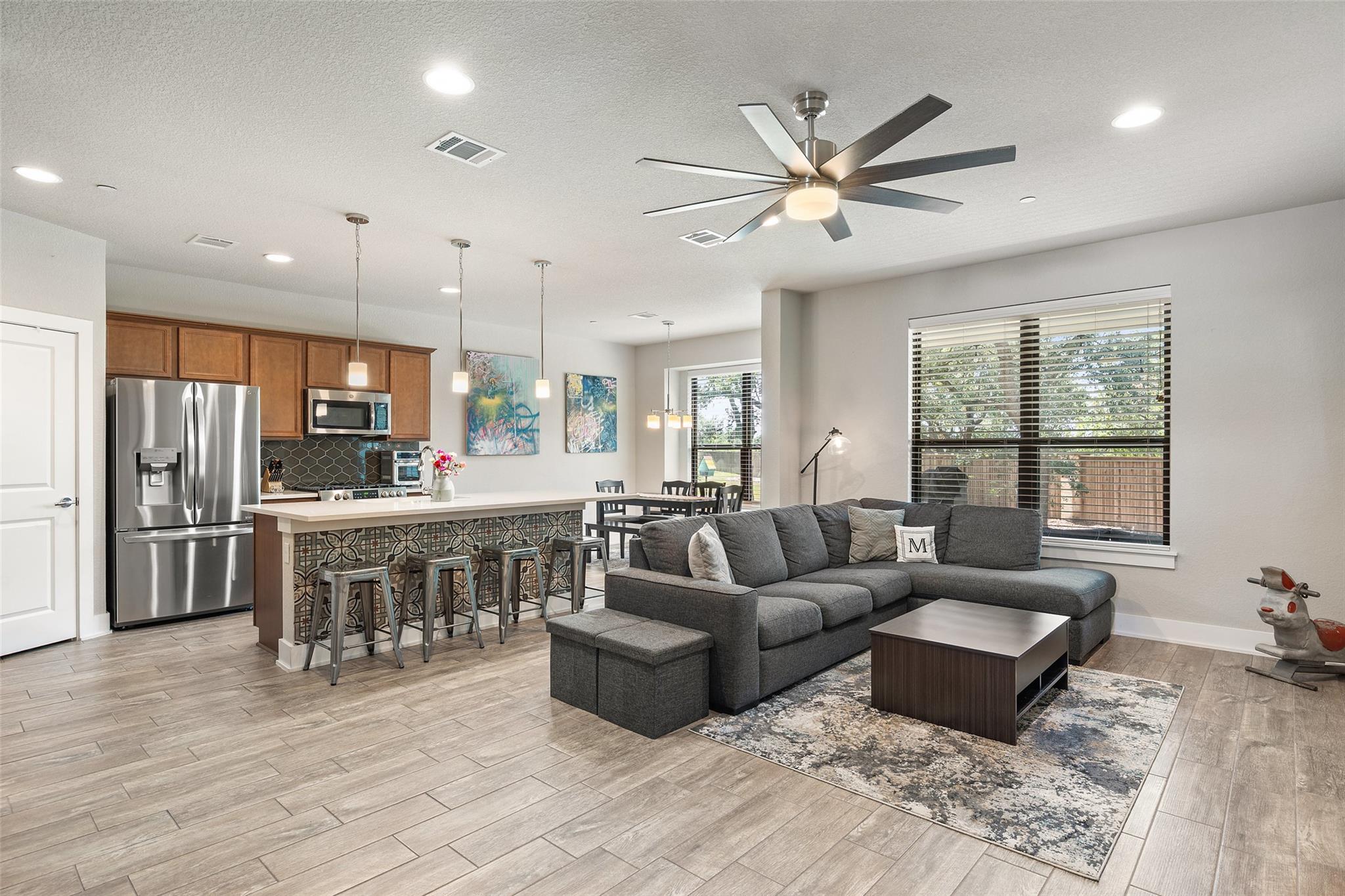 *Ask about Preferred Lender incentive for 5.625% Interest Rate* Located in the sought-after Avery Ranch community, residents enjoy exceptional amenities including a pool, playground, sports court, and miles of trails, plus access to Avery Ranch Golf Club and year-round neighborhood events. Just minutes away are the new Dell Children's Medical Center North Campus, shopping, restaurants, and retail. The well-appointed 3-bed, 2.5-bath home offers a comfortable layout and stylish updates throughout. The main floor features an open-concept living area with a modern fireplace and abundant natural light. The kitchen is thoughtfully designed with a center island with bar seating, updated quartz countertops, a tile backsplash, and a decorative tile accent ont he island. Updated appliances, including a recently installed gas range and dishwasher, plus a walk-in pantry and adjacent dining area, add to the functionality. Step outside to a covered patio and landscaped backyard, perfect for grilling, gardening, or simply relaxing. Upstairs, the primary suite includes a walk-in closet and a private bath with a double vanity and walk-in shower. A versatile nook at the top of the stairs provides space for working from home or studying.