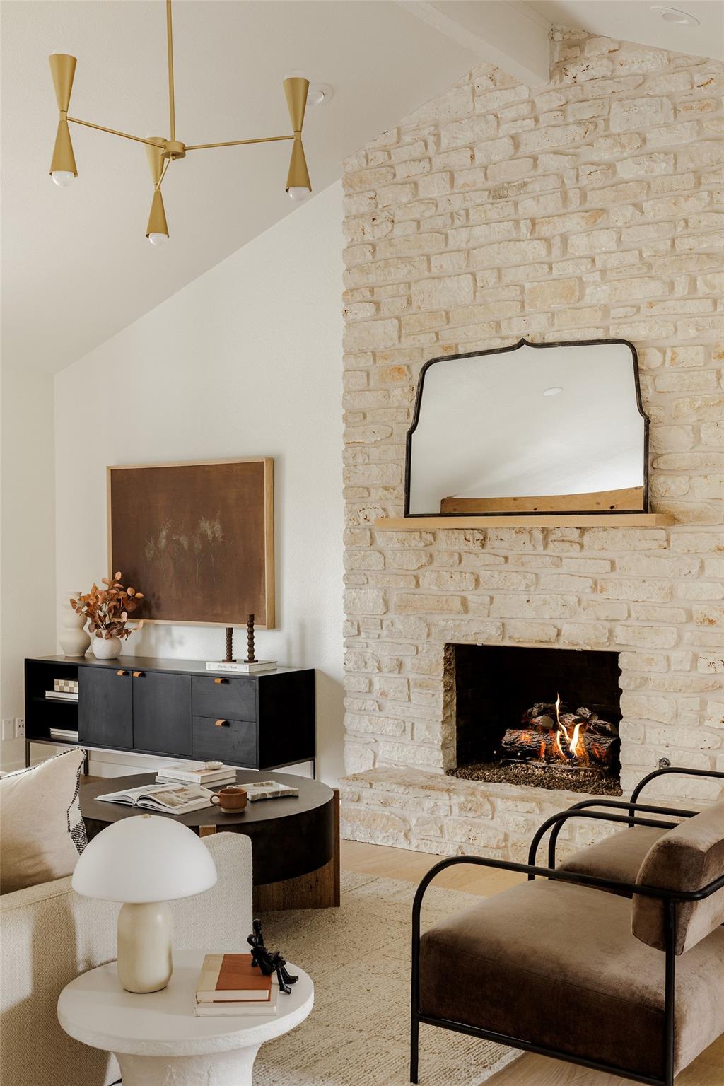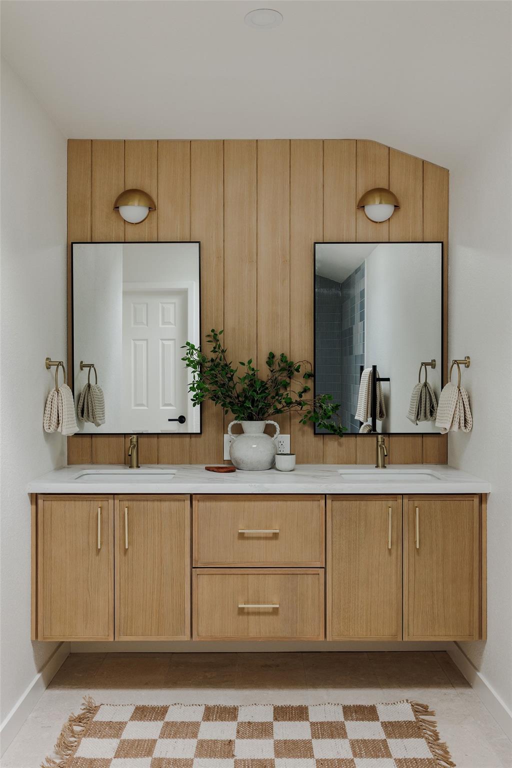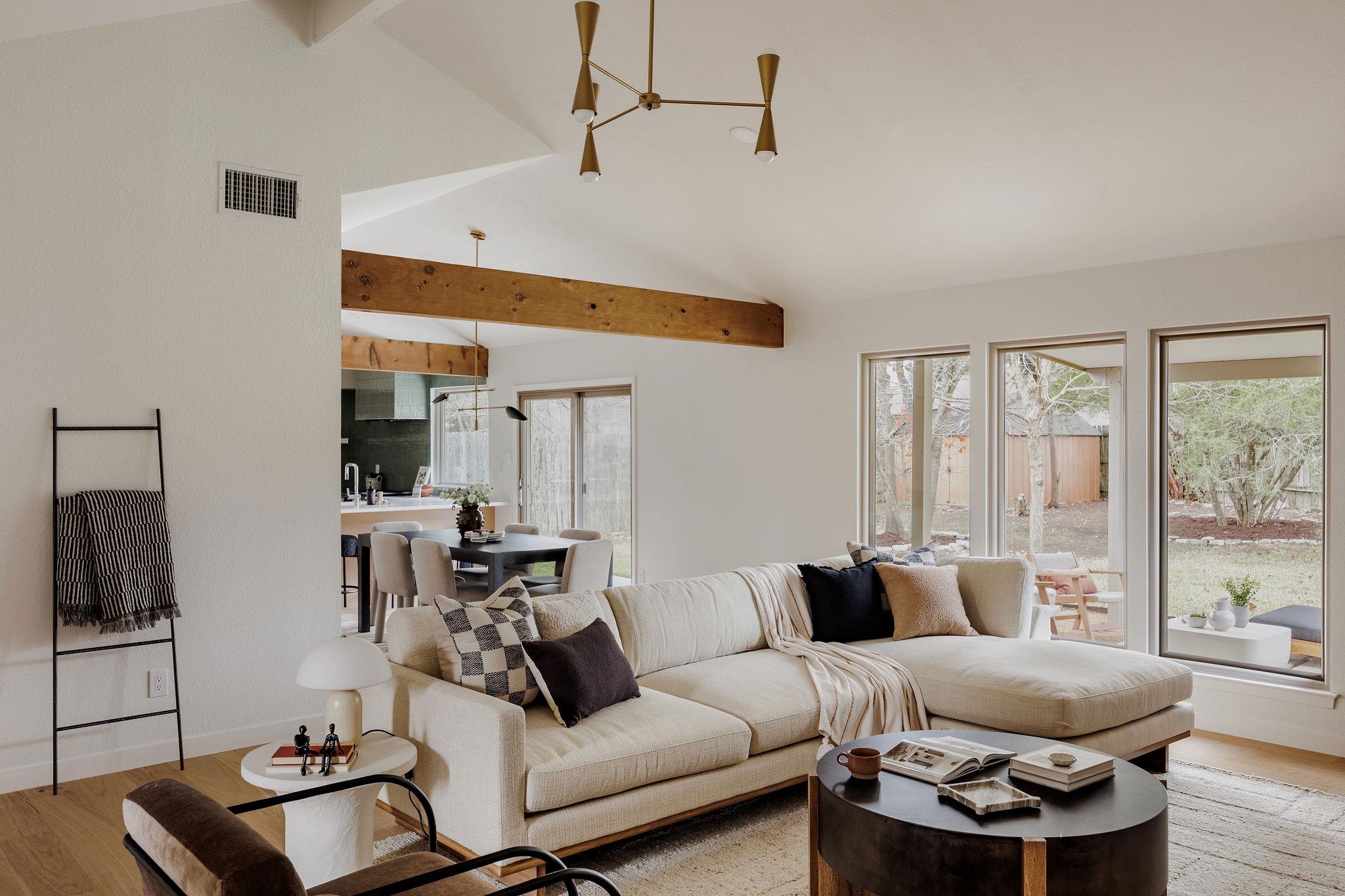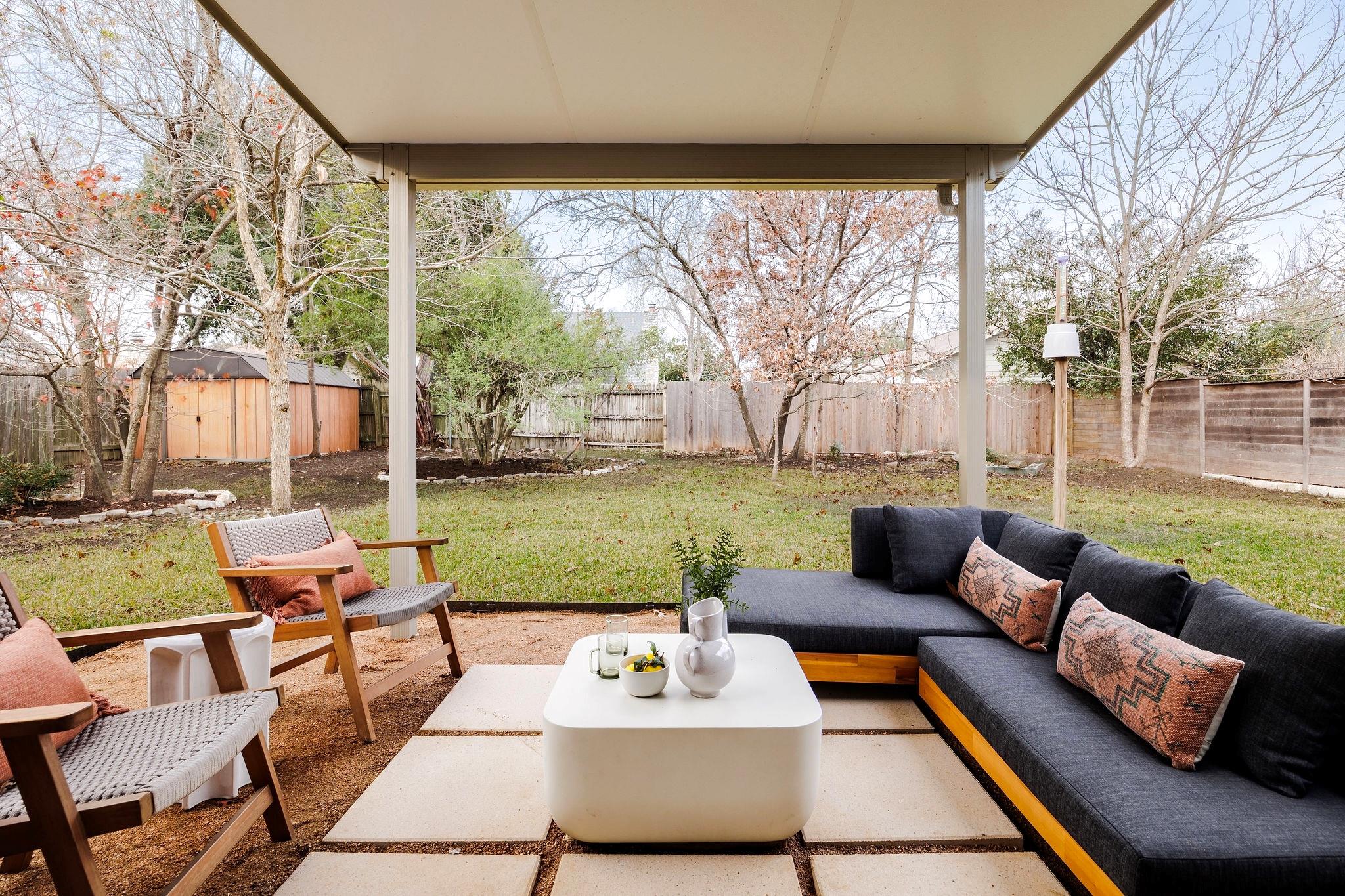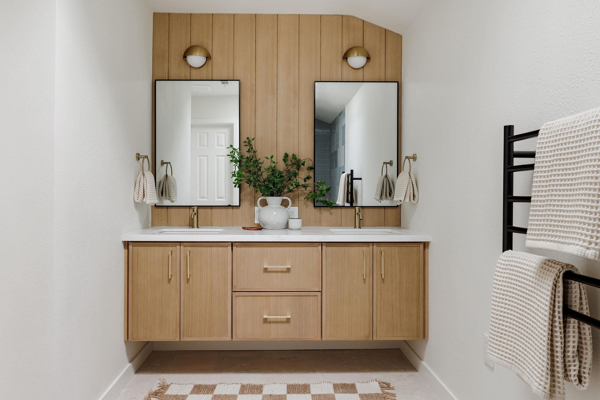 | OPEN HOUSE SAT & SUN 1-4 pm | Designer remodel with a stunning blend of Organic modern and Mid-century modern influences. Open-concept floor plan with high vaulted ceilings, 7-inch White Oak flooring, and designer lighting throughout. A full-height Texas limestone fireplace anchors the open concept living room. Entertainer's kitchen w/ Coffee bar and Backyard views, featuring Taj Quartz countertops, White Oak slim shaker cabinets, custom tiled range hood, and a curated selection of brass and chrome finishes. The primary bedroom offers incredible natural light and features a walk-in closet with custom cabinetry. The spa-like en-suite is a showstopper, featuring a floating white oak vanity, quartz countertops, and a unique white oak backsplash. The centerpiece is the custom curved blue Kit-Kat tiled shower, drenched in natural light from a skylight above. The secondary bathroom is equally stunning, featuring stylish checkerboard shower tile, limestone flooring, and a dark, slim shaker vanity with quartz countertops, all set against luxurious Belarte Studio wallpaper. Dedicated spacious laundry space w/ Utility sink, White Oak slim shaker cabinets, and beautiful handmade tile backsplash. This home sits on an impressive 0.23-acre lot with gorgeous mature trees and a covered patio area perfect for hosting friends and family. The exterior has been revitalized with Hardie board siding, fresh exterior paint, and energy-efficient double-paned windows by Anderson. Located in the esteemed Round Rock ISD with access to some of greater Austin's best-rated schools, including: Kathy Caraway Elementary, Canyon Vista Middle School, and Westwood High School. This home has been lovingly reimagined with incredible attention to detail by the Golden Kiwi design group.