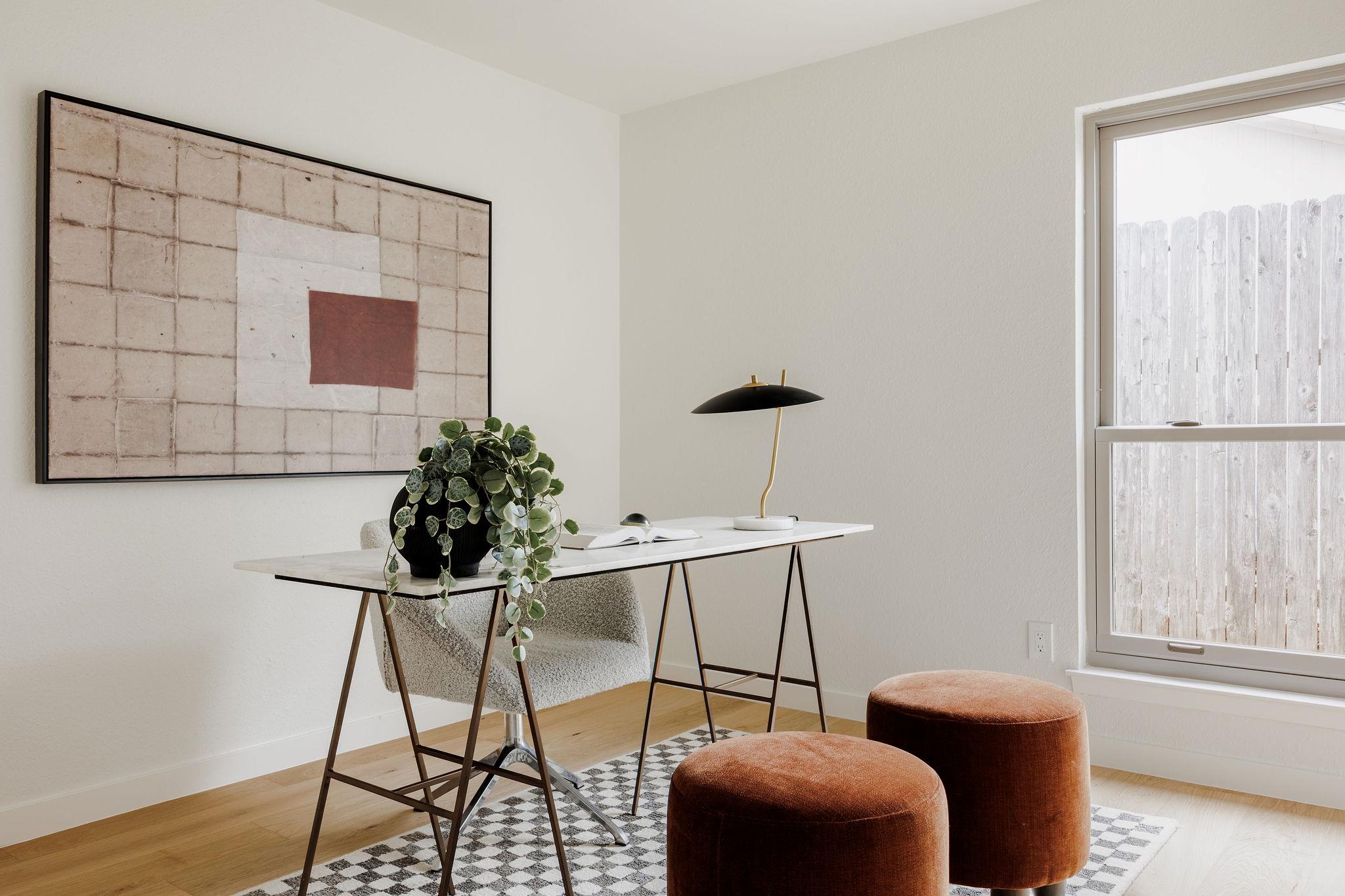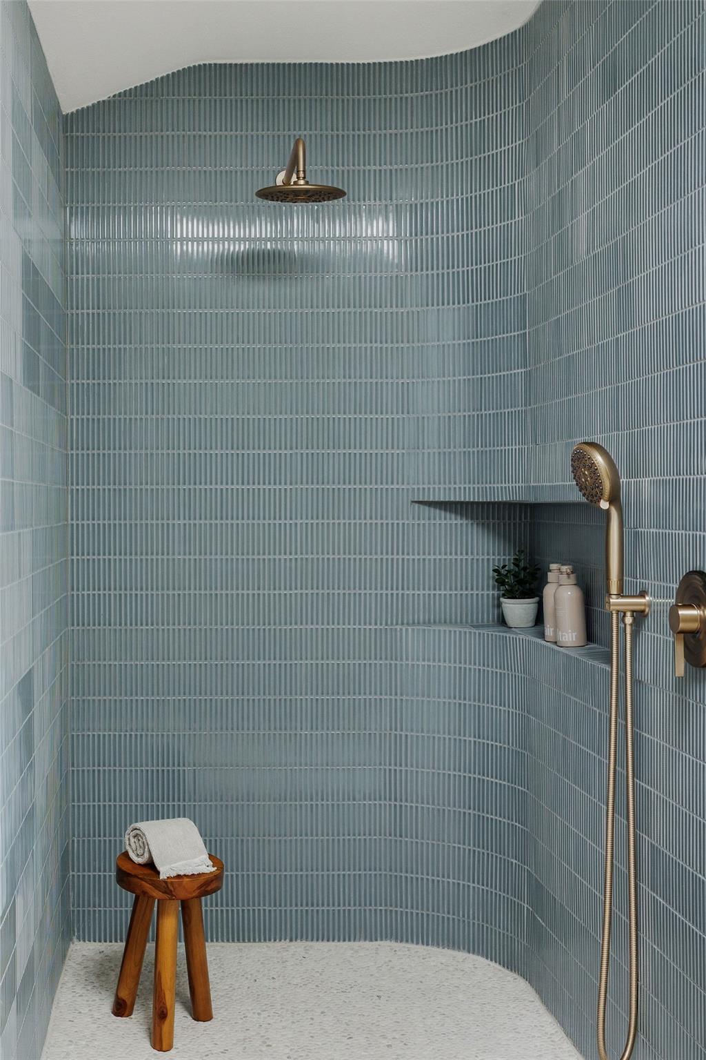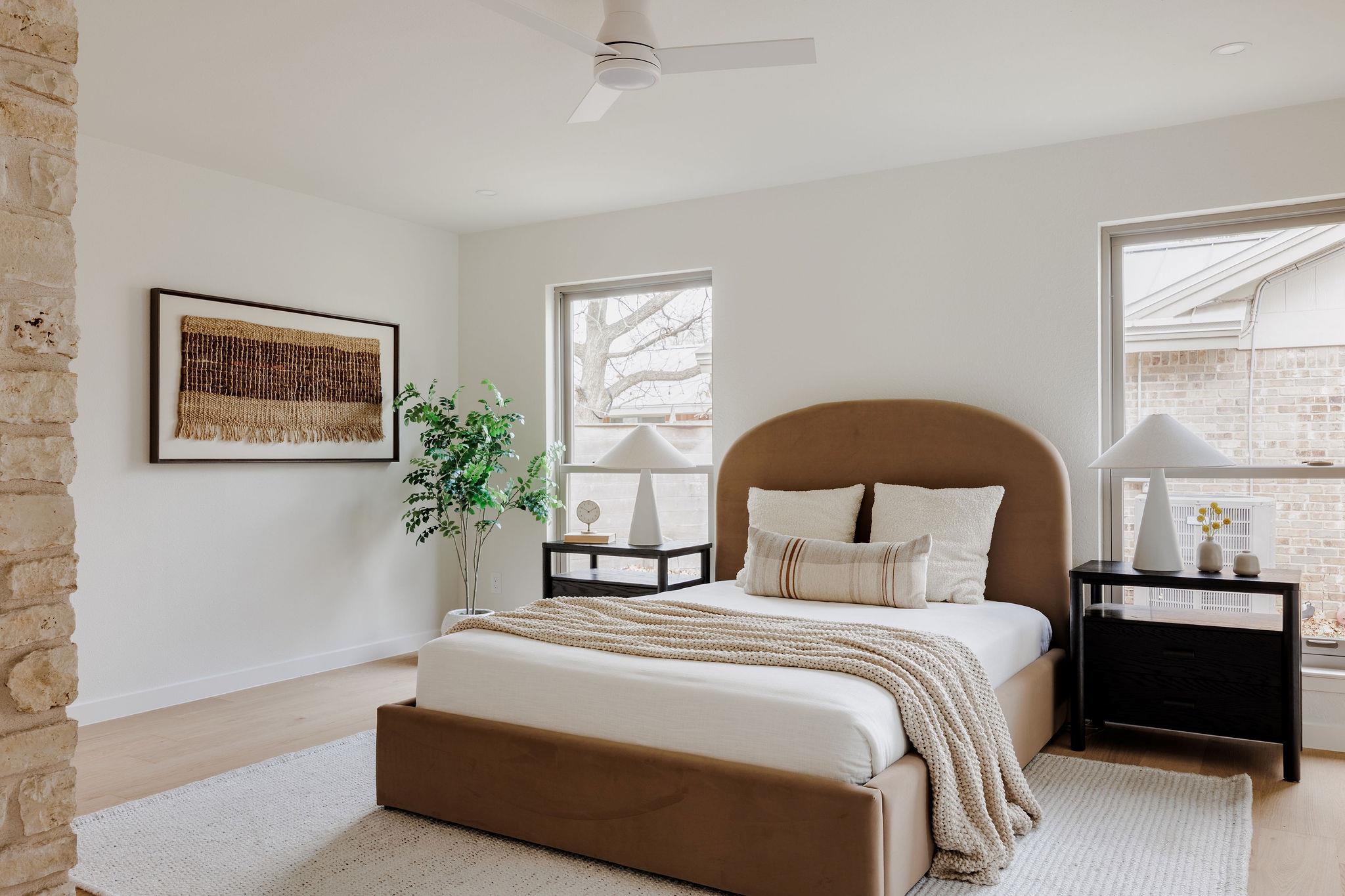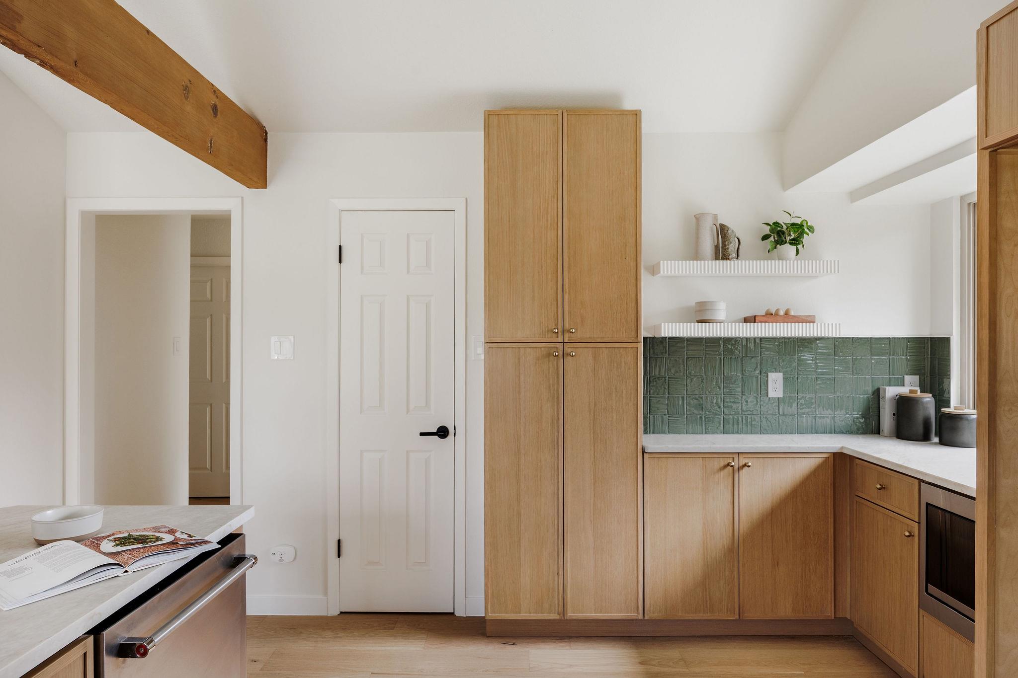 | OPEN HOUSE SAT & SUN 1-4 pm | Designer remodel with a stunning blend of Organic modern and Mid-century modern influences. Open-concept floor plan with high vaulted ceilings, 7-inch White Oak flooring, and designer lighting throughout. A full-height Texas limestone fireplace anchors the open concept living room. Entertainer's kitchen w/ Coffee bar and Backyard views, featuring Taj Quartz countertops, White Oak slim shaker cabinets, custom tiled range hood, and a curated selection of brass and chrome finishes. The primary bedroom offers incredible natural light and features a walk-in closet with custom cabinetry. The spa-like en-suite is a showstopper, featuring a floating white oak vanity, quartz countertops, and a unique white oak backsplash. The centerpiece is the custom curved blue Kit-Kat tiled shower, drenched in natural light from a skylight above. The secondary bathroom is equally stunning, featuring stylish checkerboard shower tile, limestone flooring, and a dark, slim shaker vanity with quartz countertops, all set against luxurious Belarte Studio wallpaper. Dedicated spacious laundry space w/ Utility sink, White Oak slim shaker cabinets, and beautiful handmade tile backsplash. This home sits on an impressive 0.23-acre lot with gorgeous mature trees and a covered patio area perfect for hosting friends and family. The exterior has been revitalized with Hardie board siding, fresh exterior paint, and energy-efficient double-paned windows by Anderson. Located in the esteemed Round Rock ISD with access to some of greater Austin's best-rated schools, including: Kathy Caraway Elementary, Canyon Vista Middle School, and Westwood High School. This home has been lovingly reimagined with incredible attention to detail by the Golden Kiwi design group.