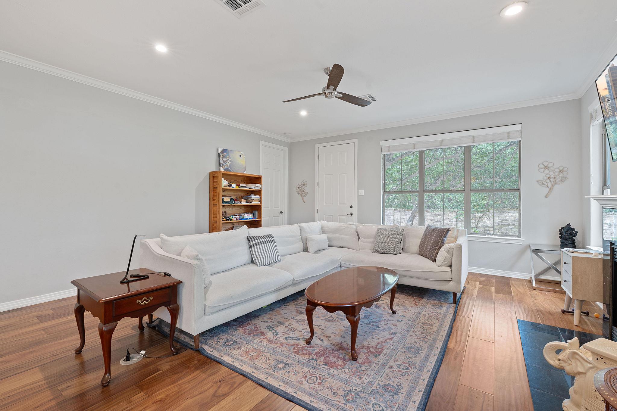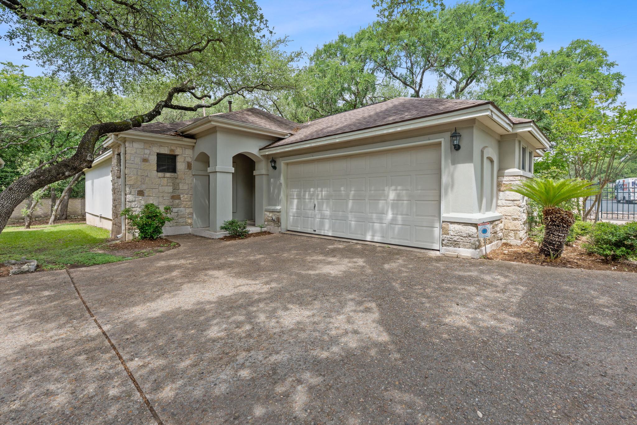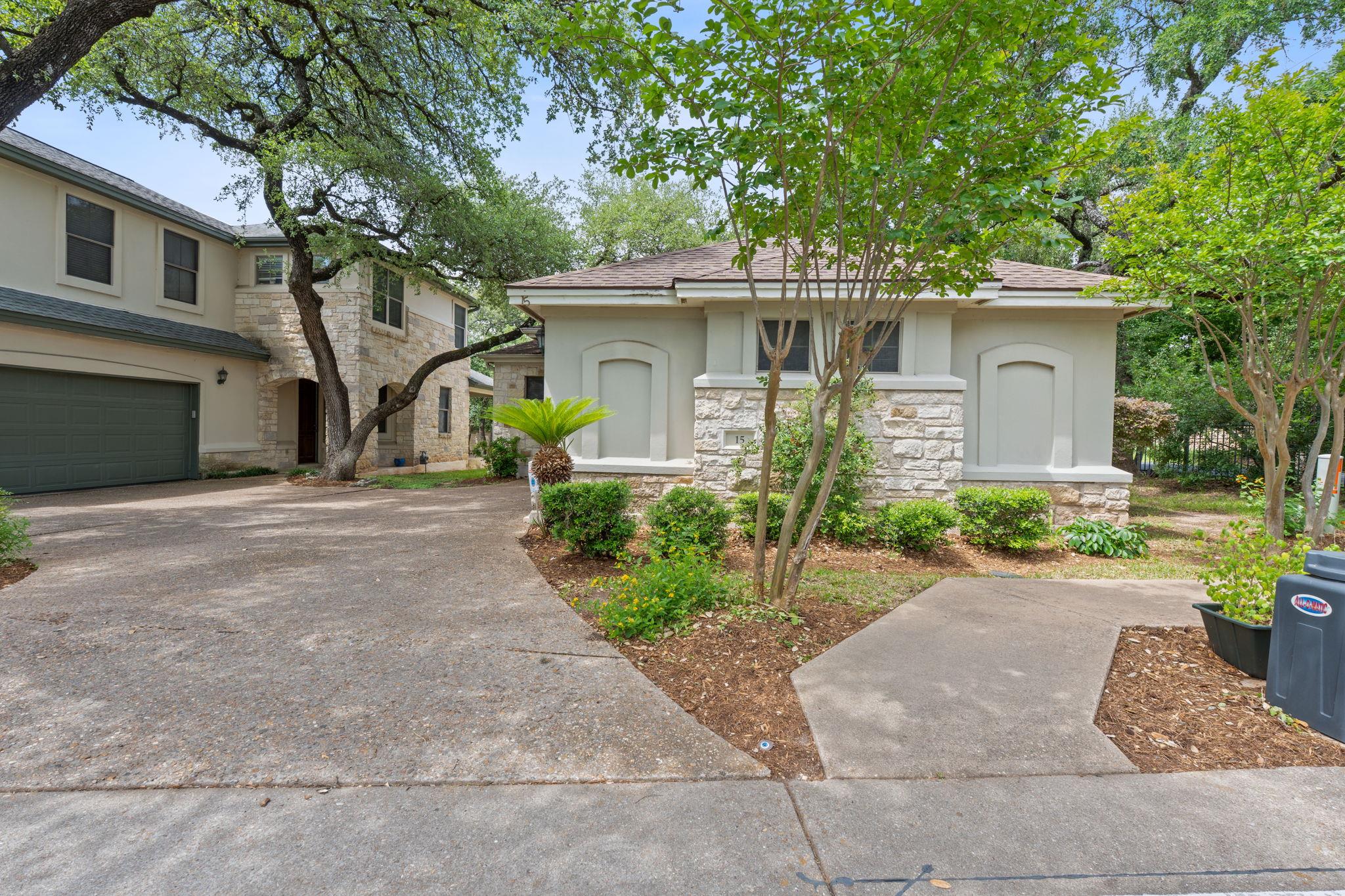 Private Stand-Alone Condo in a Well-Established Community Perfectly situated to take full advantage of all that Northwest Austin has to offer, this beautifully updated executive garden home sits in a serene, gated community near the heart of Northwest Hills. With mature, arching trees providing expansive shade and the HOA maintaining the landscaping, this community is the ideal lock-and-leave option. This unique unit enjoys exceptional privacy with windows that overlook a shaded, garden-like area--no direct views of neighboring units. Unlike many units, this one enjoys exceptional privacy with windows facing a serene, garden-like area rather than neighboring homes. The yard is positioned at the front next to a shared walking path, providing extra greenspace that feels like a private oasis. Inside, the home features two bedrooms, two bathrooms, quartz countertops, hand-glazed Italian subway tile backsplash in the kitchen, scraped Acacia wood flooring throughout (with tile in the bathrooms), a gas fireplace, soaring vaulted ceilings above the dining area, and 9-foot ceilings throughout. The primary suite includes a spacious walk-in closet with generous storage and a second vanity separate from the full bath. A high-efficiency, two-stage HVAC heat pump installed in 2022 helps reduce energy bills, and the private patio with custom stonework adds to the home's charm. The attached two-car garage includes built-in shelving for additional storage. HOA dues cover all exterior maintenance including landscaping, gate upkeep, and regular blowing of the driveway and patio. Located just minutes from the Arboretum, Apple campus, Trader Joe's, The Domain, and Q2 Stadium, this home is also in a highly rated school district. Northwest Hills is known for its tranquil atmosphere, greenbelts, nature trails, and easy access to downtown Austin and Tarrytown, making it a wonderful place to call home. For more info, go to: https://wkf.ms/45fzn2a