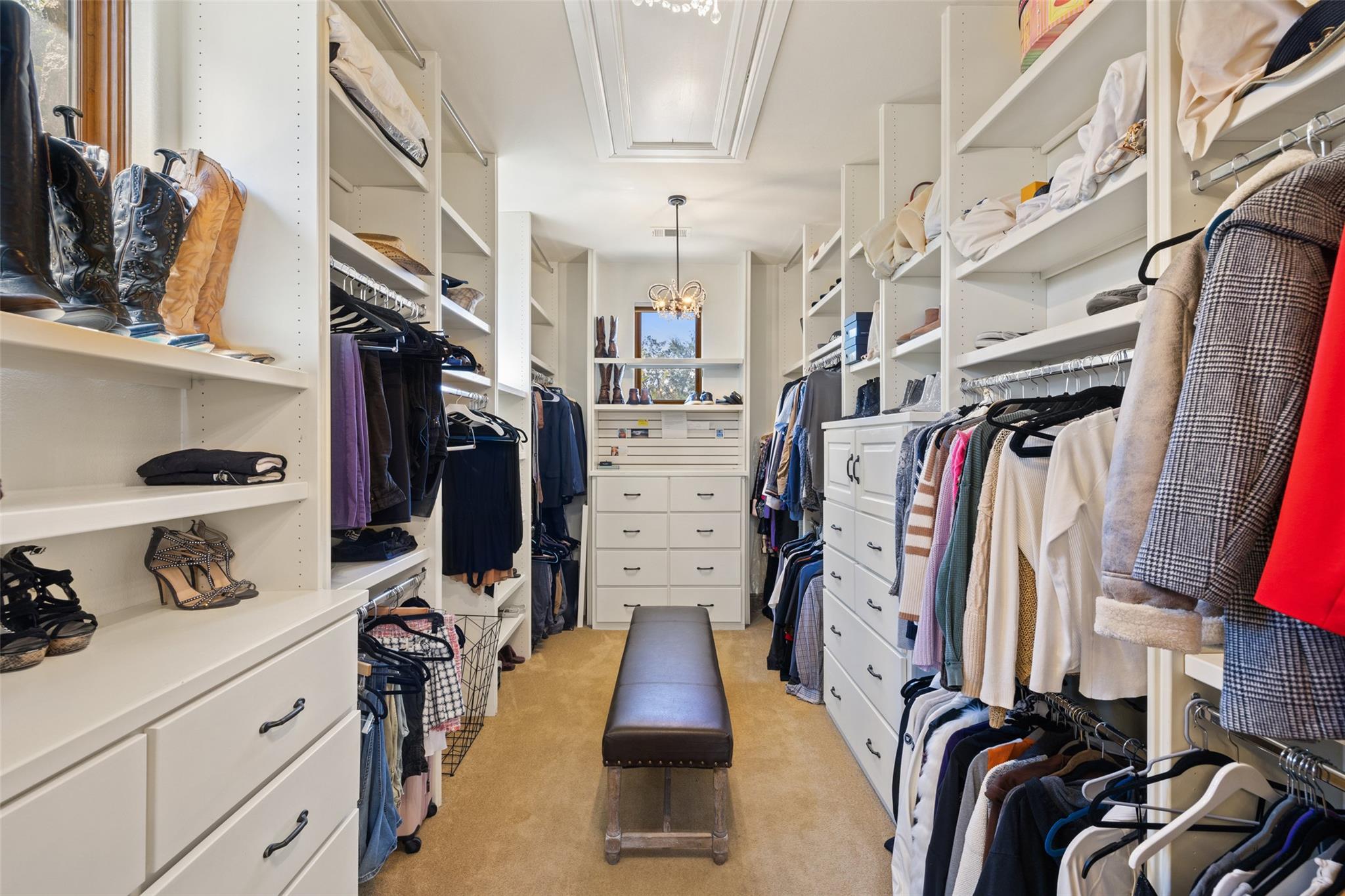 Other Interior Features: Bookcases, Built-in Features, Beamed Ceilings, Tray Ceiling(s), Granite Counters, Double Vanity, Kitchen Island, Multiple Dining Areas, Multiple Living Areas, Pantry, Primary Bedroom on Main, Walk-In Closet(s), Wet Bar