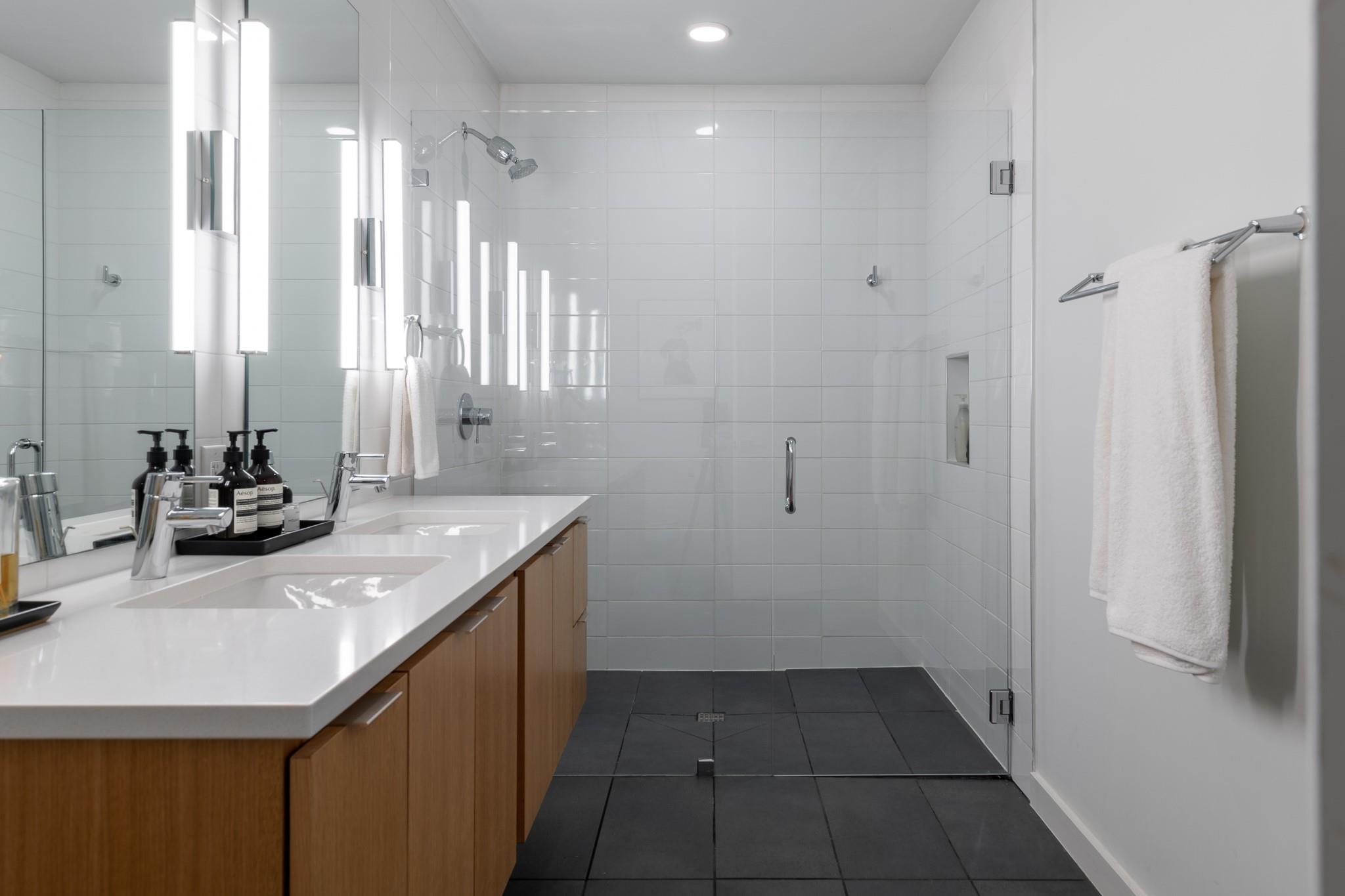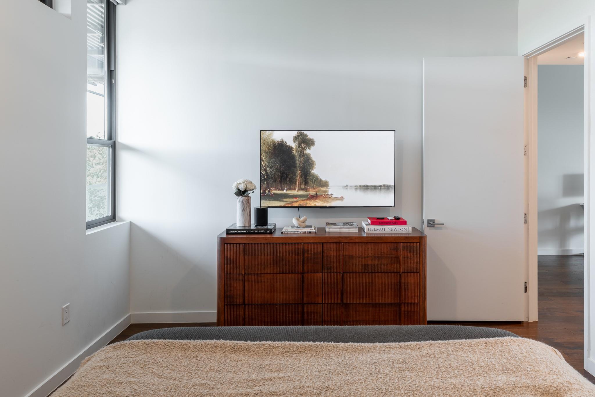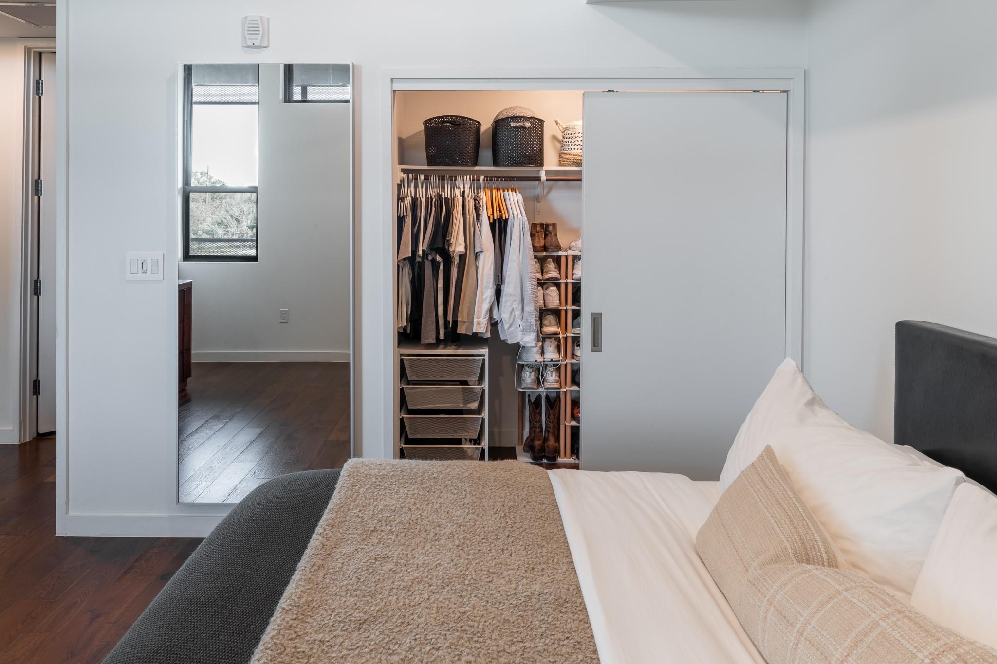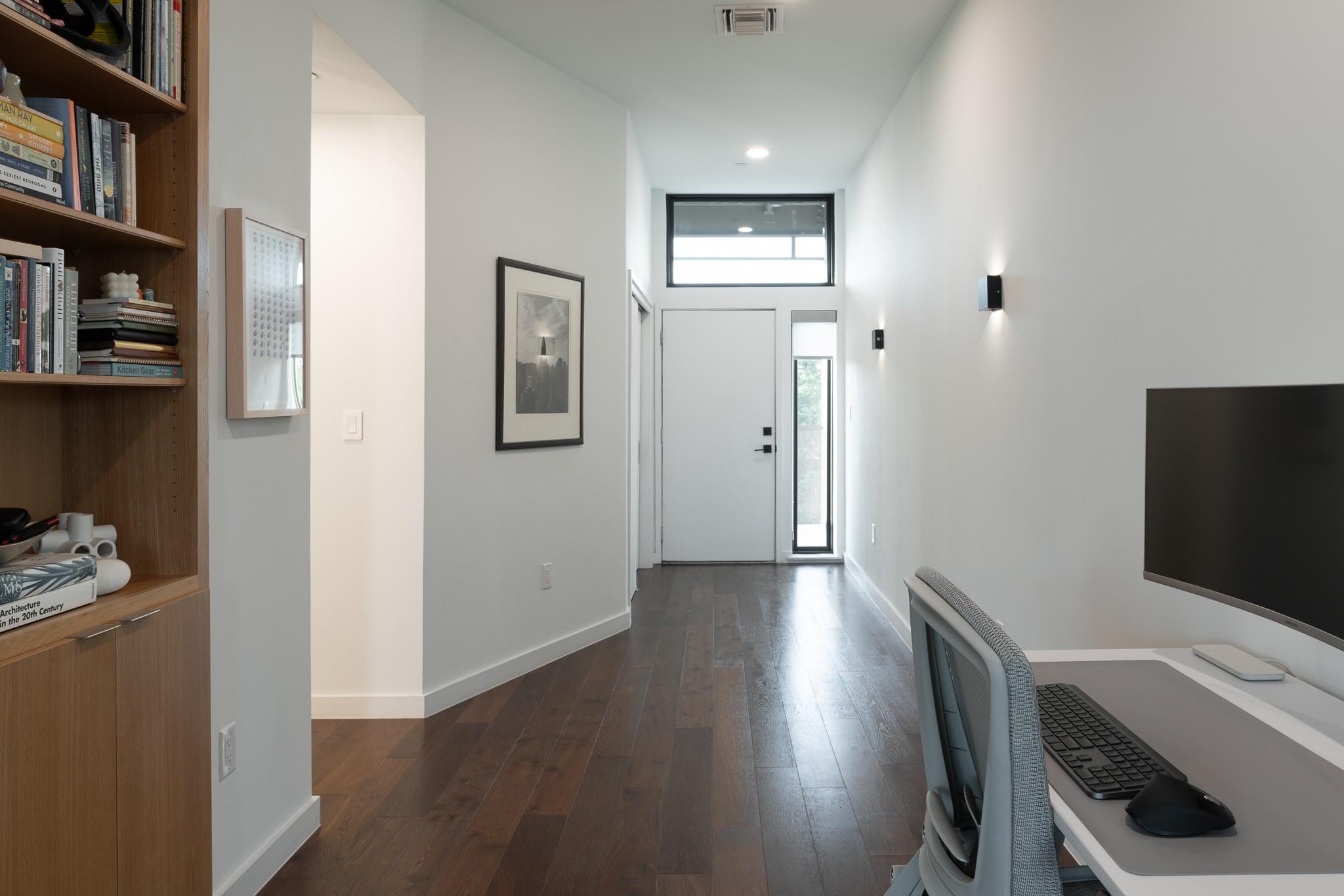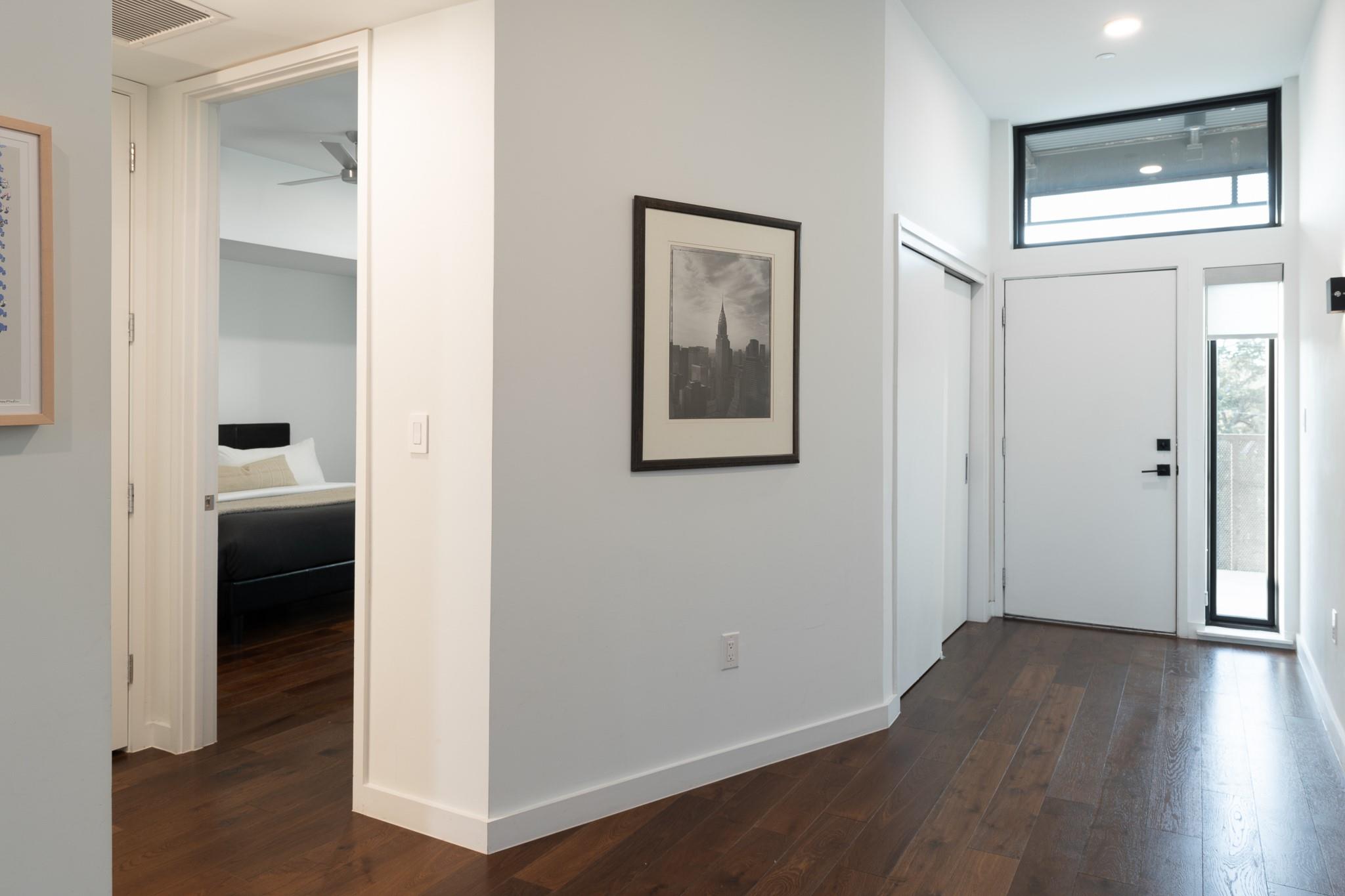 This stunning East Austin condo is one of the largest single-story one-bedroom units available and is packed with premium features and thoughtful design. Soaring 11-foot ceilings, expansive floor-to-ceiling windows, and a covered balcony fill the space with natural light and create an airy, open feel. The flexible, open-concept layout is ideal for both entertaining and working from home, with wide hallways and an oversized bathroom featuring a glass walk-in shower and dual vanity. The HOA also allows 30+ day leases and up to two weeks of short-term rental per year--perfect for generating extra income during major Austin events like SXSW and ACL. Making this unit attractive to investors too.