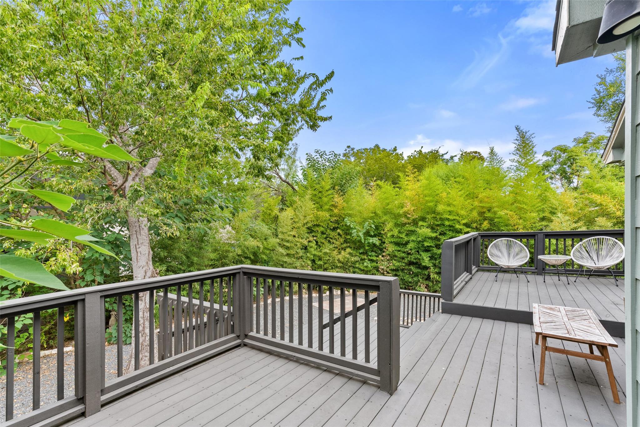 *Free 1 point rate buy down for 1 year with preferred lender* Blending vintage charm with modern sophistication, this 1952 bungalow is nestled in the vibrant Chestnut/Rosewood neighborhood of East Austin. With downtown just a short bike ride away, this home offers a walkable lifestyle that feels uniquely Austin--where historic character meets fresh growth and local energy. The inviting layout features 2 spacious bedrooms, 2 full bathrooms, an open-concept living, dining, & kitchen area bathed in natural light from 18 large windows. Original hardwood floors & bungalow-style proportions showcase the home's classic character, while recessed lighting, ceiling fans, and stylish finishes bring modern comfort. The primary suite includes walls of windows and private access to a balcony tucked among the trees--an ideal retreat . The updated bathroom is thoughtfully designed with a walk-in shower featuring floor-to-ceiling tile, frameless glass, and a warm wood vanity. Outdoors, over 400 square feet of spectacular tiered decking creates a seamless extension of the living space, perfect for al fresco dining, evening gatherings, or quiet relaxation. The private backyard is beautifully landscaped with xeriscaping and bamboo-lined greenery, offering an urban oasis just minutes from downtown. Major updates include a new roof in 2024. This location captures the essence of East Austin living, with the Boggy Creek Greenbelt trail just steps away, connecting you to beloved neighborhood spots like Veracruz Tacos, Desnudo Coffee, Birdie's (a James Beard-nominated restaurant), and Zed's Ice Cream. Just minutes from the nightlife and entertainment of East 6th and Manor Road, yet tucked into a welcoming neighborhood of tree-lined streets and historic homes, this property embodies the perfect balance of privacy, character, and convenience. See documents for a full summary of updates and features. See documents for updates and features.