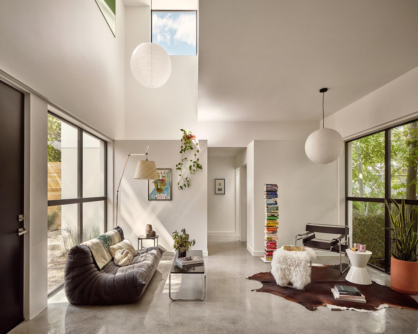 From the moment you enter, natural light pours through expansive windows and skylights, illuminating the open floor plan. The main level features soaring ceilings, a spacious living area, and a seamless connection to a low-maintenance xeriscape courtyard. From the stained concrete floors to the ceiling skylights, every detail feels deliberate--loads of clever storage, designer light fixtures, and everything in between.