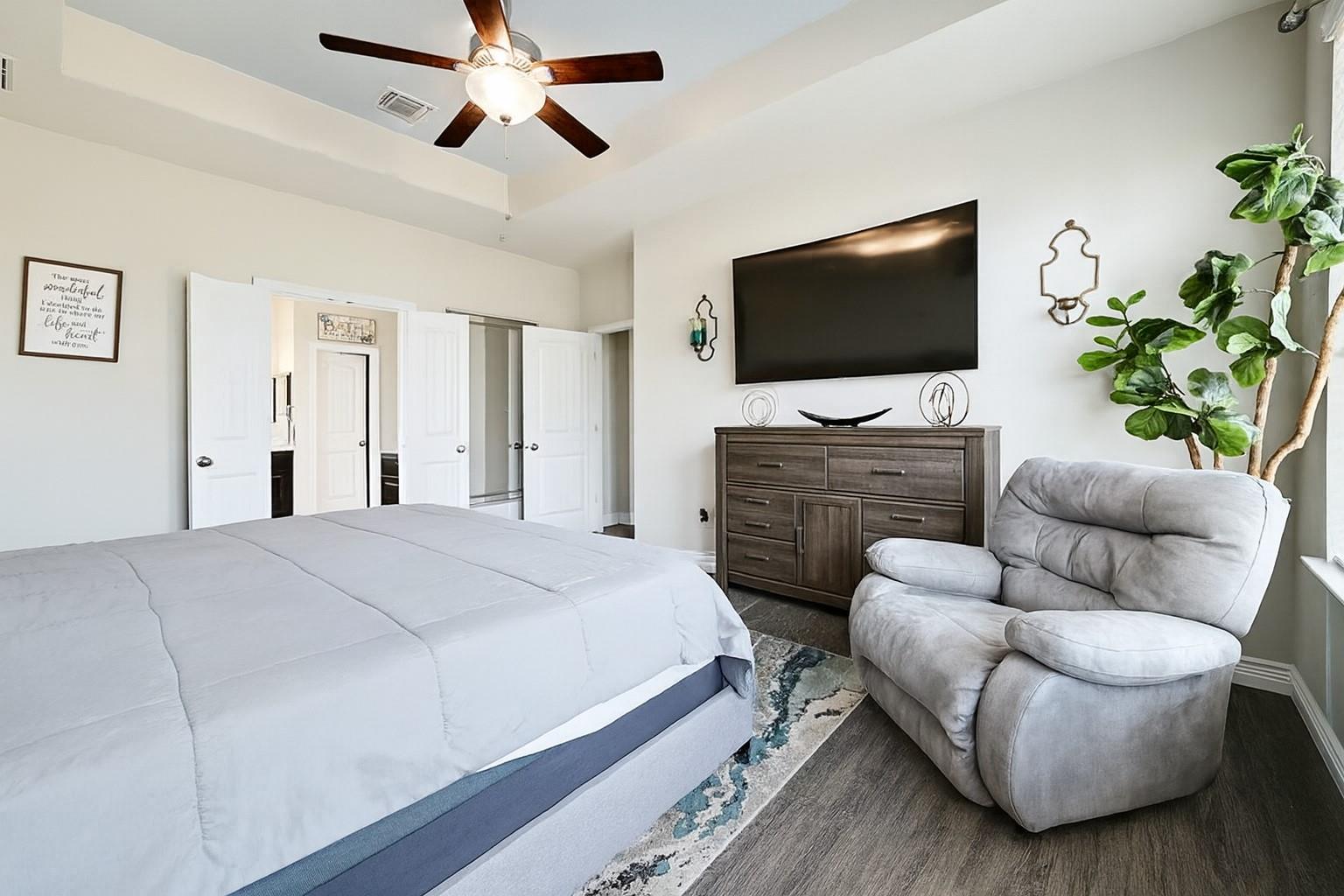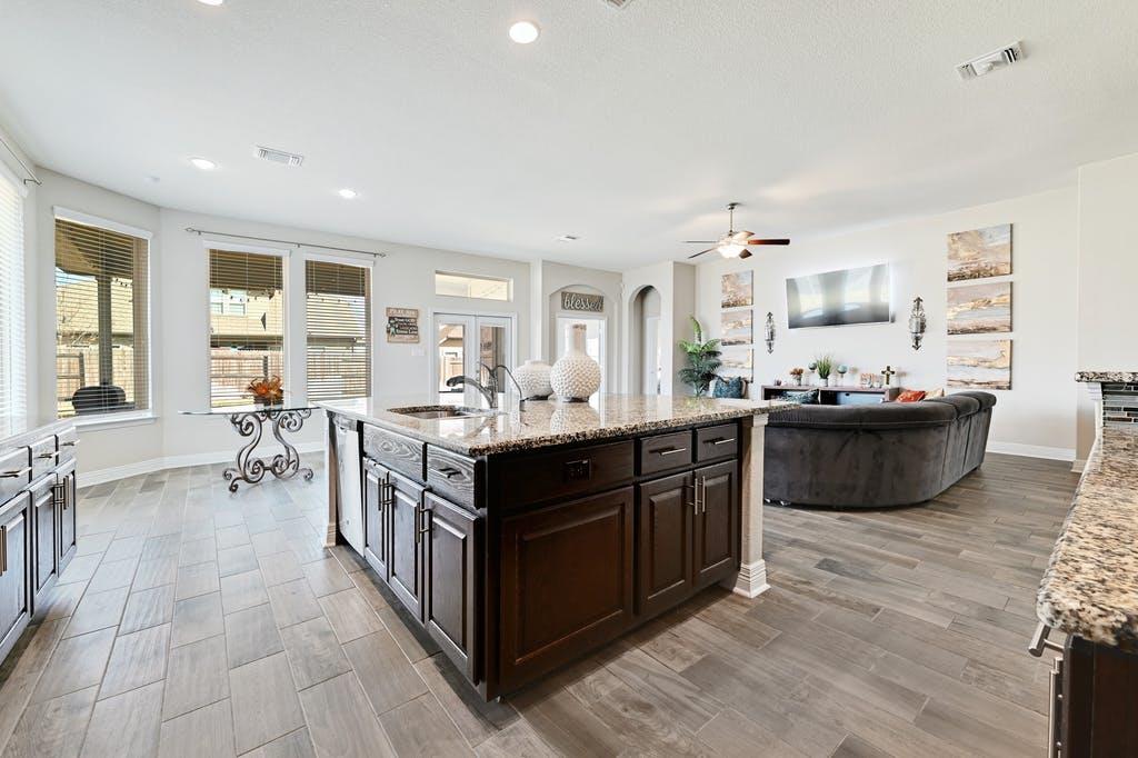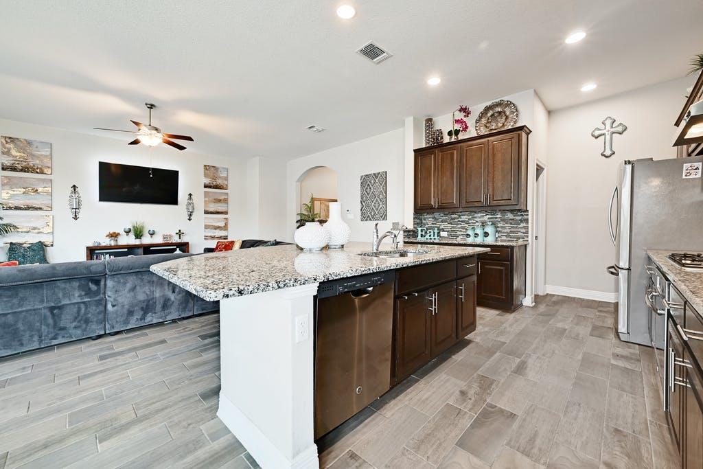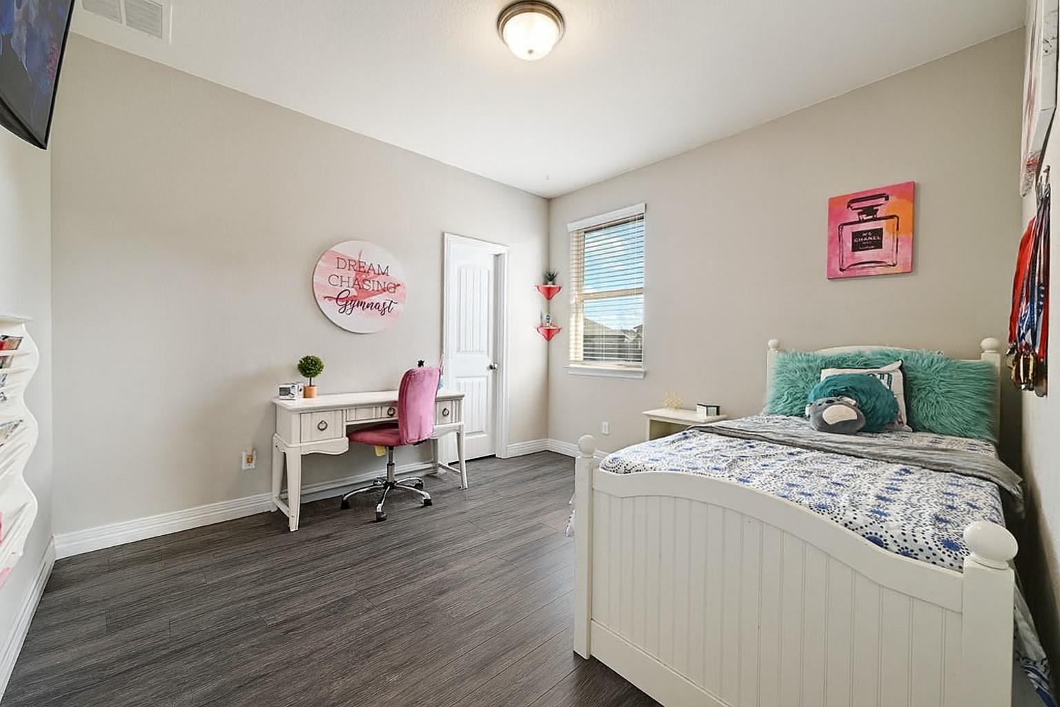 Nestled on a quiet cul-de-sac, this charming 1-story rental offers 3 bedrooms and 2 full baths with an open, inviting layout. The spacious living and dining areas flow seamlessly into a bright, oversized kitchen featuring a large center island, granite countertops, and plenty of cabinetry--perfect for everyday living and entertaining. Stylish luxury wood-look tile floors run throughout the main living spaces, while the bedrooms feature durable luxury vinyl plank flooring for added comfort. The primary suite provides a relaxing retreat, two additional bedrooms offer flexibility for family and guests, and a large home office - perfect for those who work from home. The home sits on a huge yard, offering endless space for play, gatherings, or simply enjoying the outdoors. Just a short walk away, residents can take advantage of exceptional community amenities including a resort-style pool, splash pad, basketball court, sport court, playgrounds, and open fields. Located in a highly rated school district, this home combines comfort, convenience, and lifestyle in one desirable package. With its updated finishes, generous living space, and access to top-notch amenities, this property is a rare opportunity to rent a home that truly has it all.