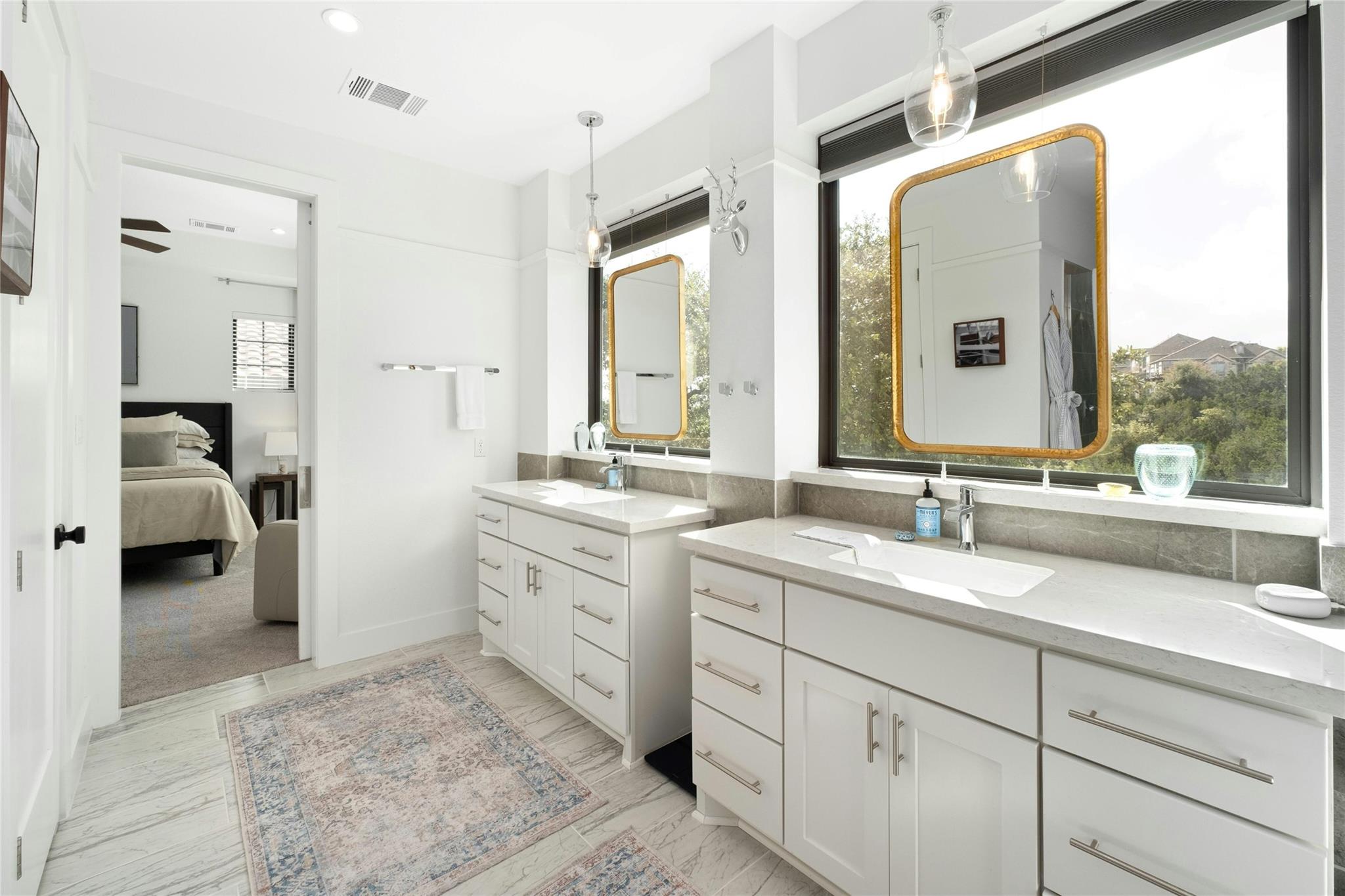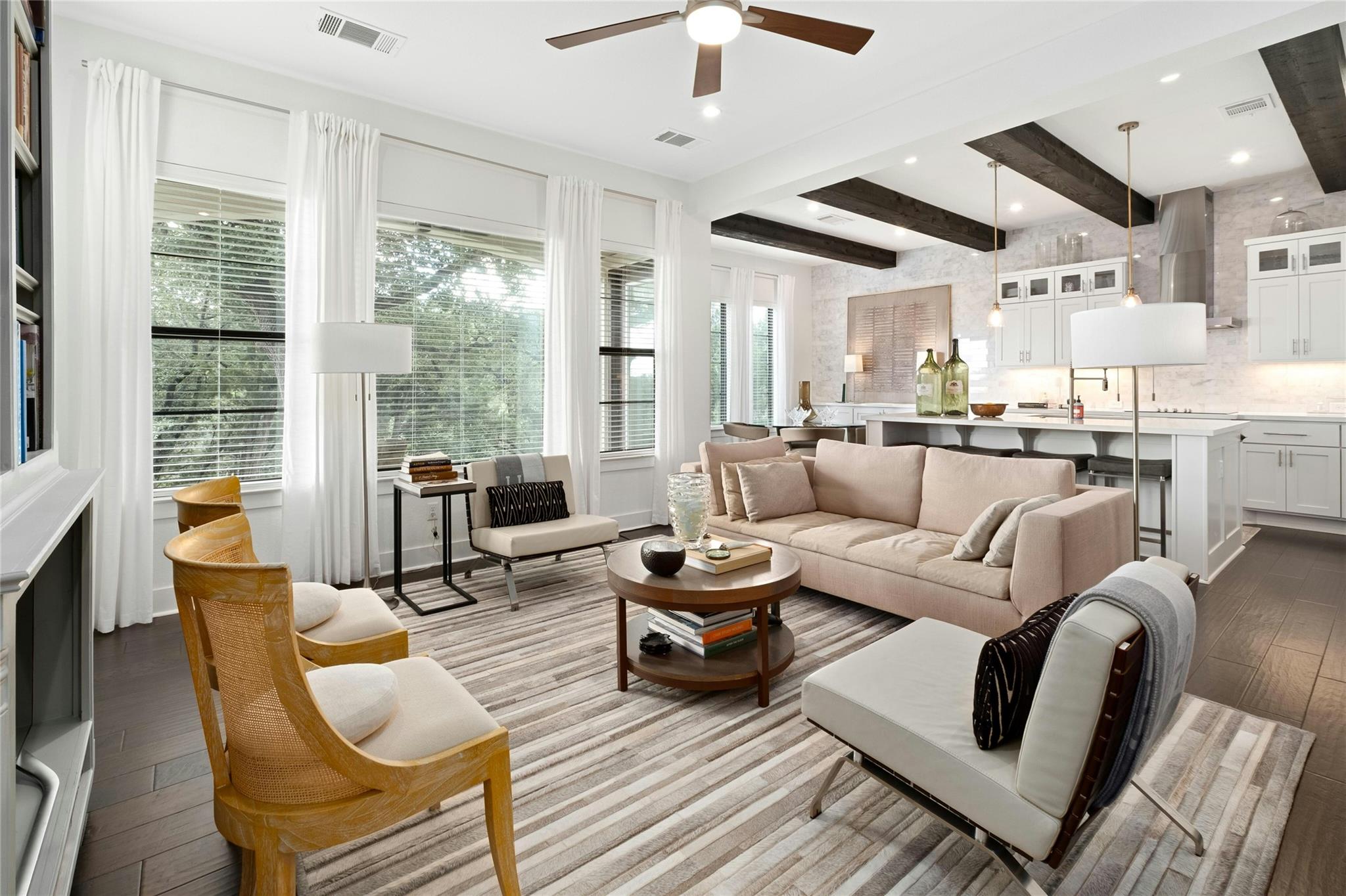 Welcome to 208 Honey Creek Court, a true lock and leave where modern comfort meets elegant luxury in a peaceful setting. This lovely home offers 1,796 square feet of living space with three bedrooms and 2.5 bathrooms, perfect for your next chapter. Step inside and you'll immediately notice the rich hardwood floors and exposed ceiling beams that add a cozy, welcoming vibe. The open floor plan seamlessly connects the living spaces, making it easy to entertain or just hang out. The gourmet kitchen is a real highlight, featuring quartz countertops, stainless steel appliances, and plenty of storage for all your cooking adventures. The primary suite is your personal sanctuary, complete with a spacious bedroom and an ensuite bathroom that boasts a dual vanity. It's the perfect spot to relax and unwind after a busy day. One of the best features of this home is its location at the edge of a serene greenbelt. The covered back patio offers a private spot to enjoy your morning coffee or relax in the evening. With a generous lot, there's plenty of outdoor space for whatever you have in mind. This unique home combines modern amenities with a serene setting. A full-length driveway and direct access to the backyard, which are standout features that set this apart from other homes in the community. Don't miss out on the opportunity to make 208 Honey Creek Court, Unit 29, your new address! The HOA maintains exterior landscaping and maintenance. Backyard can be fenced with HOA approval. Lot size per TCAD - buyer to verify.