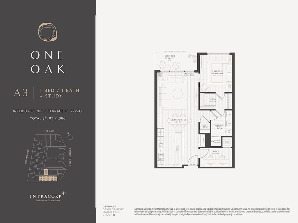 Residence 226 at One Oak is a rare opportunity to buy into this highly desirable development as a primary owner or investor. As closings commence, a limited number of developer-owned residences are being brought to market for the first time. Don't miss your chance to find a home at Bouldin Creek's premier building. This is one of only two, one bedroom units that convey with a leasing permit if the buyer wants one. This residence is a generously scaled one-bedroom/study without compromise. An expansive open Italkraft kitchen with state-of-the-art Bosch appliances and upgraded pantry wall seamlessly flows to a formal dining area and living room with oversized windows bringing in plenty of natural light. A private covered terrace allows for a dining table or lounge seating facing South to the green space and creek. The dedicated study allows additional space for a home office, fitness area, reading nook, and more. The four-fixture bath is one of a kind with a customized shower with bench seating. The entire residence features Oak Oak's exclusive dramatic design scheme. Brand new, ready for closing soon, and your entrance into Austin's most coveted condominium community. Washer/dryer and refrigerator are included in sale.