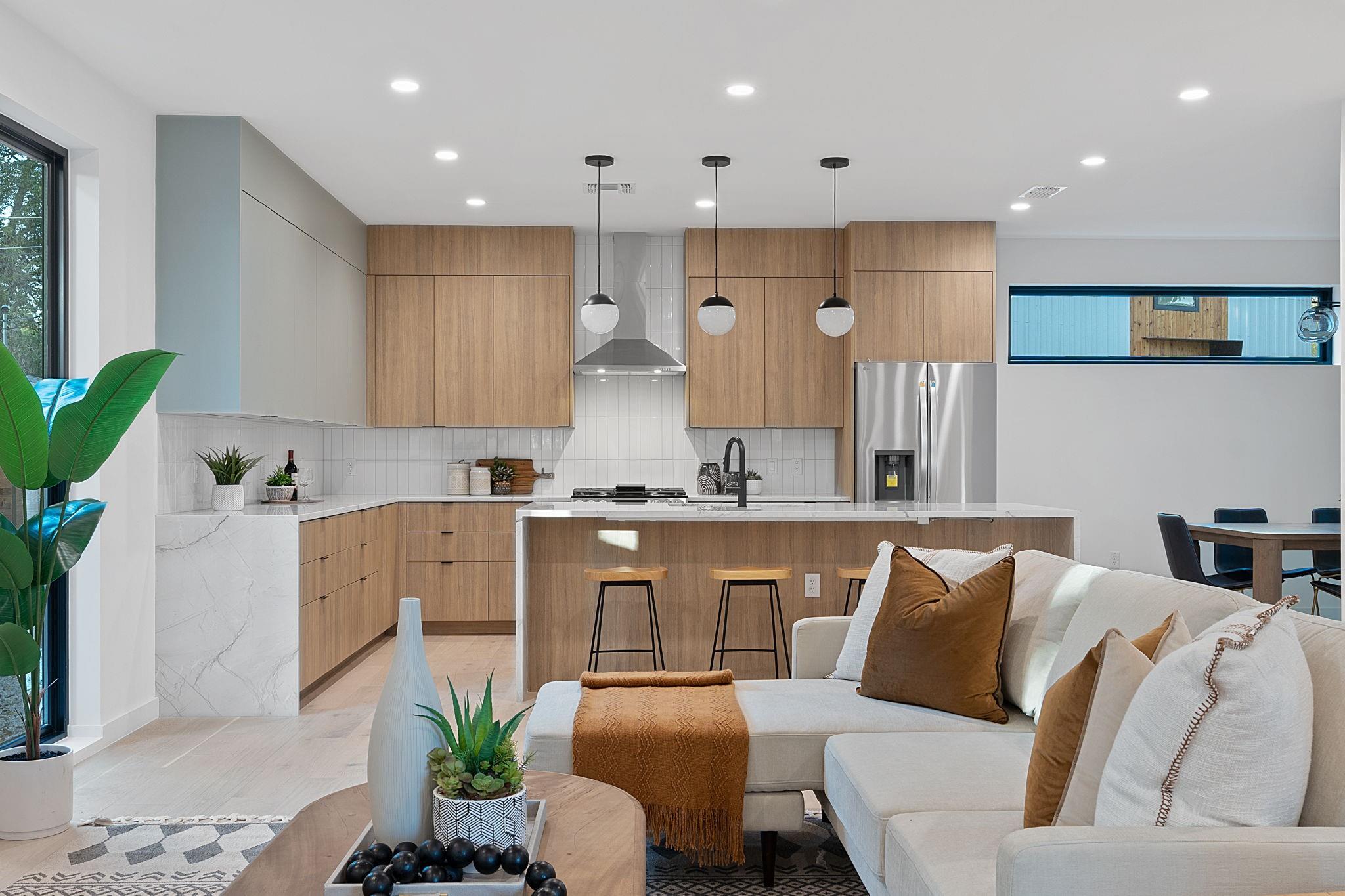 DO NOT MISS THE HIDDEN HALF BATH DIRECTLY IN FRONT OF YOU WHEN YOU OPEN THE FRONT DOOR**Free buy down available with preferred lender reducing qualified buyers' rate by 1% for the first and second year. See documents for more information.** Located in the heart of East Austin with Lady Bird Lake directly across the street! Amazing VIEWS of town lake! Easily access Ann & Roy Butler Trail as it is just steps away from your front door. With future views of the"Wishbone" bridge over Lady Bridge Lake - https://www.kut.org/transportation/2024-04-04/ann-and-roy-butler-hike-and-bike-trail-pedestrian-bridge - Brand new construction from a leader in the industry, Forsite Studio, taking aninnovative approach to construct, a healthier, highly efficient, & more durable home - built to last the test of time. Looking to tomorrow - we are dedicated to the evolution of the home building process. We are devoted to deliver you a home inspired by modern architecture. where you can lay your roots in a community rich in character. Stepping inside this beautiful home, you are greeted w/spectacular picture windows - allowing natural light to flow through the spaces, gorgeous hardwood flooring throughout, unique light fixtures, & a neutral color palette. Showcasing an open floor plan - ideal for entertaining. The kitchen features a massive center island topped with Silestone counters, upgraded gas range, & close proximity to the dining area. The private owners' suite on the second story offers private access to a massive balcony and luxurious ensuite - fully tiled walk-in shower. Two secondary bedrooms with access to a full bath. Located on the third story is an oversized flex space, 4th bedroom with full bath, and access to another balcony. Enjoy a massive, completely fenced and private front yard. Plenty of parking space with an attached covered carport for 2 cars. Property is gated with convenient entry access via a FOB