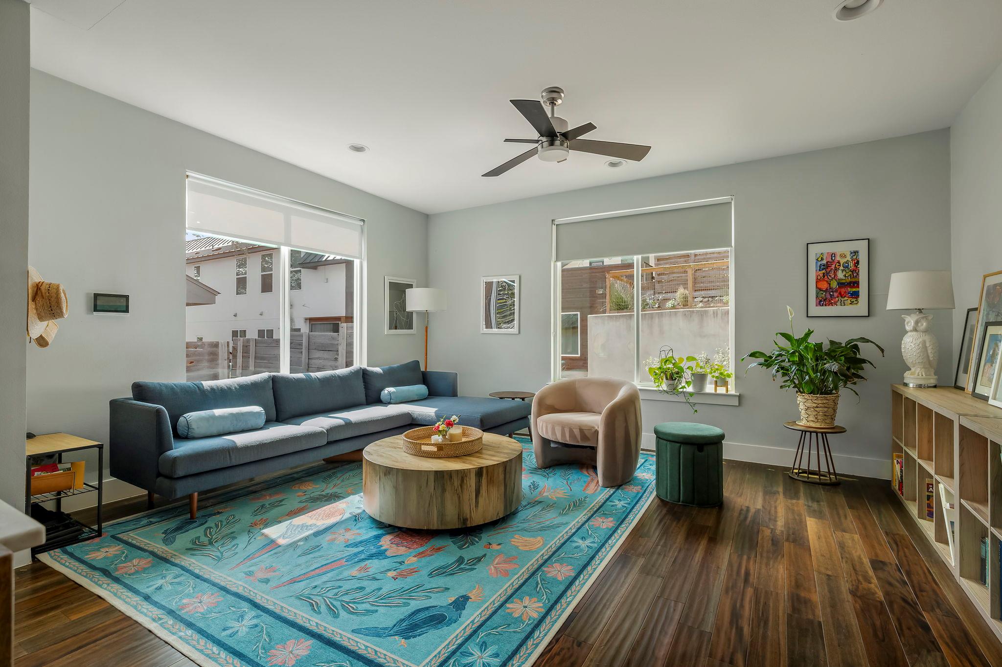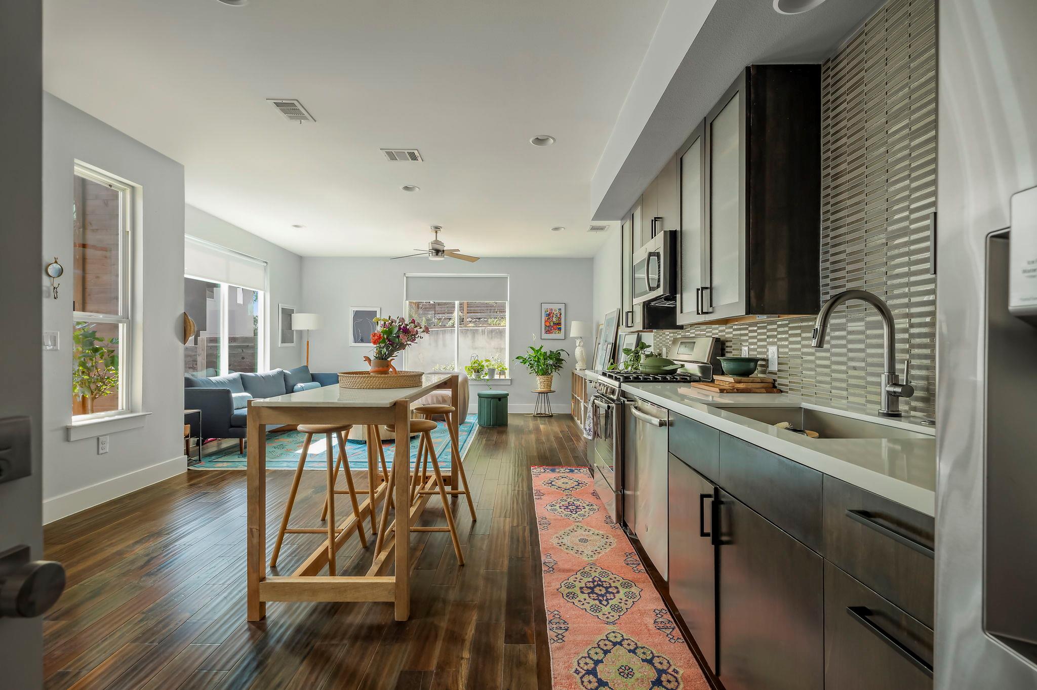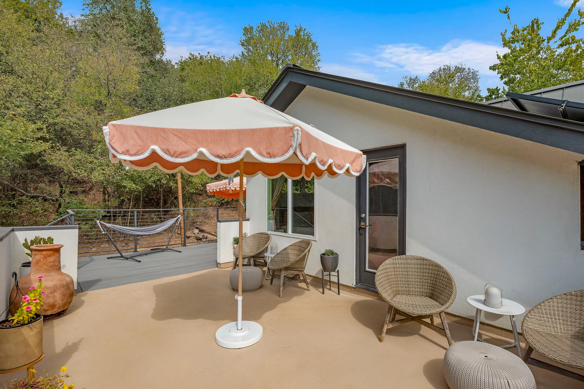 The best part of this home is its outdoor space. The home backs up to lush foliage so it feels like you're in nature instead of minutes to downtown. The patio and deck also make it easy to live, work, and entertain. This space was designed for someone who appreciates a peaceful morning alone and a social weekend with friends.