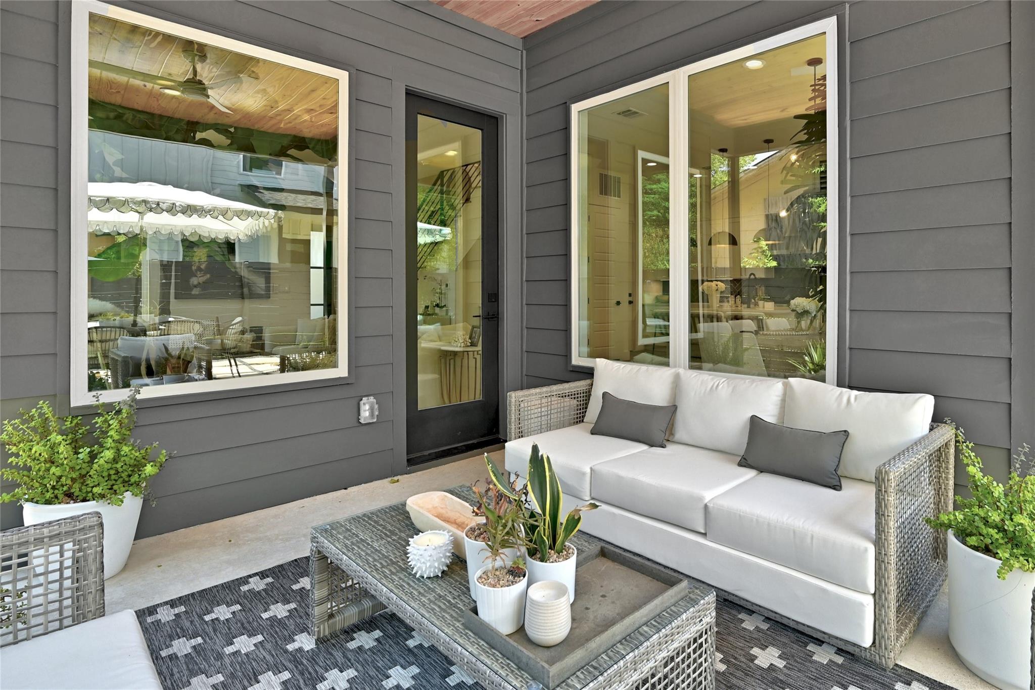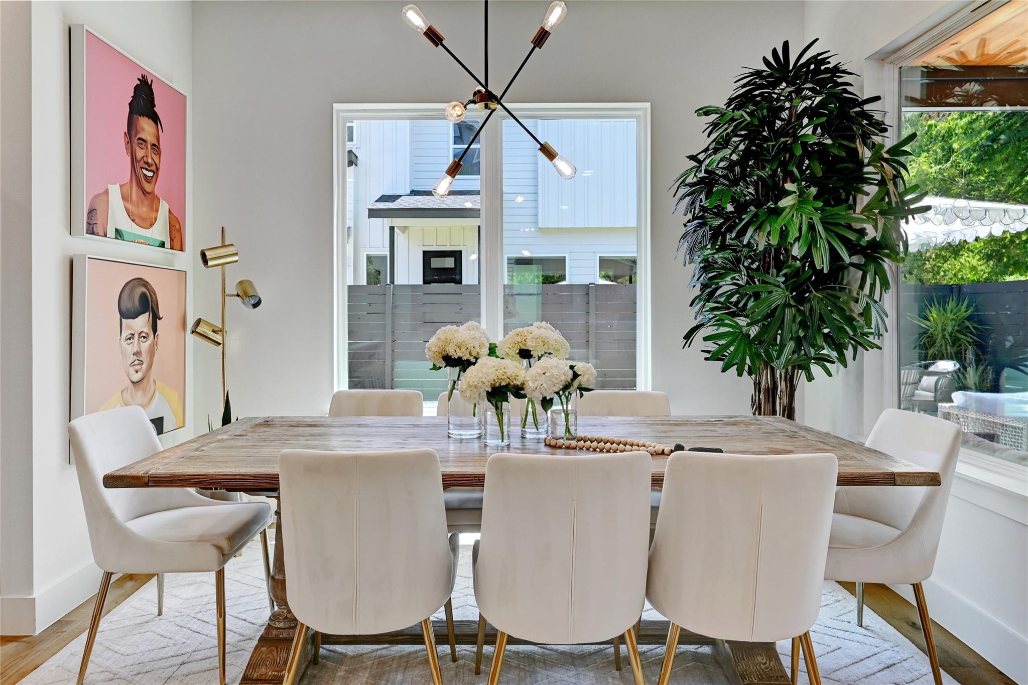 *$1000 OFF FIRST MONTH'S RENT if signed by Dec 1st! This 4-bedroom East Austin home embodies everything we love about life on the East Side -- bold design, thoughtful details, and a vibe that's anything but ordinary. This isn't your average modern build -- it's custom living with a boutique-hotel feel. Step inside and you're greeted by natural light, texture, and flow. The open living and dining areas feel fresh and welcoming, anchored by a striking designer kitchen outfitted with high-end appliances, statement lighting, and custom finishes. Upstairs, the primary suite is all about style and sophistication -- a light-filled retreat with a spa-worthy bathroom and a functional walk-in closet. The secondary bedrooms offer the perfect flexibility for guests, work, or creative spaces. Head up to the third floor for a custom-designed media room that doubles as the ultimate hangout. Slide open the doors to your private terrace, perfect for golden-hour lounging with skyline views. Enjoy outdoor living with front and back spaces ready for entertaining, complete with outdoor furniture and a covered patio. The one-car garage has been transformed into a sleek home gym with a brand-new sauna, so you can skip the commute and the membership fees. Just minutes from downtown, the airport, and all your favorite East Austin spots, this home nails that perfect balance of modern architecture, creative energy, and easy city living. **Rental includes: Some furniture, TVs, outdoor patio furniture and garage gym equipment/sauna.