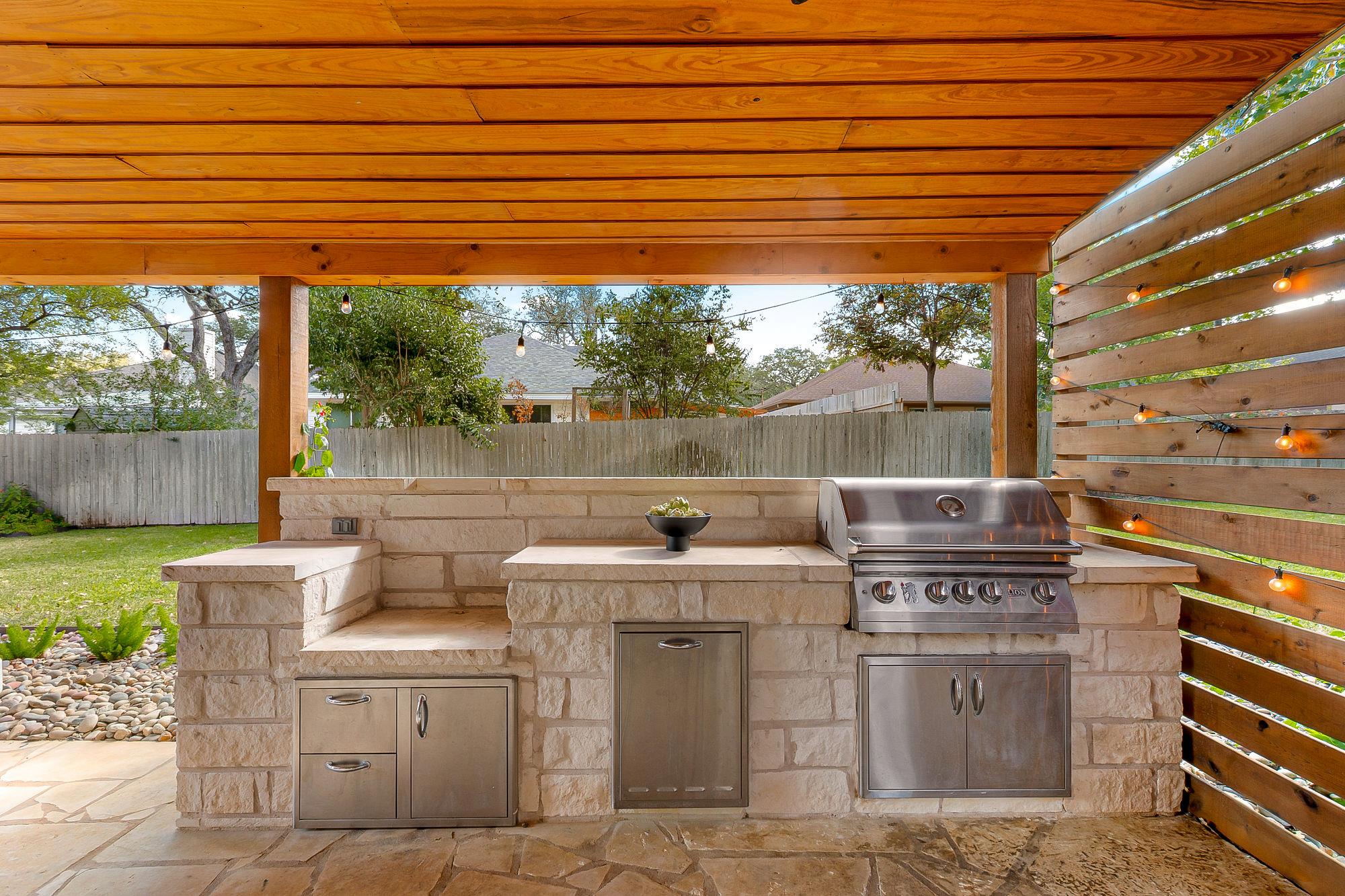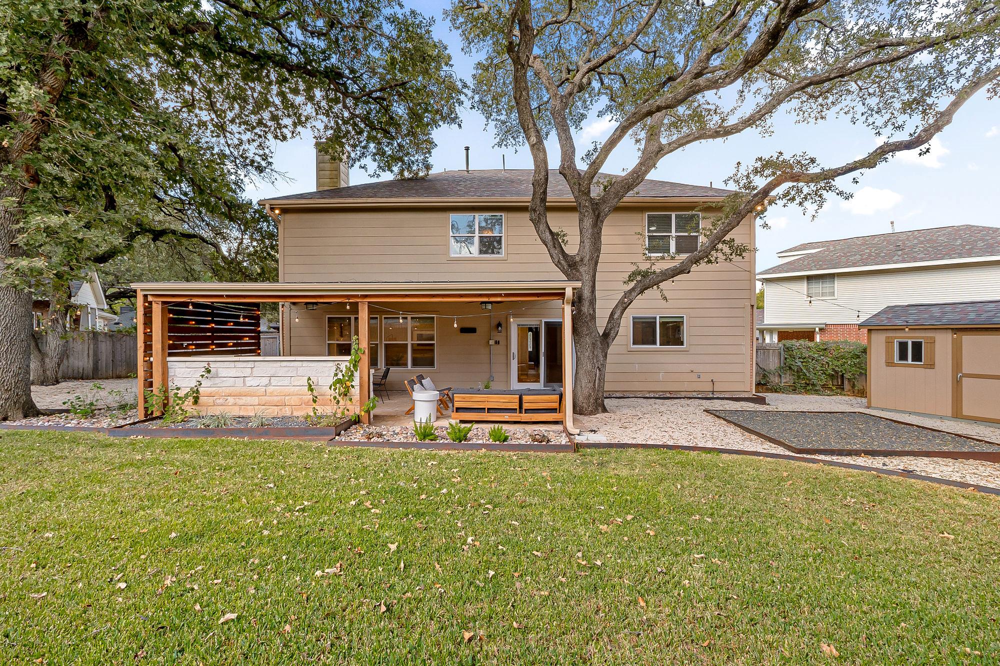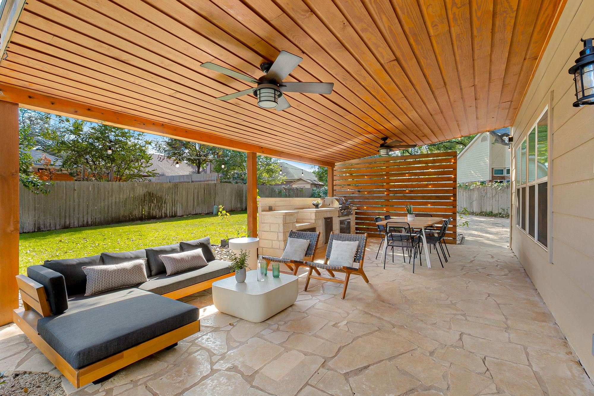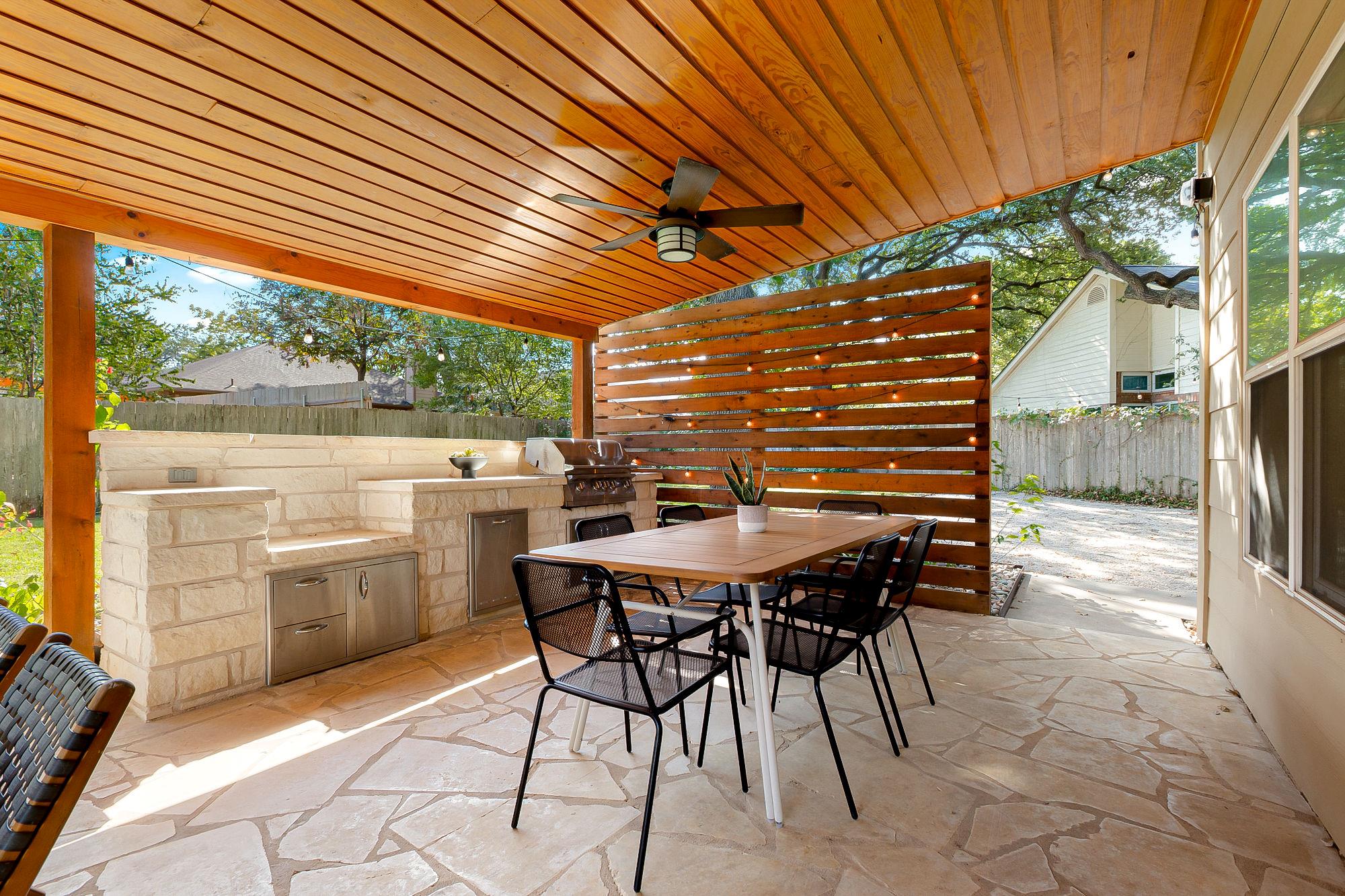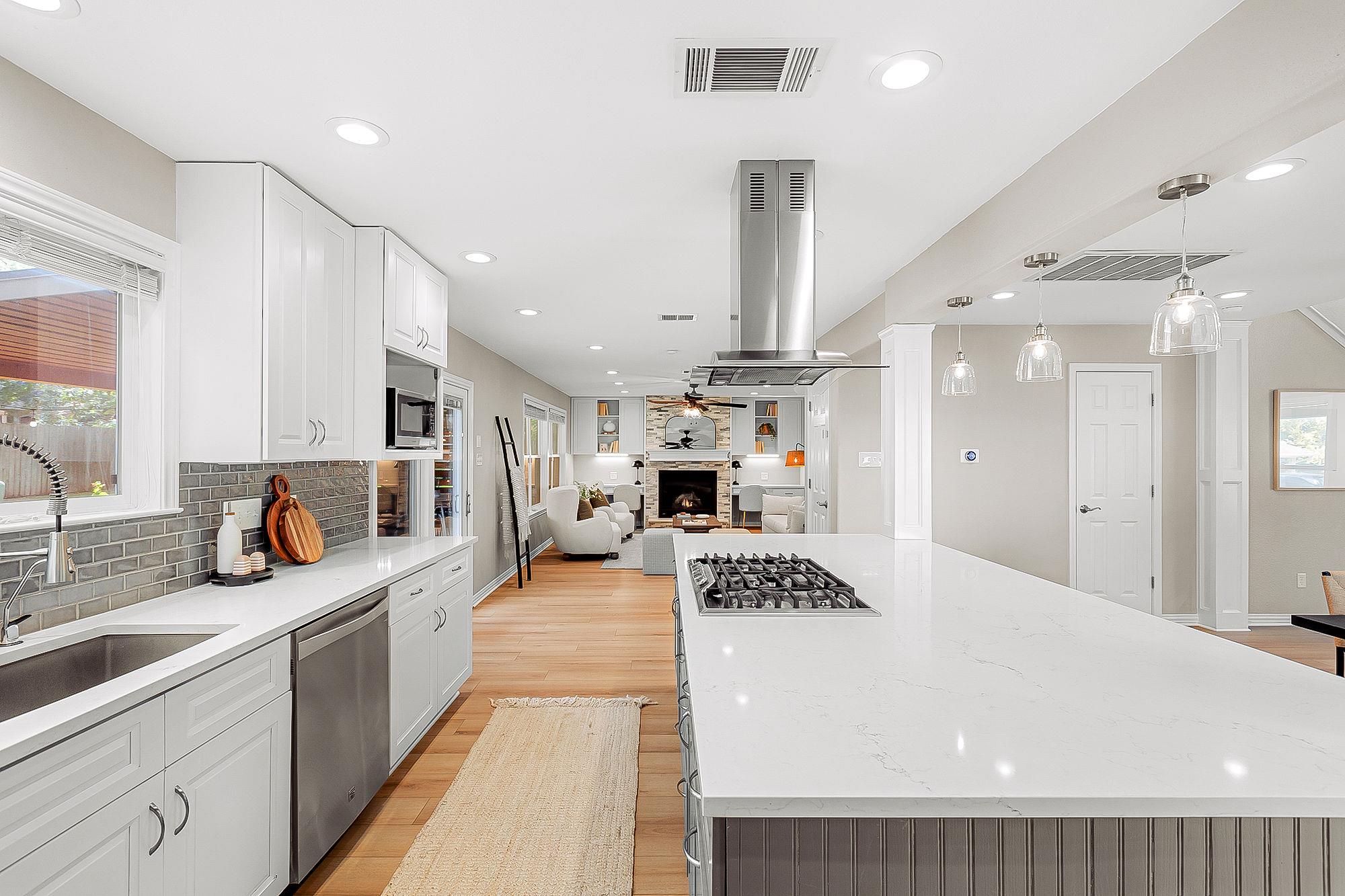 This beautifully refreshed home features newly installed flooring, multiple living spaces and an incredible backyard complete with an outdoor grilling oasis! Elegant white oak style flooring on the main level and staircase creates an inviting and updated space. The open-concept kitchen and living areas create a bright, inviting atmosphere perfect for both everyday living and entertaining. You'll love the cozy fireplace surrounded by built-ins and desk areas! The beautifully updated kitchen showcases stylish finishes, ample counter space, stainless appliances, gas cooktop, double ovens and excellent cabinet storage. Additional bar seating at the island opens seamlessly to the living and dining areas. Fabulous layout! Upstairs, the renovated primary bathroom offers a spa-like retreat with contemporary upgrades including a frameless glass walk-in shower, double vanity, amazing built-in storage and closet space. Secondary bedrooms all have recent ceiling fans and great closet storage. Additional updates: all new plush carpet upstairs! Step outside to an extended covered patio with an amazing grilling and dining area -- ideal for hosting friends or enjoying quiet evenings at home. The fully fenced backyard has been thoughtfully designed and maintained with custom landscaping, offering a private and tranquil setting to relax or entertain year round. Additional peace of mind comes with a new roof and HVAC system, both replaced in 2024. Amazing location with many neighborhood amenities including parks, playgrounds, pool, community center, sports courts and more. With its modern updates, functional layout and inviting outdoor spaces you can move right in and start living!