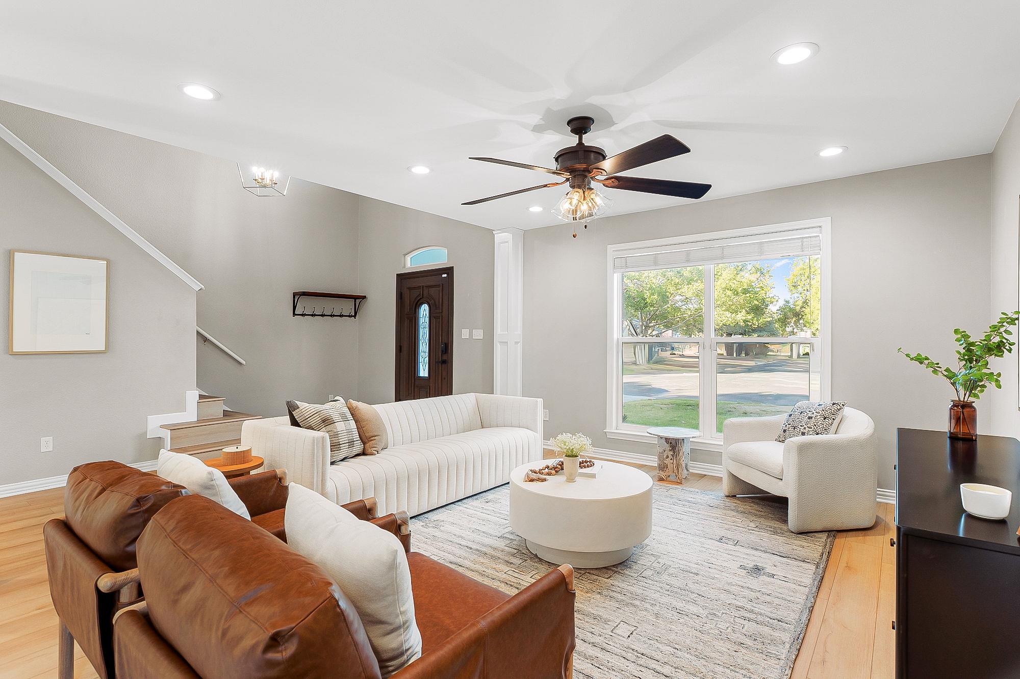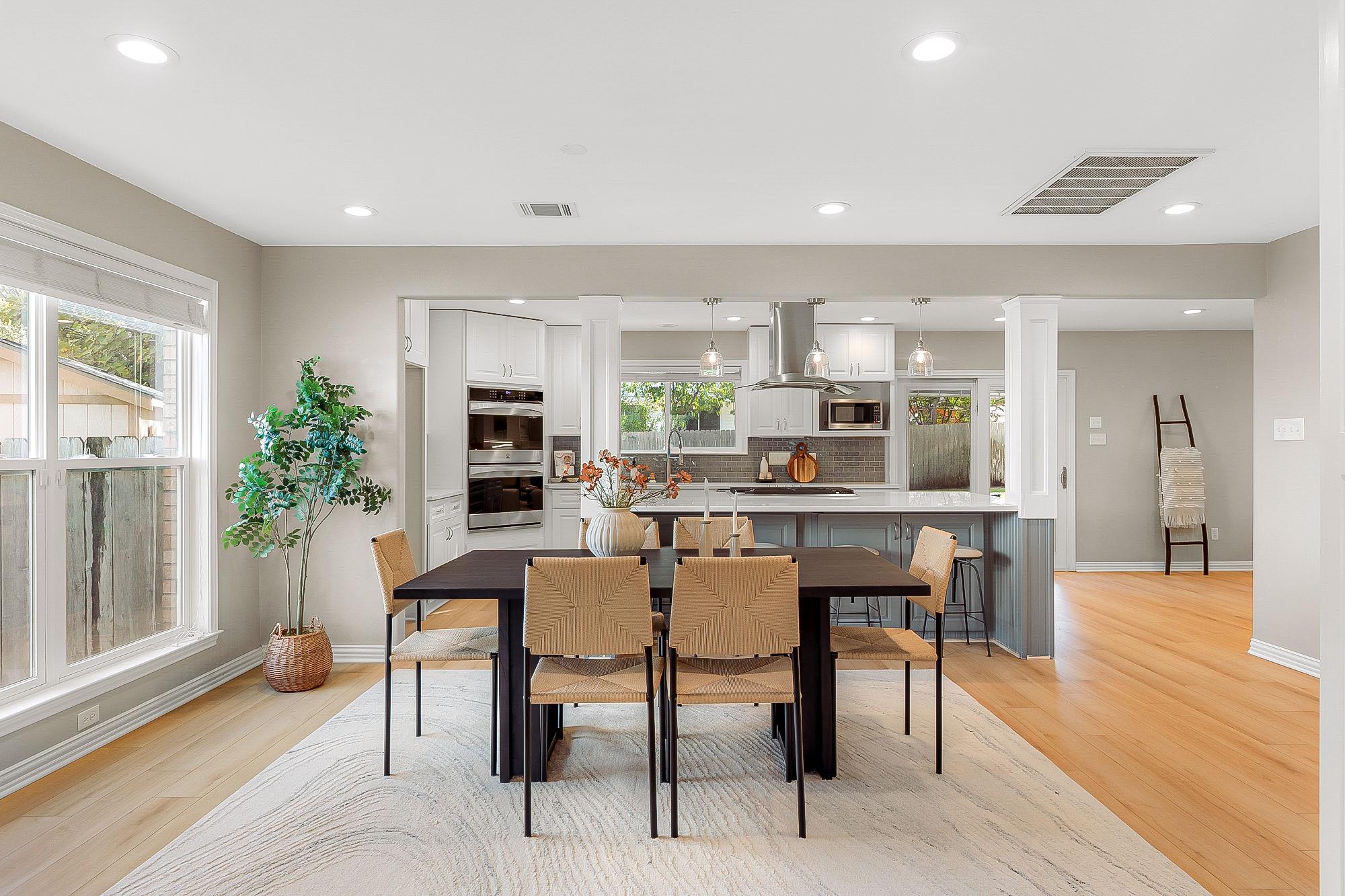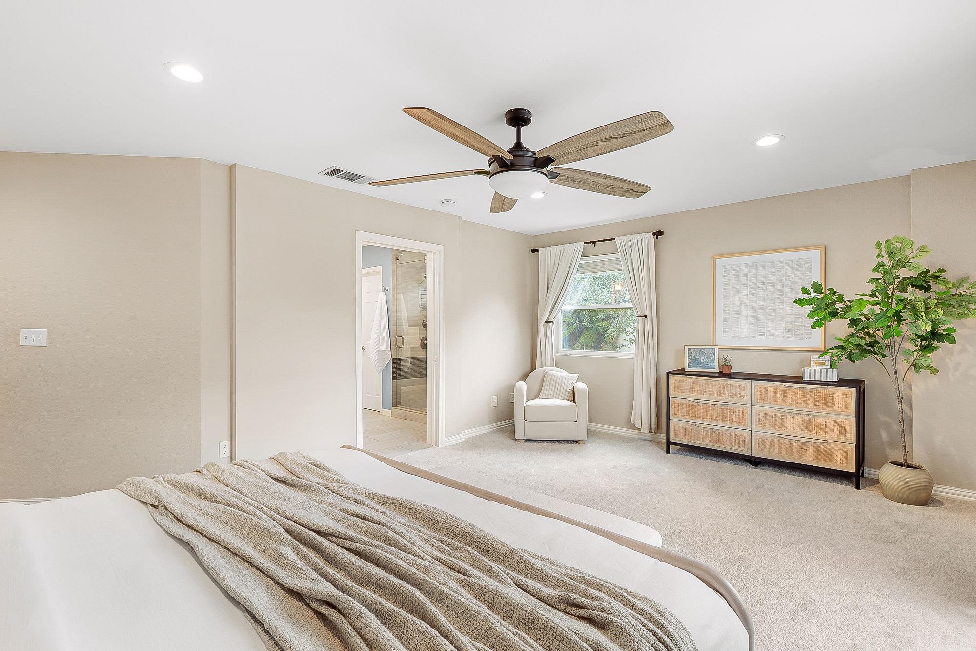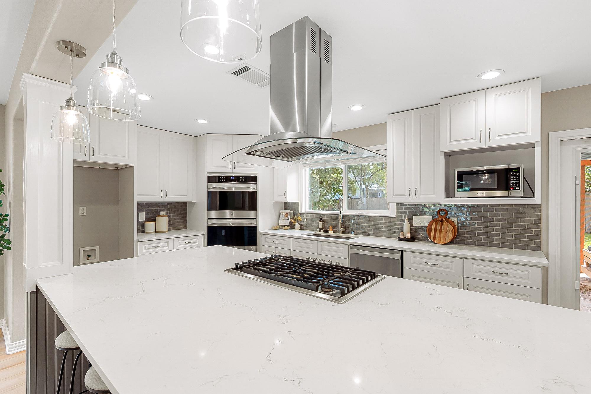 This beautifully refreshed home features newly installed flooring, multiple living spaces and an incredible backyard complete with an outdoor grilling oasis! Elegant white oak style flooring on the main level and staircase creates an inviting and updated space. The open-concept kitchen and living areas create a bright, inviting atmosphere perfect for both everyday living and entertaining. You'll love the cozy fireplace surrounded by built-ins and desk areas! The beautifully updated kitchen showcases stylish finishes, ample counter space, stainless appliances, gas cooktop, double ovens and excellent cabinet storage. Additional bar seating at the island opens seamlessly to the living and dining areas. Fabulous layout! Upstairs, the renovated primary bathroom offers a spa-like retreat with contemporary upgrades including a frameless glass walk-in shower, double vanity, amazing built-in storage and closet space. Secondary bedrooms all have recent ceiling fans and great closet storage. Additional updates: all new plush carpet upstairs! Step outside to an extended covered patio with an amazing grilling and dining area -- ideal for hosting friends or enjoying quiet evenings at home. The fully fenced backyard has been thoughtfully designed and maintained with custom landscaping, offering a private and tranquil setting to relax or entertain year round. Additional peace of mind comes with a new roof and HVAC system, both replaced in 2024. Amazing location with many neighborhood amenities including parks, playgrounds, pool, community center, sports courts and more. With its modern updates, functional layout and inviting outdoor spaces you can move right in and start living!