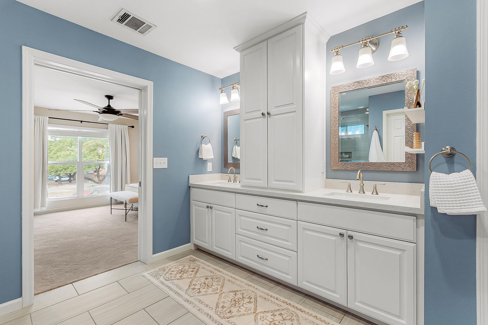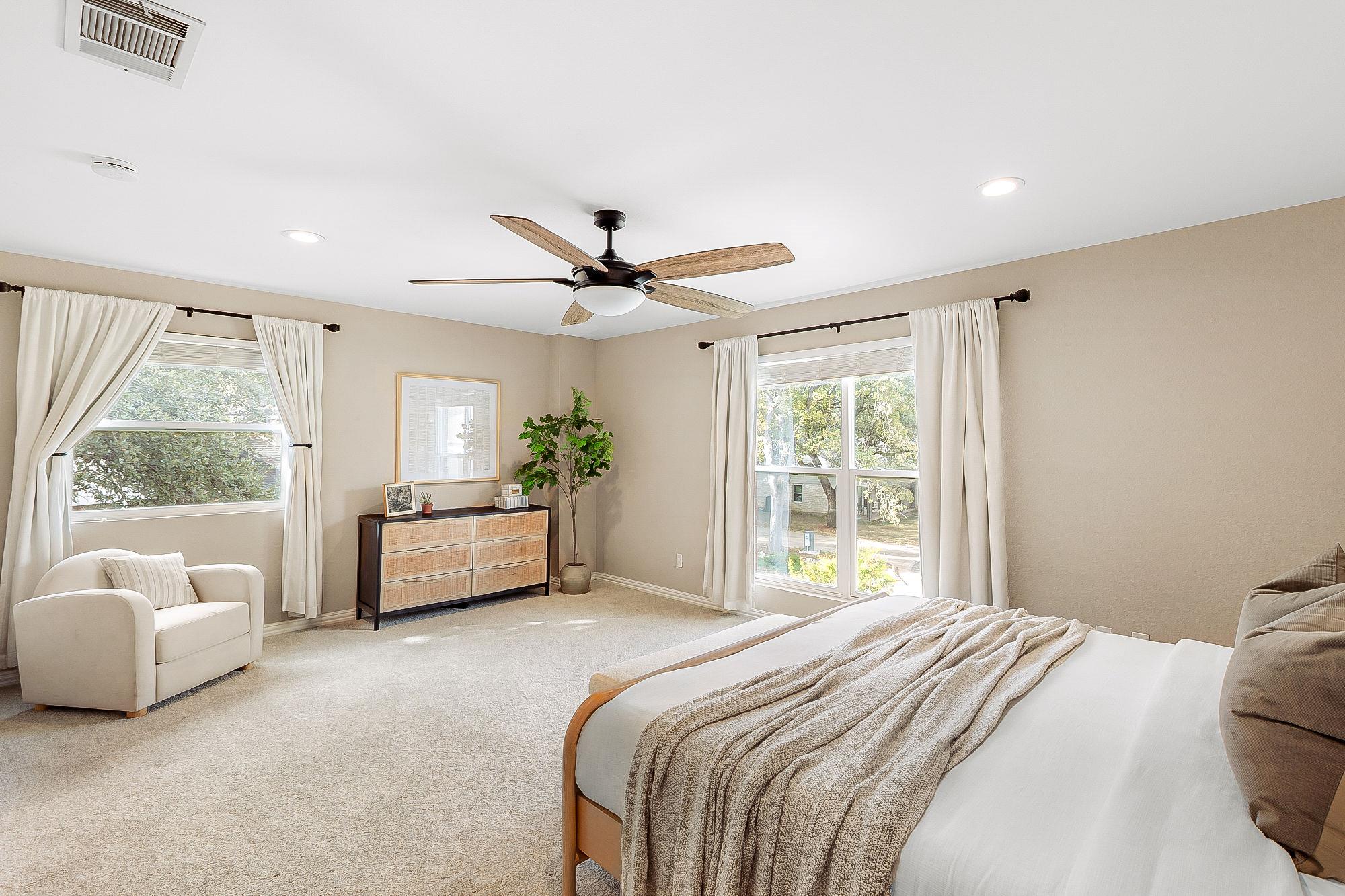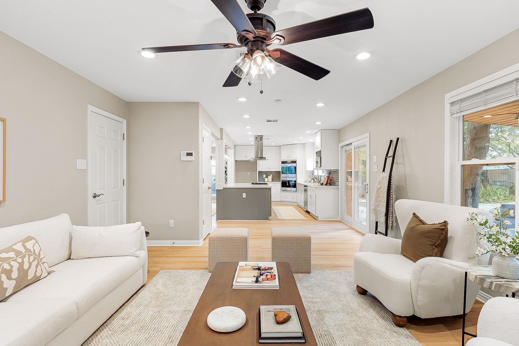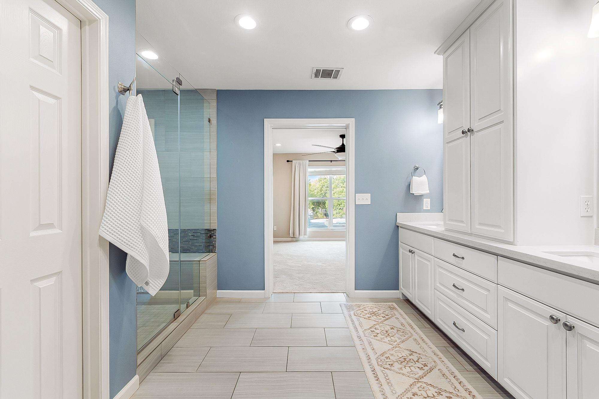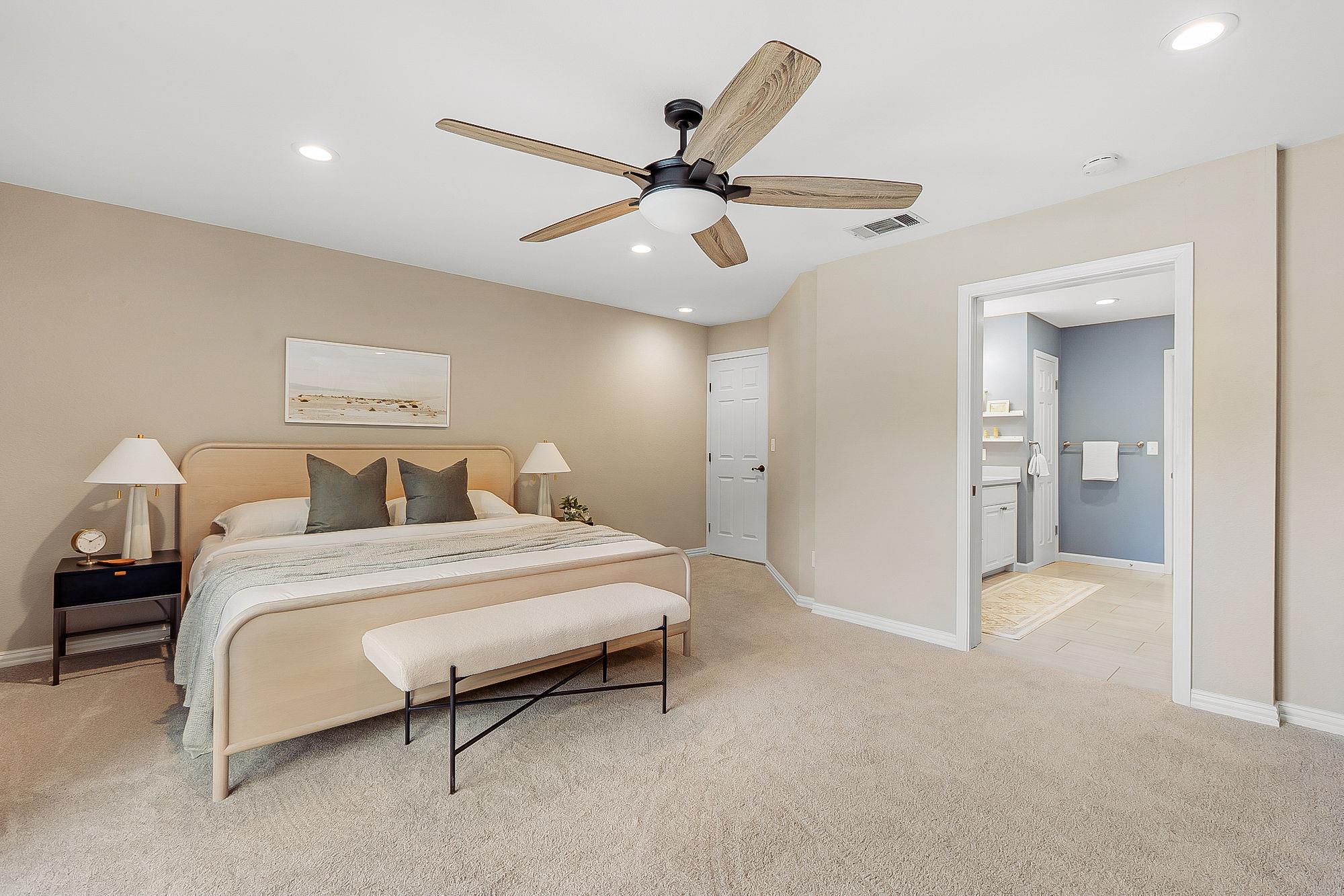 This beautifully refreshed home features newly installed flooring, multiple living spaces and an incredible backyard complete with an outdoor grilling oasis! Elegant white oak style flooring on the main level and staircase creates an inviting and updated space. The open-concept kitchen and living areas create a bright, inviting atmosphere perfect for both everyday living and entertaining. You'll love the cozy fireplace surrounded by built-ins and desk areas! The beautifully updated kitchen showcases stylish finishes, ample counter space, stainless appliances, gas cooktop, double ovens and excellent cabinet storage. Additional bar seating at the island opens seamlessly to the living and dining areas. Fabulous layout! Upstairs, the renovated primary bathroom offers a spa-like retreat with contemporary upgrades including a frameless glass walk-in shower, double vanity, amazing built-in storage and closet space. Secondary bedrooms all have recent ceiling fans and great closet storage. Additional updates: all new plush carpet upstairs! Step outside to an extended covered patio with an amazing grilling and dining area -- ideal for hosting friends or enjoying quiet evenings at home. The fully fenced backyard has been thoughtfully designed and maintained with custom landscaping, offering a private and tranquil setting to relax or entertain year round. Additional peace of mind comes with a new roof and HVAC system, both replaced in 2024. Amazing location with many neighborhood amenities including parks, playgrounds, pool, community center, sports courts and more. With its modern updates, functional layout and inviting outdoor spaces you can move right in and start living!