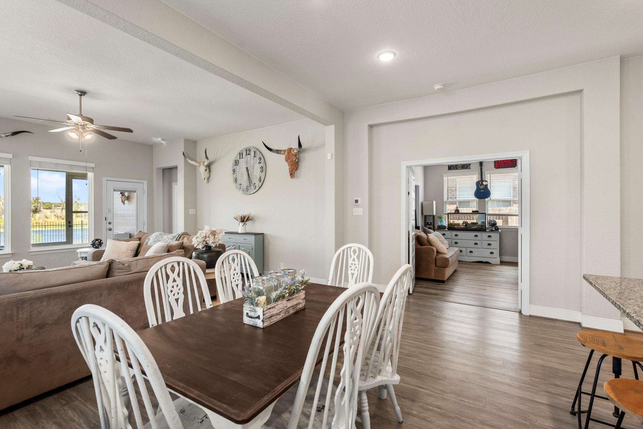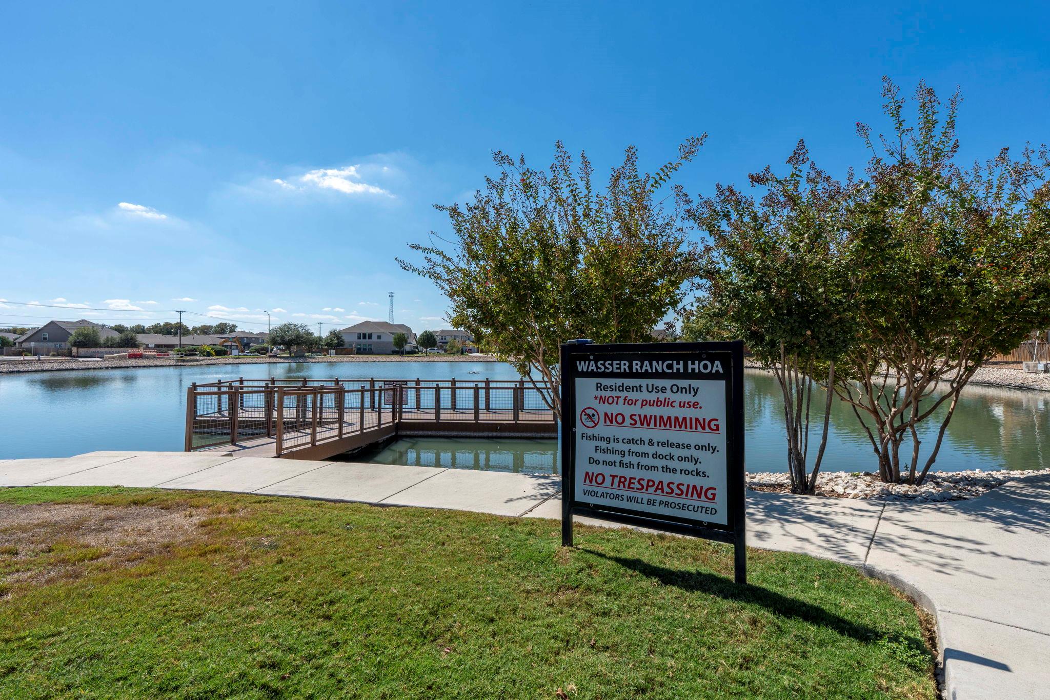 Rare find in Wasser Ranch! This 4-bedroom single-story home offers an open floor plan, a modern kitchen with granite counters and island, and a private primary suite with double vanity and walk-in closet. Relax in your own backyard oasis featuring a fully screened-in covered patio, a fiberglass pool (less than 2 years old), and serene pond views from both the living areas and primary bedroom with no rear neighbor. Conveniently located minutes from Creekside, I-35, Gruene, and top-rated NBISD schools. Community amenities include walking trails, a catch-and-release pond, and park areas. A rare combination of pool and view--don't miss it!