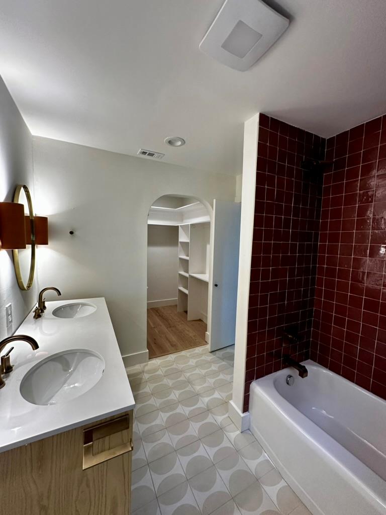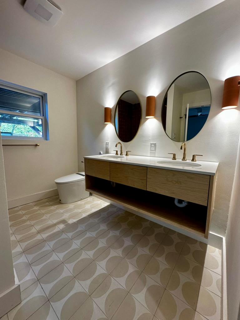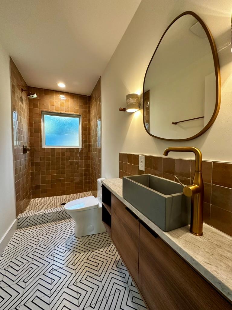 Every surface feels intentional: handmade concrete sinks, Zellige tile, designer lighting, solid wood doors, and Lunawood Thermowood accents that blend Scandinavian sustainability with Austin character.