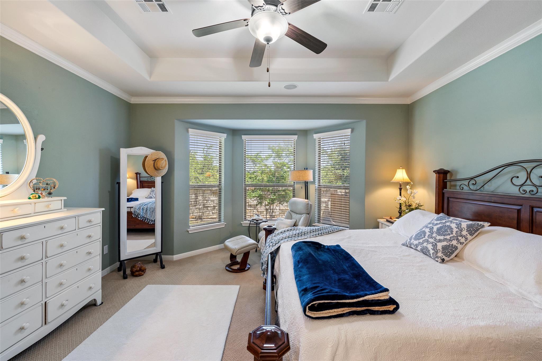 Other Interior Features: Breakfast Bar, Ceiling Fan(s), Tray Ceiling(s), Granite Counters, Crown Molding, Double Vanity, Gas Dryer Hookup, Interior Steps, Multiple Dining Areas, Multiple Living Areas, Open Floorplan, Pantry, Primary Bedroom on Main, Walk-In Closet(s), Washer Hookup