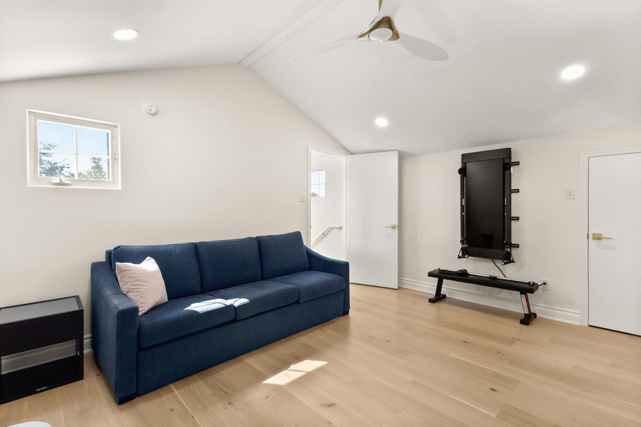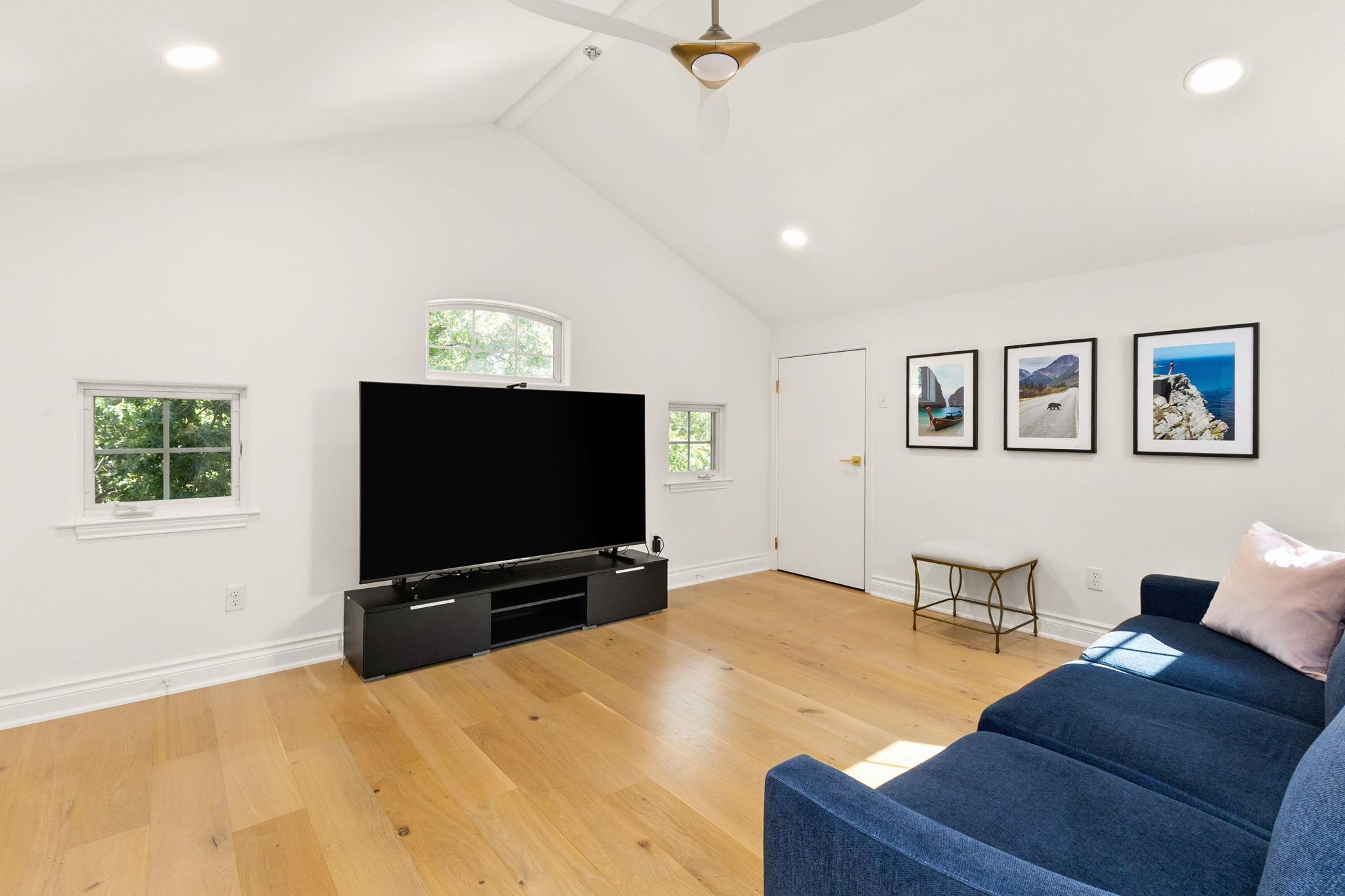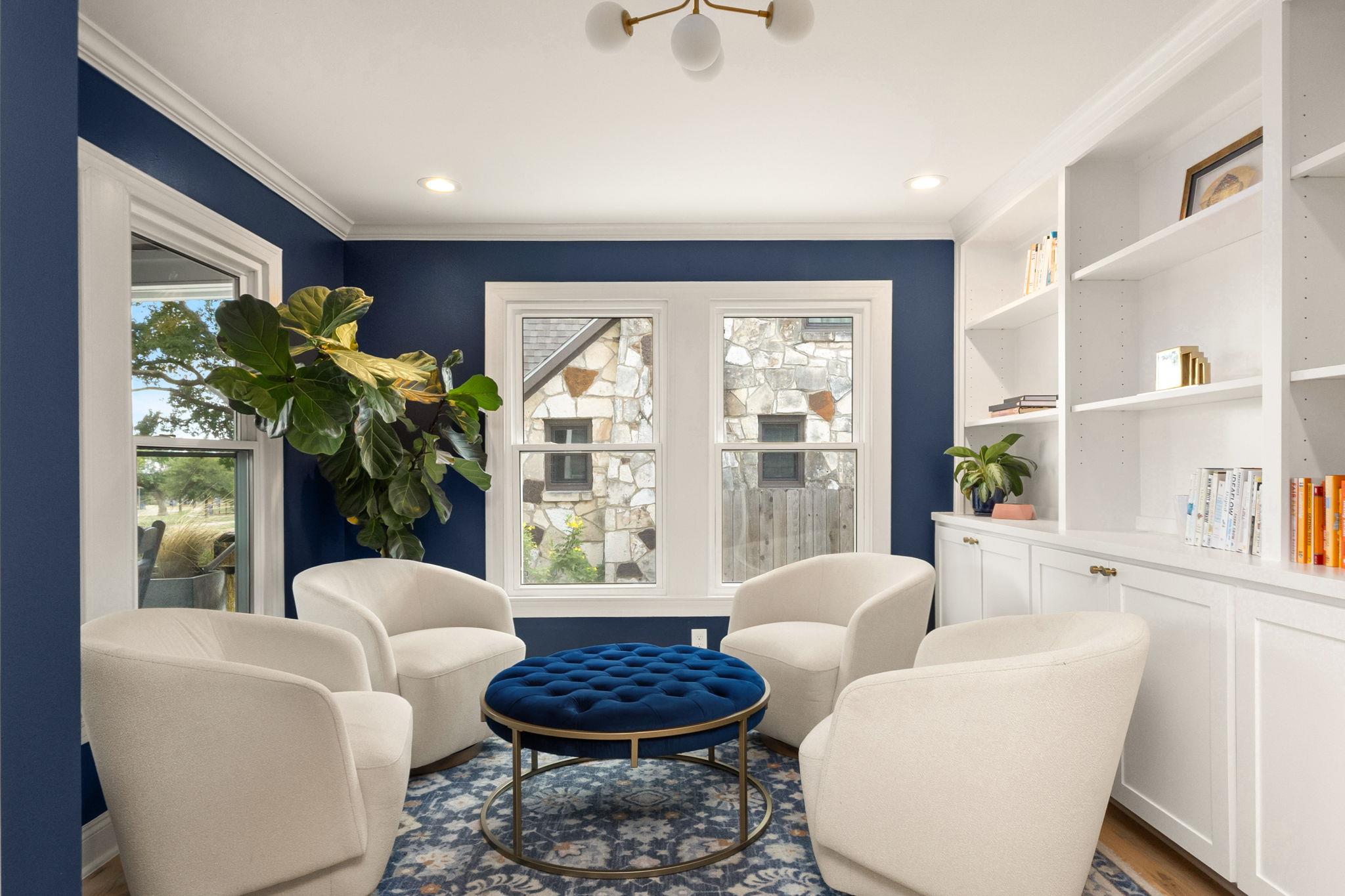 On the second level, the gorgeous primary suite features vaulted ceilings, bright light and backyard view, and a spacious ensuite bath with custom closet storage. With three additional upper level bedrooms, a main floor bedroom or office, a 3rd floor bedroom or bonus room, and a quiet library/den, the entire home offers superb flexibility for entertaining, family life & remote work.