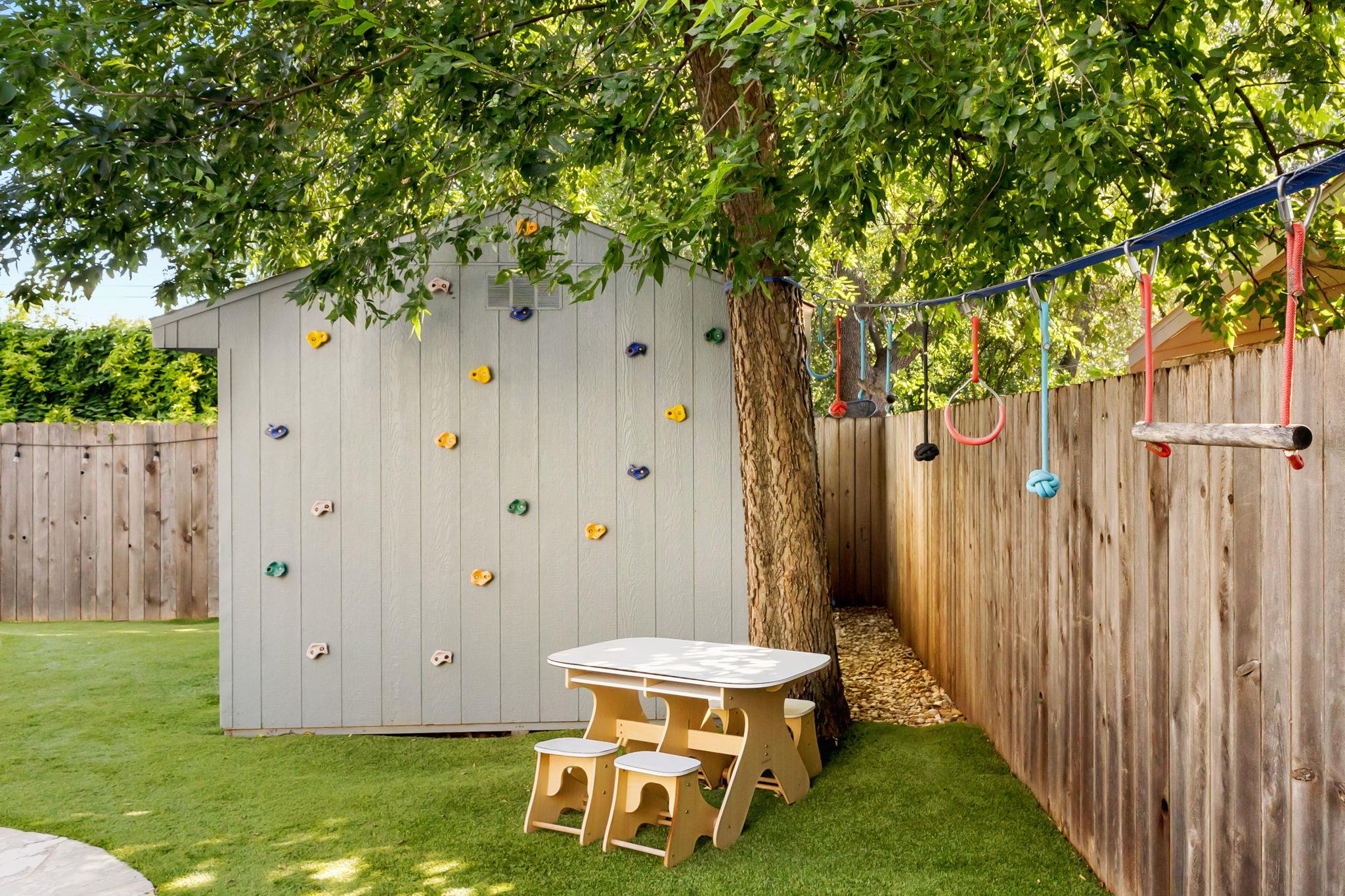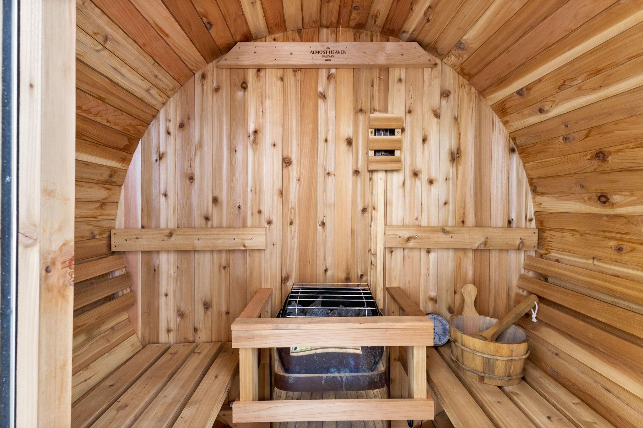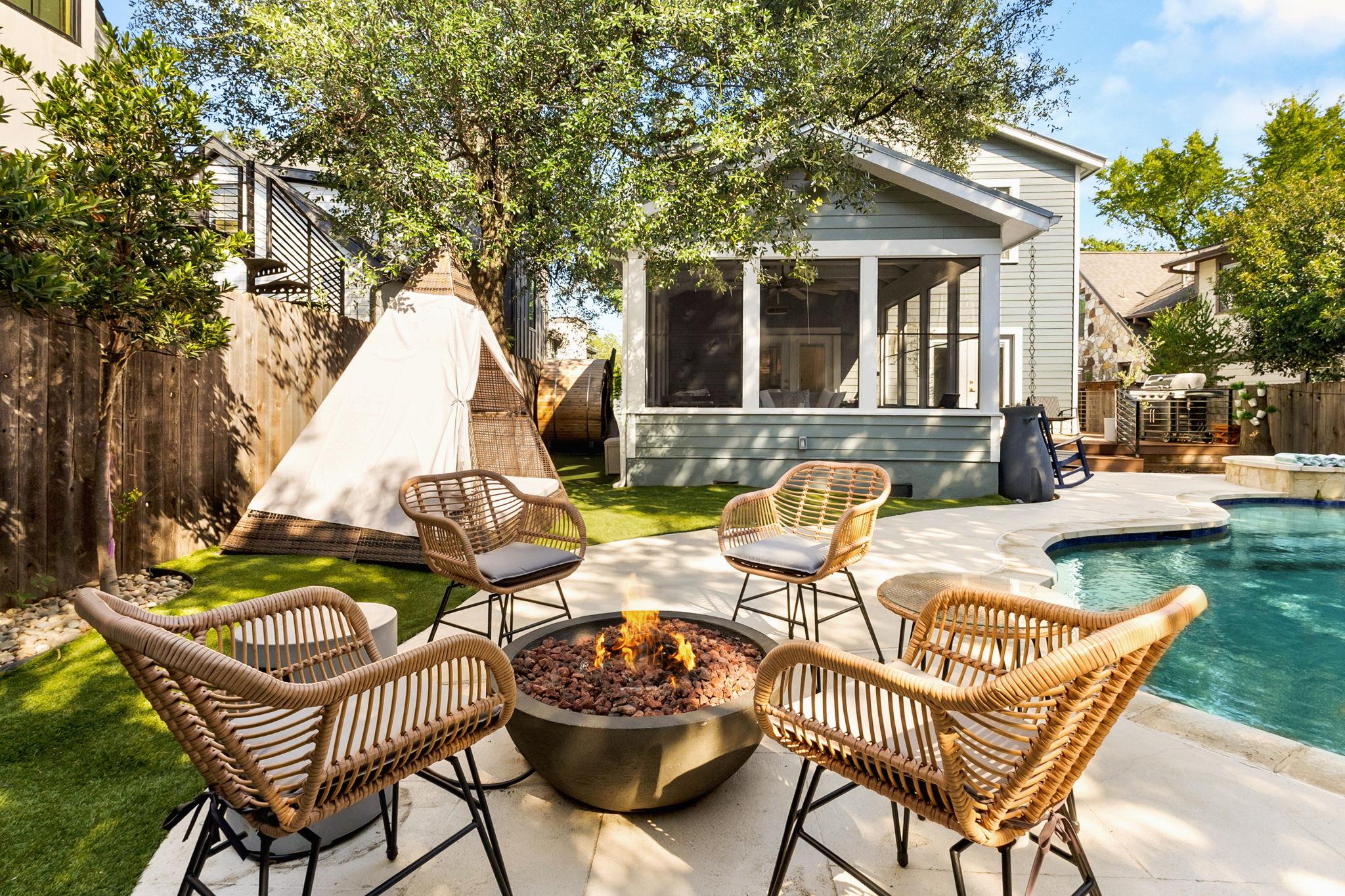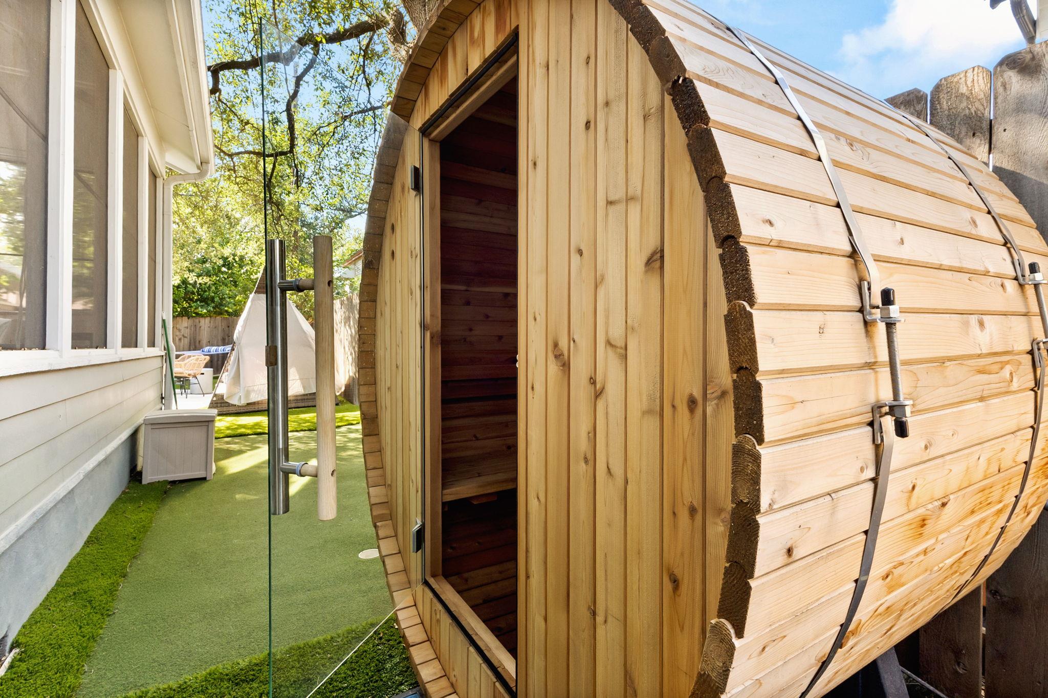The screened-in back porch doubles is the perfect oasis to enjoy morning coffee or dinner with friends while the backyard features a stunning heated pool, hot tub, cedar sauna, putt putt area, rock climbing wall, and easy to maintain landscaping and turf grass.