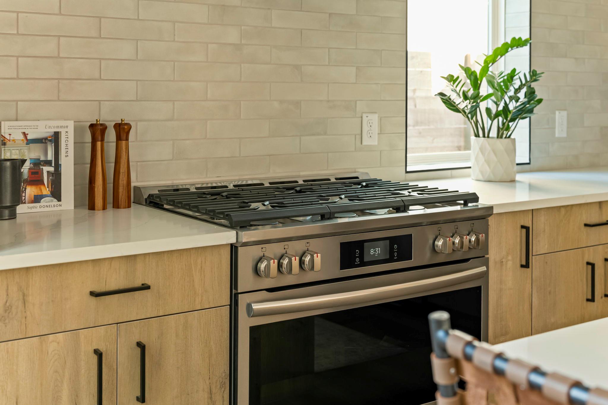 Thoughtfully designed for both style and performance, the open-concept layout centers around a striking chef's kitchen, appointed with sleek quartz countertops, custom wood laminate cabinetry, an artisan tile backsplash, and a premium appliance suite -- including a 36" Frigidaire gas range with a professional-grade vent hood.