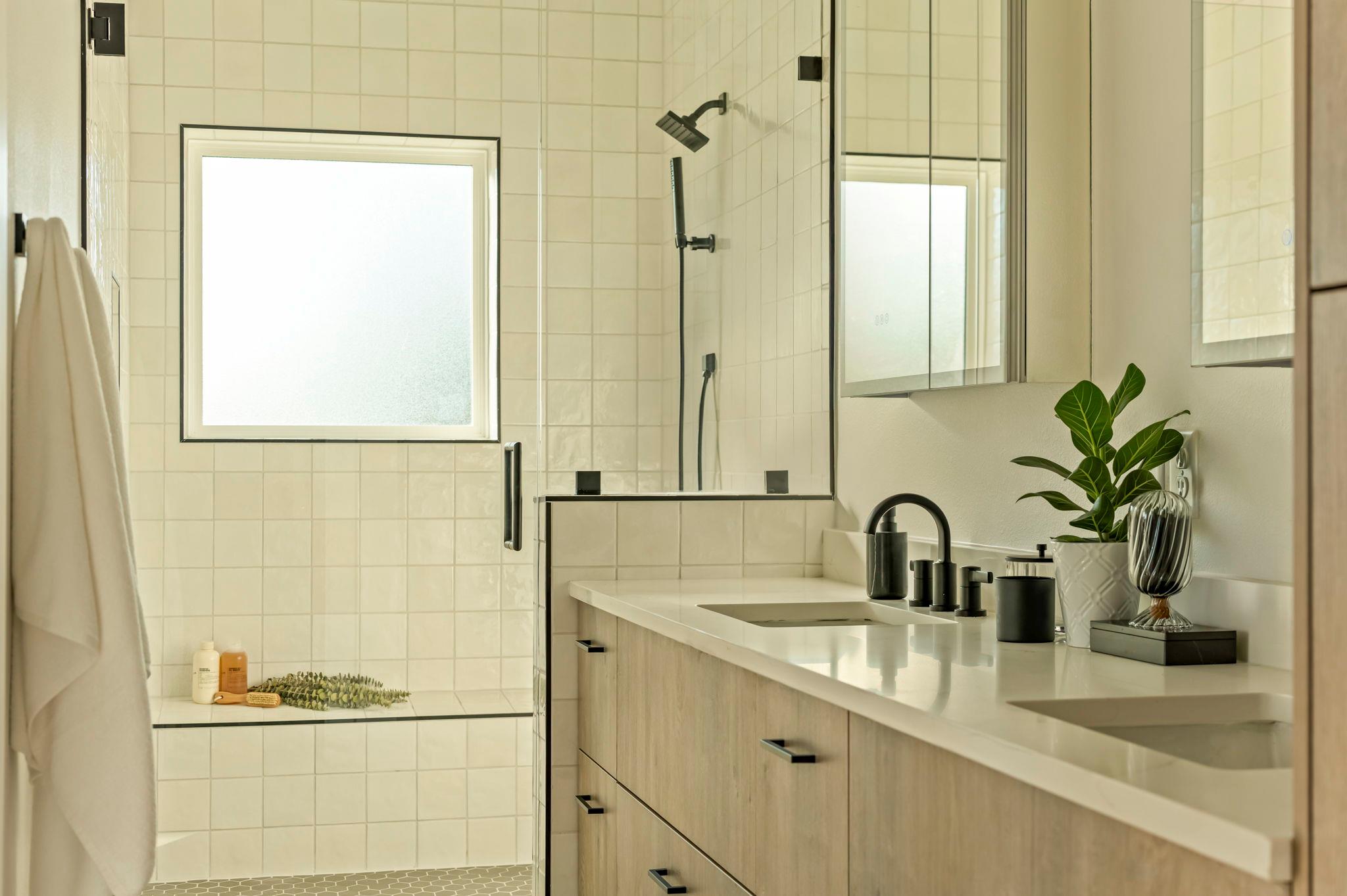 Throughout the home, elevated design elements abound: floating vanities, patterned tile in every bath, premium fixtures, and bespoke built-ins create a cohesive and luxurious aesthetic. Schluter tile edging and soft-close cabinetry further showcase the attention to quality and detail, while eleven dimmer-equipped zones and modern rocker switches allow for tailored lighting and ambiance.