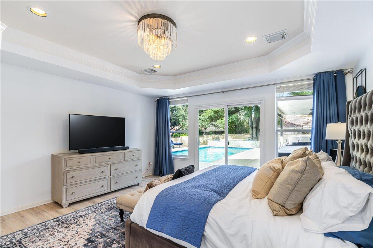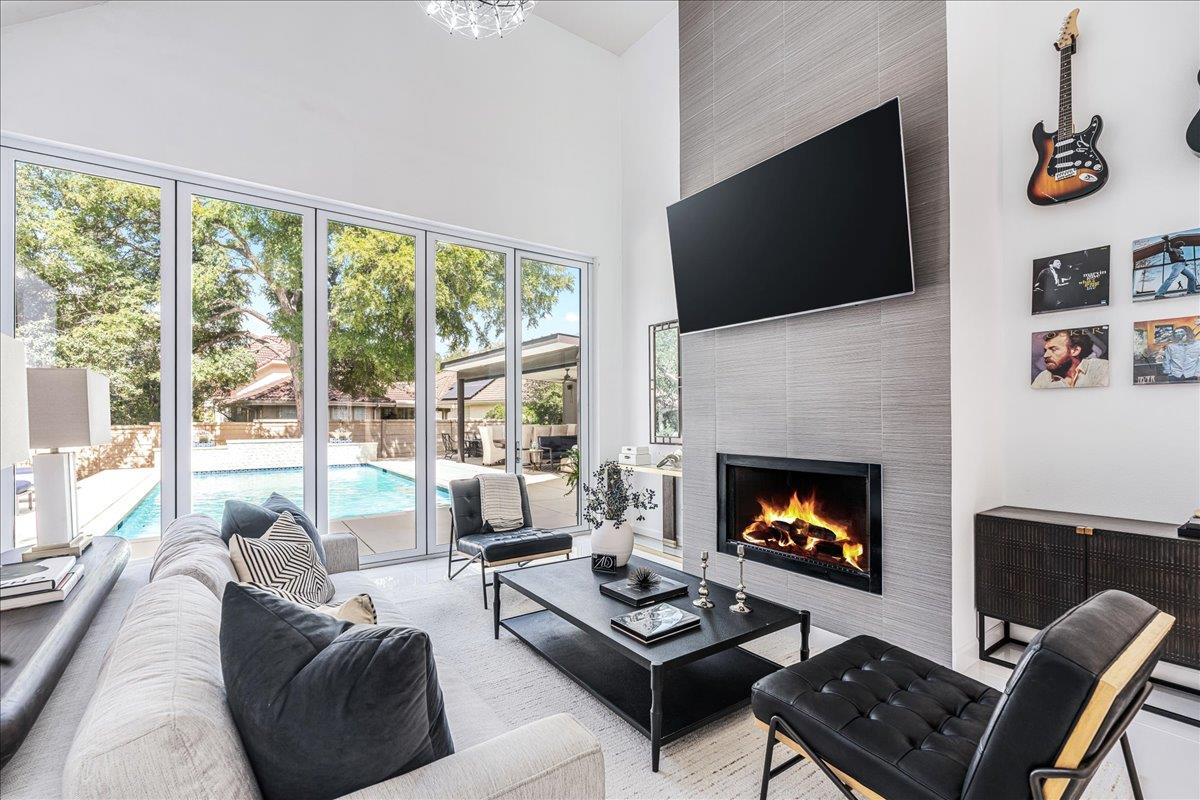 Natural light fills the home through accordion-style folding doors that connect the indoors to the outdoors. Step outside and enjoy your own private backyard paradise, featuring a sparkling pool, relaxing hot tub, and covered patio. The layout creates the perfect setting for morning coffee, weekend gatherings, or quiet evenings by the water.