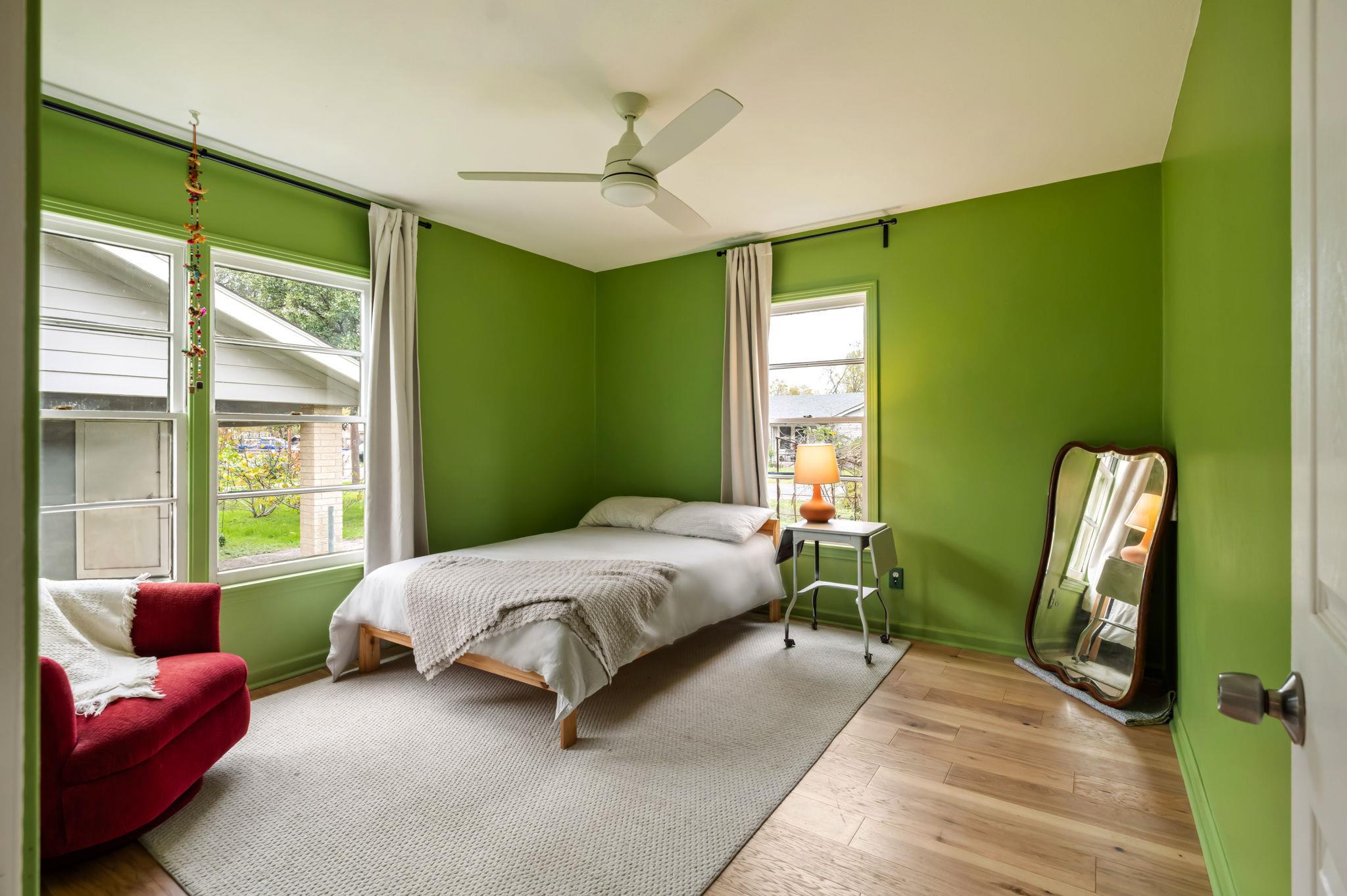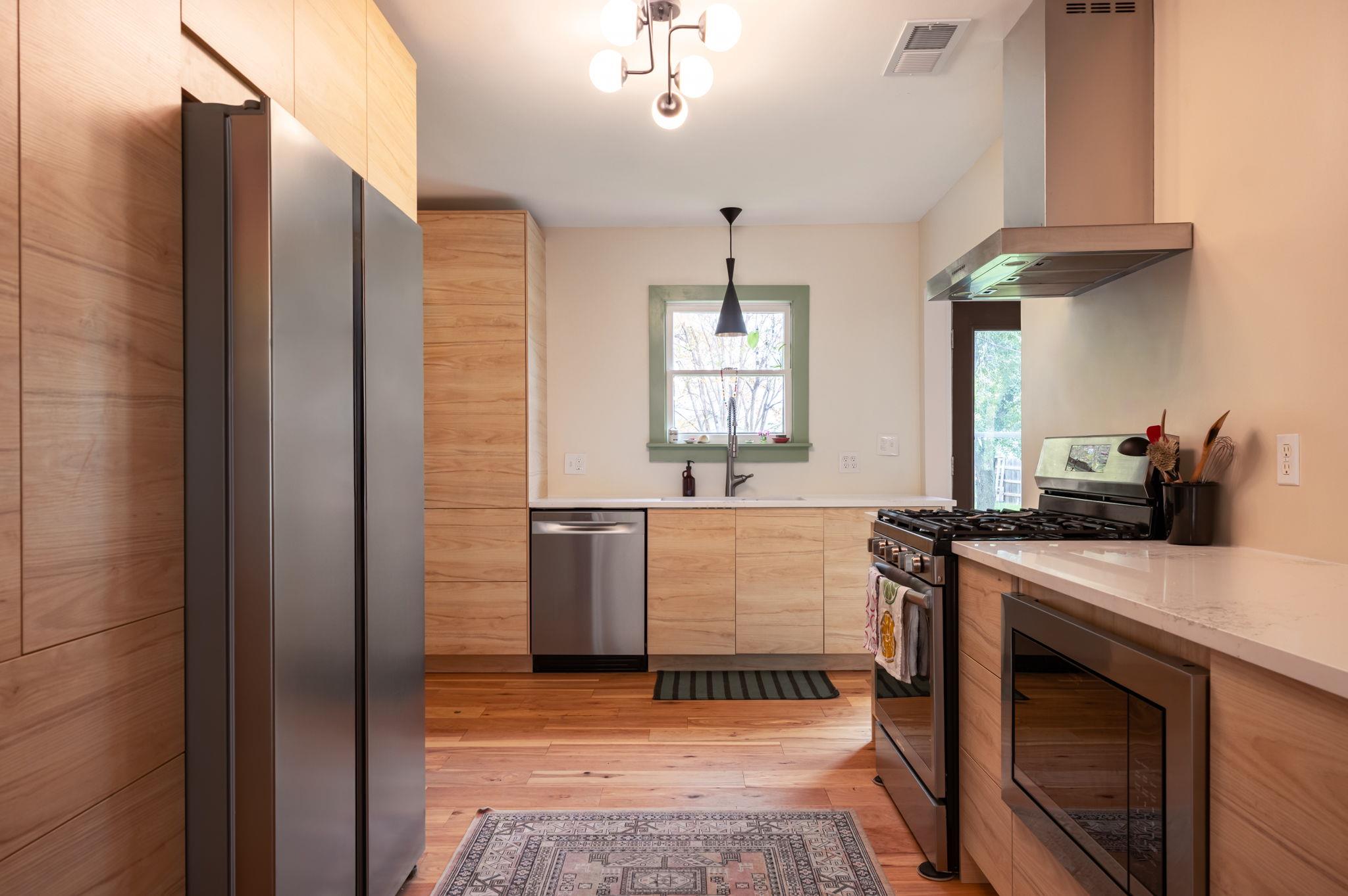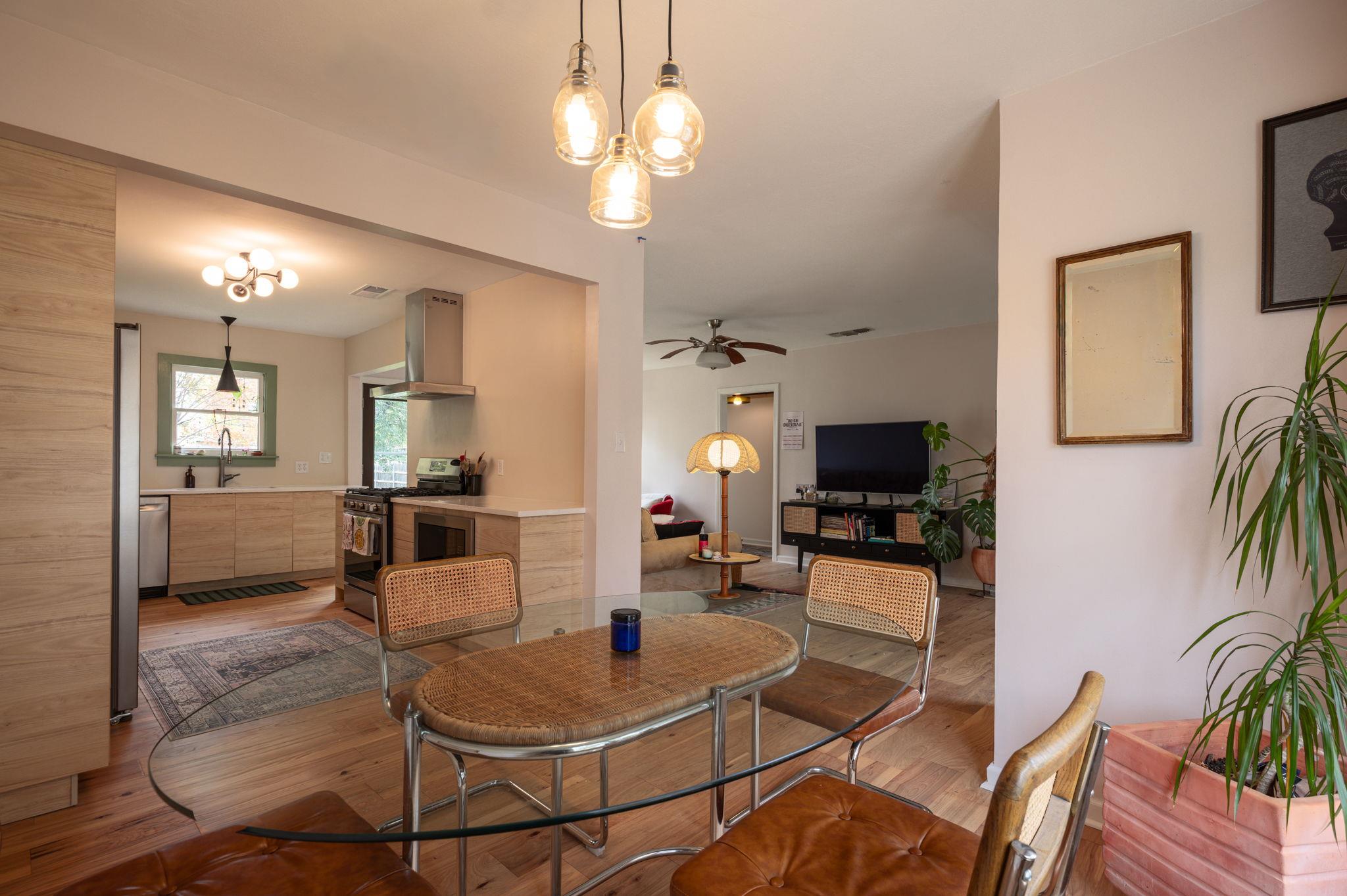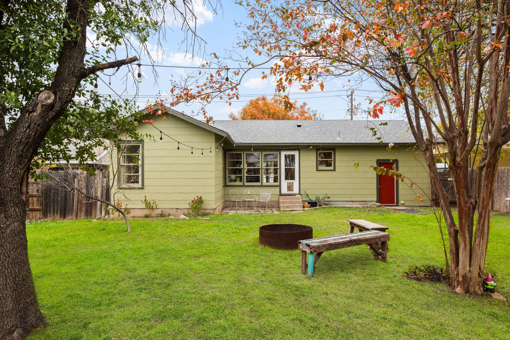 This darling mid-century bungalow has been tastefully updated, while maintaining plenty of its original vintage charm. Enter into the light-filled living room with recently installed hardwood floors. The remodeled kitchen offers plenty of cabinet and pantry space, stainless steel appliances and gorgeous quartz countertops. The dining room is adjacent to the kitchen and living room. Two generously sized bedrooms are divided by a full bath that features a large walk-in shower, beautiful tile and stylish lighting. Enjoy the spacious, fully-fenced backyard, with a patio for enjoying your morning coffee or a fire pit for relaxing with friends in the evenings. Laundry is situated in the attached garage, which also provides additional space for storage or parking for a small car. Two blocks from Chinatown Center for some of the best banh mi, pho and noodles in Austin. 10 minutes to the Domain, Q2 Stadium, or Walnut Creek Metro Park. Or hop on I35 in 2 minutes and get anywhere in the metro area quickly! Lawn care included in rent price. One dog allowed with additional pet deposit. Available 3/1/26.