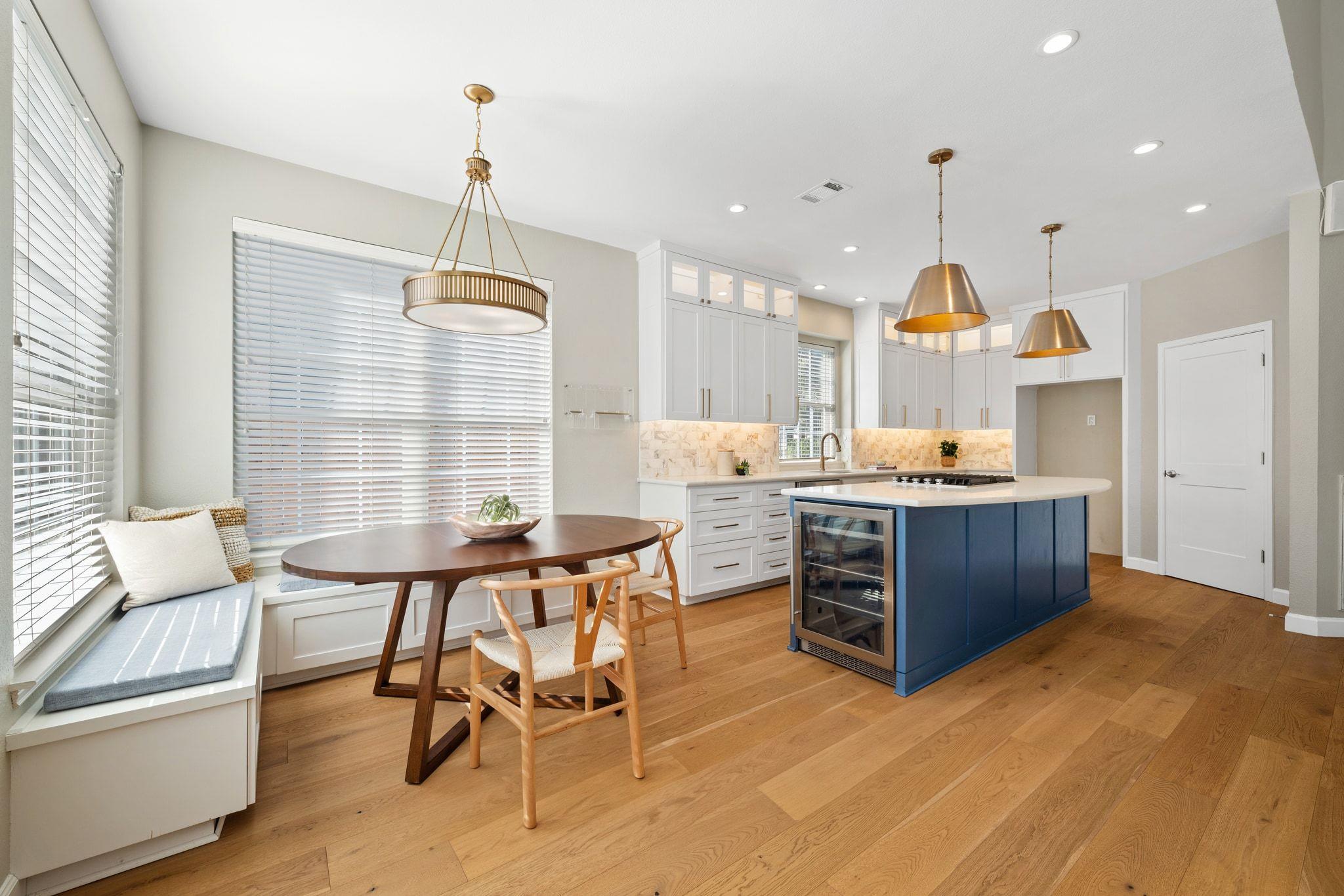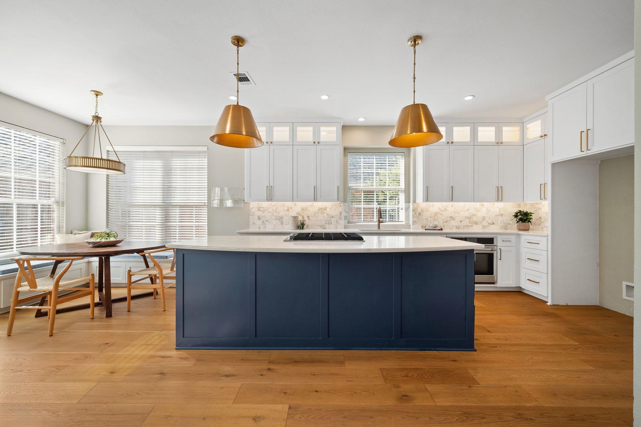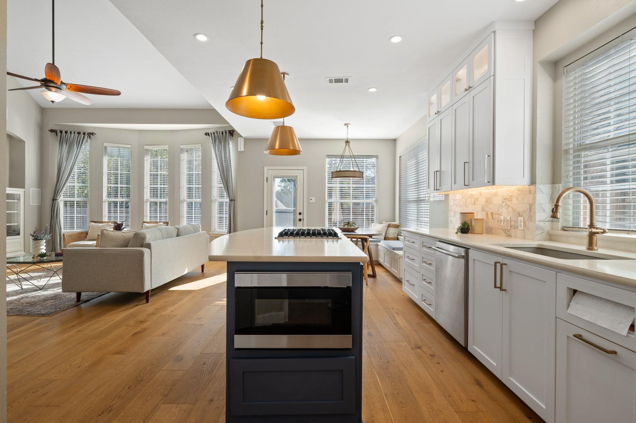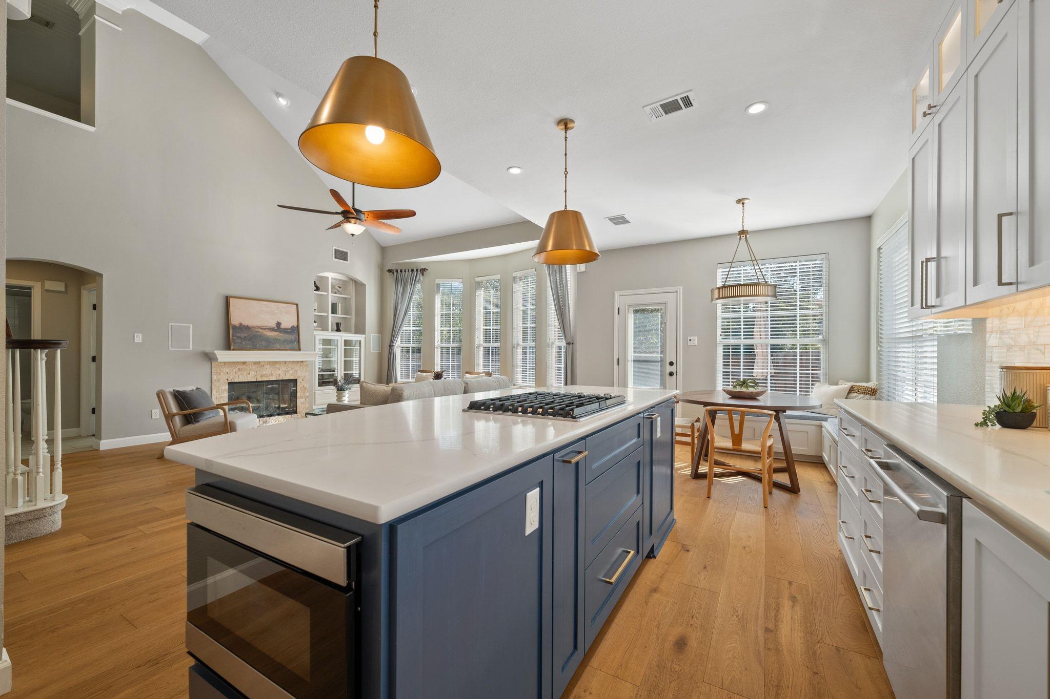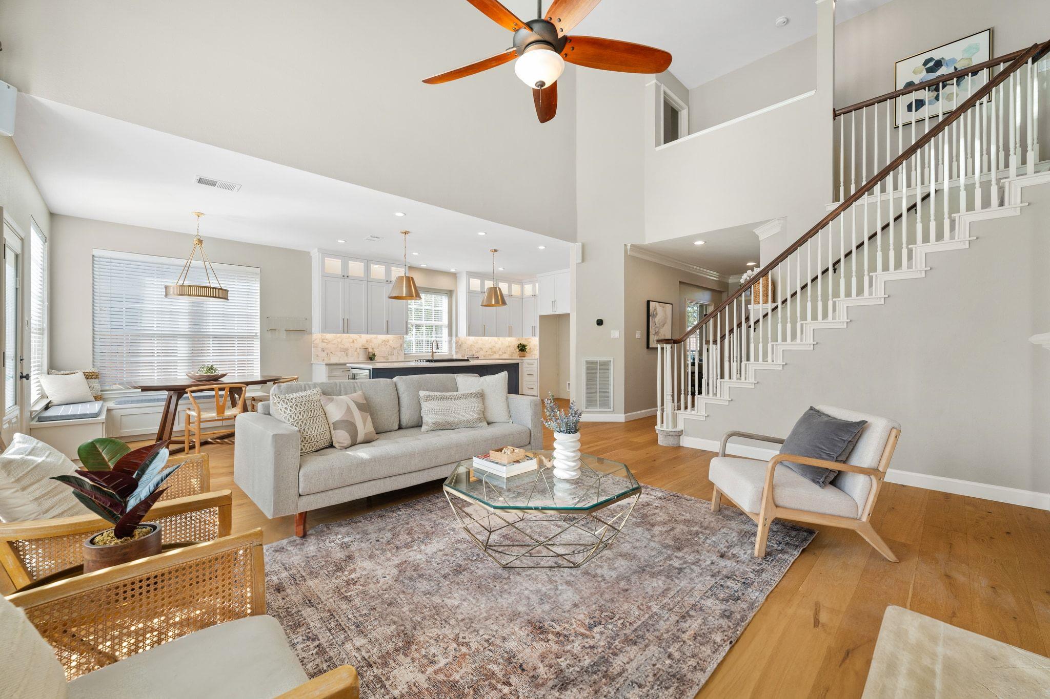 This beautiful 4-bedroom, 2,350 SF home in highly sought-after River Place is move-in ready and situated on the corner of a quiet cul-de-sac. The stunning remodeled kitchen is the heart of the home with designer tile backsplash, quartz countertops, top-lit cabinets, stainless steel appliances, and large island. The kitchen flows seamlessly into the large living room with two stories of windows, a gas fireplace, and easy access to the spacious, flat backyard for easy entertaining. The main level has wide plank wood floors, a dedicated office looking out to the front, a guest bedroom, full bath, and laundry room.