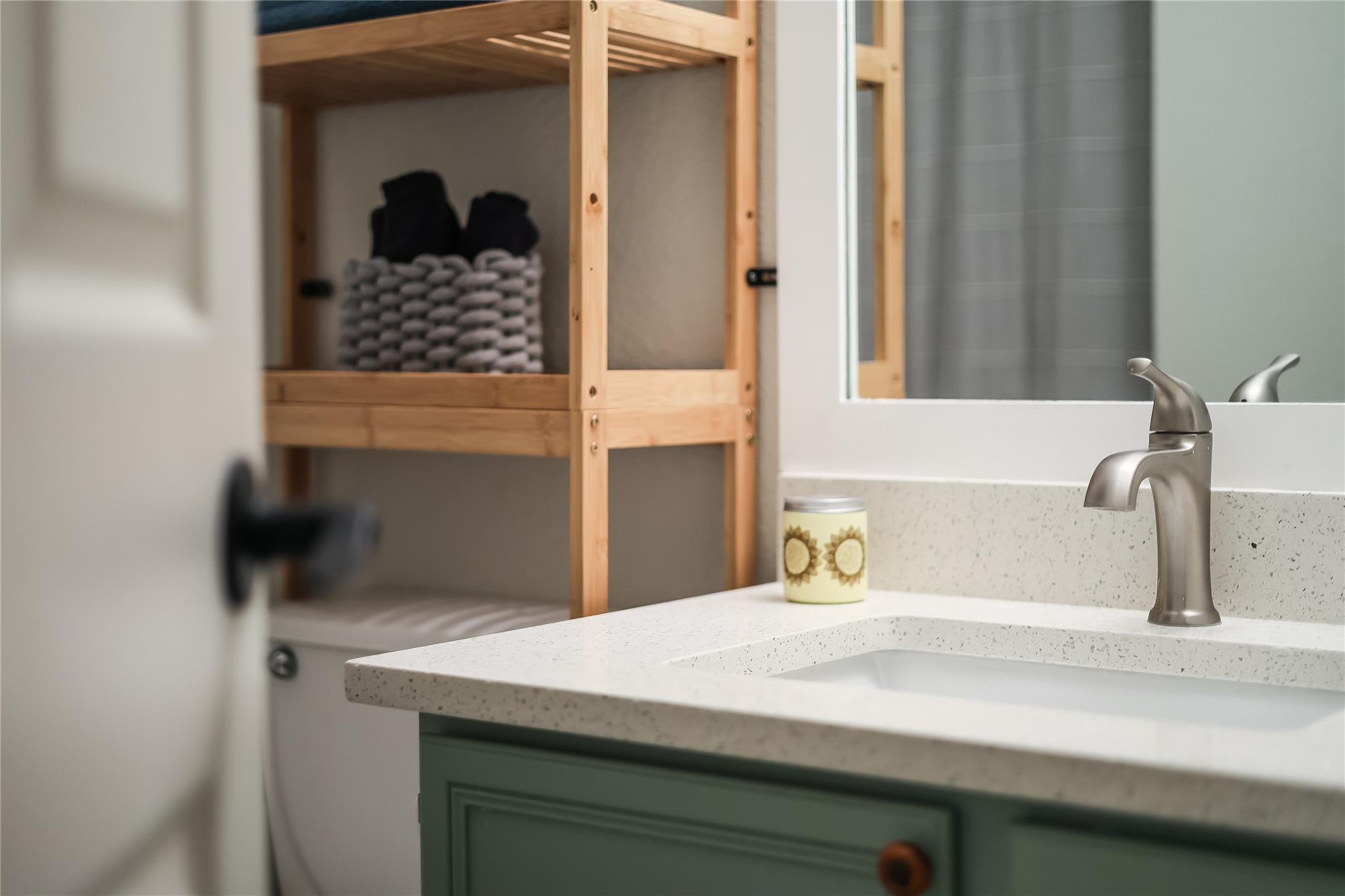 HOME IS ALSO AVAILABLE FOR SHORT/MID TERM FURNISHED RENTALS AS WELL. CONTACT listing agent for more information. This beautifully renovated single story home has been completely renovated w/a new HVAC system. This home features quartz countertops in the kitchen & baths, custom painted modern cabinetry, new plumbing and light fixtures through out and NO CARPET! As you enter, you'll be greeted by the fresh, modern interiors of custom wallpaper accents and fun custom painted accent walls. Luxury vinyl & porcelain tile flooring adds a touch of sophistication with a hip modern vibe not sacrificing any of it's warmth and charm. Entertain guests effortlessly in the spacious living areas, enhanced by new modern fans, new lighting fixtures, all new hardware AND new sinks and faucets in the kitchen and baths. Outside, the covered patio is perfect for outdoor gatherings and grilling. This lovely home is on a fantastic corner lot w/numerous mature shade trees, a great backyard, along with the modern design in this prime location offers easy access to McKinney Falls State Park, the Tesla showroom, and Jimmy Clay Golf Course, promising endless opportunities for outdoor adventures. With proximity to AIBA, Radio Coffee East, Meanwhile Brewery, and just a short 10 minute drive to Downtown.