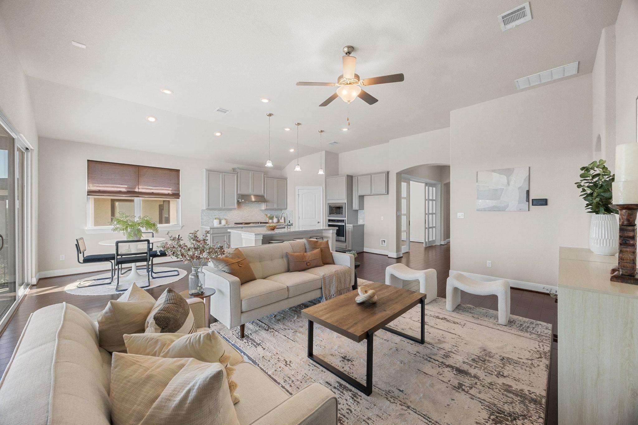 Light, bright, and beautifully maintained, this single-story home in the heart of Bella Colinas offers both comfort and style. The open-concept floor plan flows seamlessly from the spacious living area to an extended covered patio with double sliding glass doors and a stunning view, creating the perfect setting for entertaining or relaxing outdoors. The kitchen is a chef's dream, featuring a large center island, abundant counter space, and a 36-inch gas burner range--perfect for gatherings and everyday living. The home features four bedrooms and three full bathrooms, including a generously sized guest suite that could easily serve as a second primary.