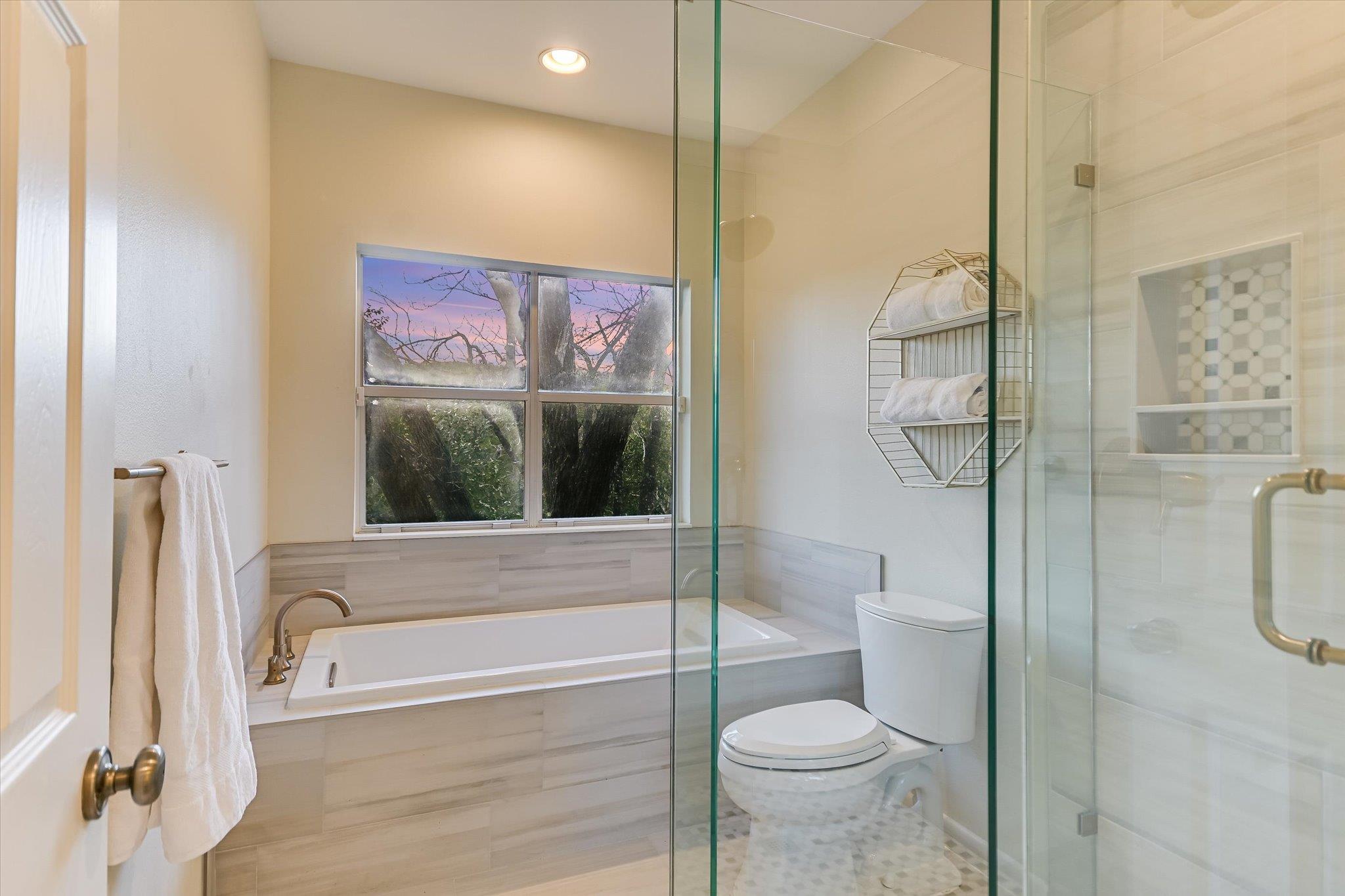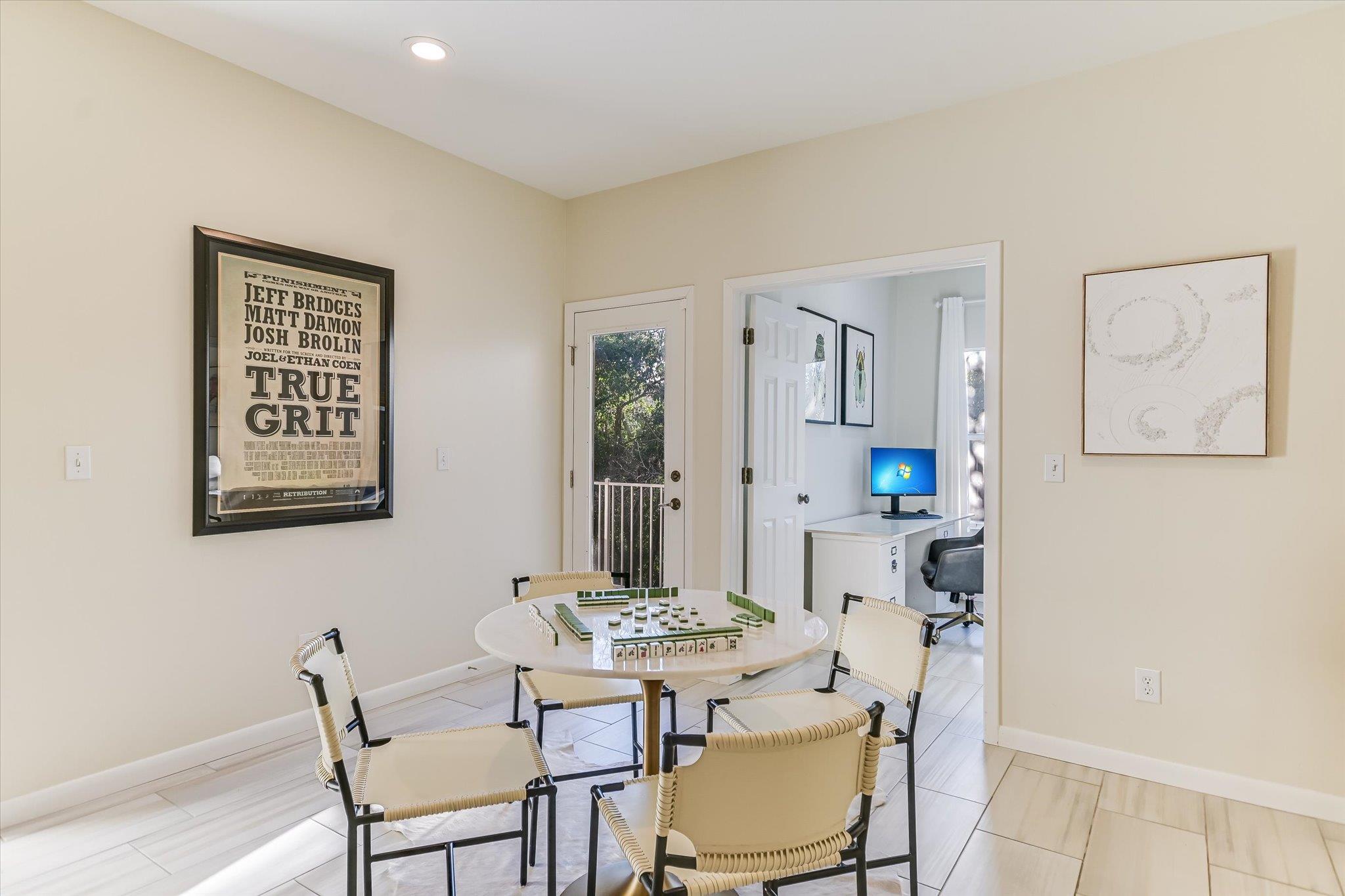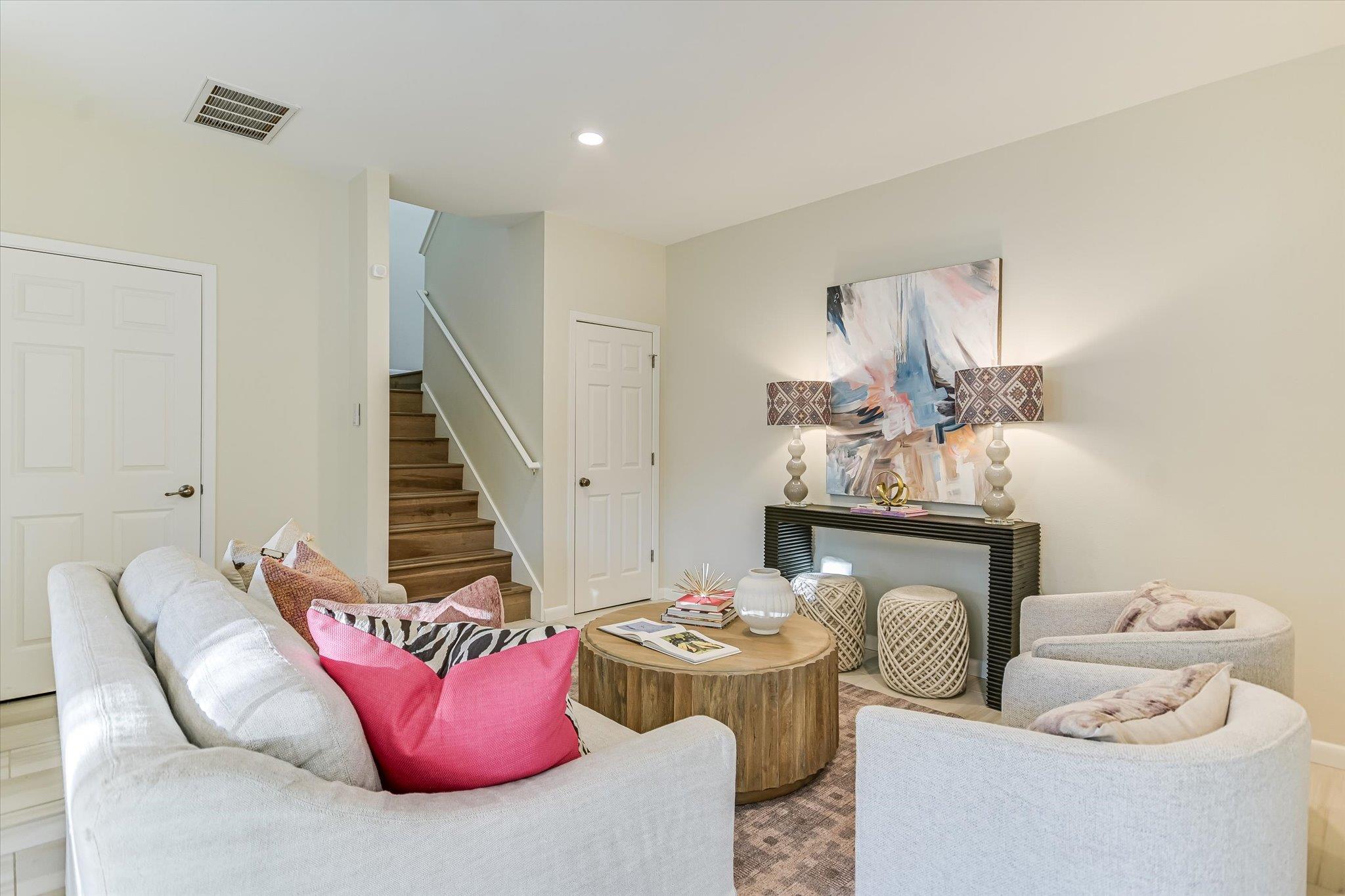 The home offers gorgeous views of the Nature Preserve from windows and both of its spacious balconies. Each floor of the home offers its own patio, providing private outdoor spaces to enjoy the fresh air and beautiful surroundings. Easy access to the grass space and grounds makes walking the dog easy. Just steps away from the front door is a pool maintained by the HOA, where you can effortlessly cool off from the Texas heat and entertain loved ones, also surrounded by nature.
