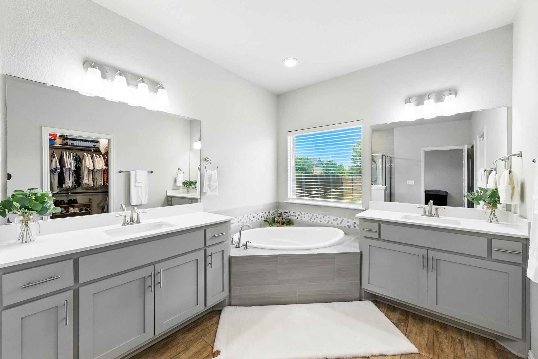 Other Interior Features: Breakfast Bar, Ceiling Fan(s), High Ceilings, Quartz Counters, Double Vanity, Electric Dryer Hookup, Entrance Foyer, French Doors, Kitchen Island, No Interior Steps, Open Floorplan, Primary Bedroom on Main, Recessed Lighting, Soaking Tub, Walk-In Closet(s), Washer Hookup