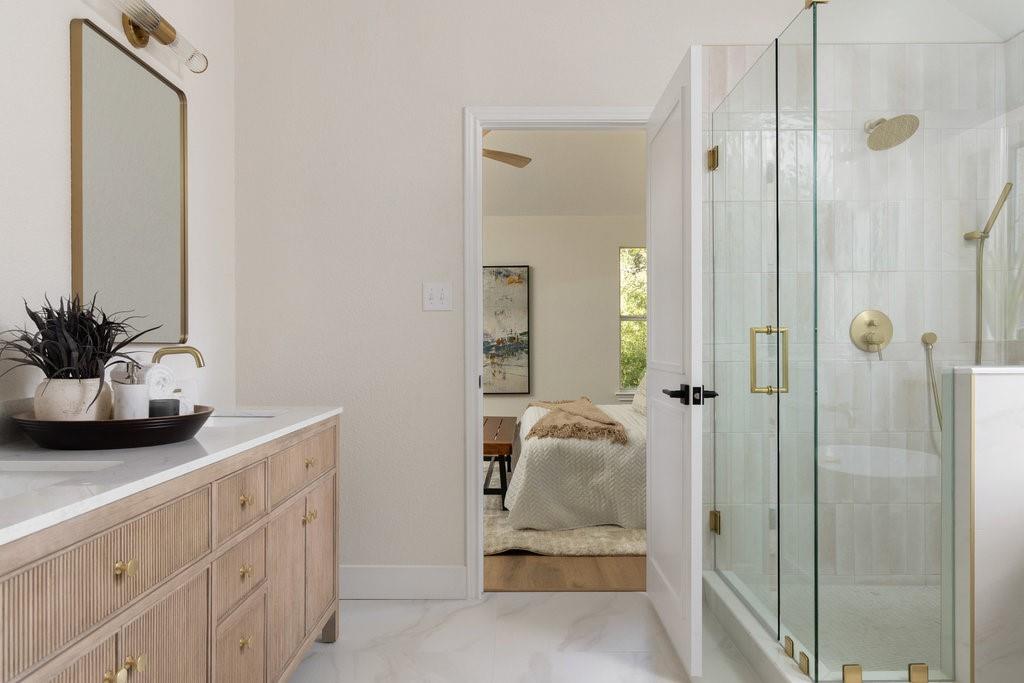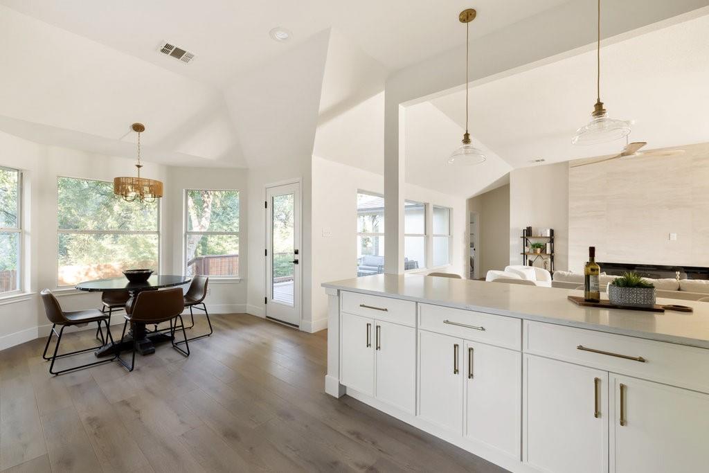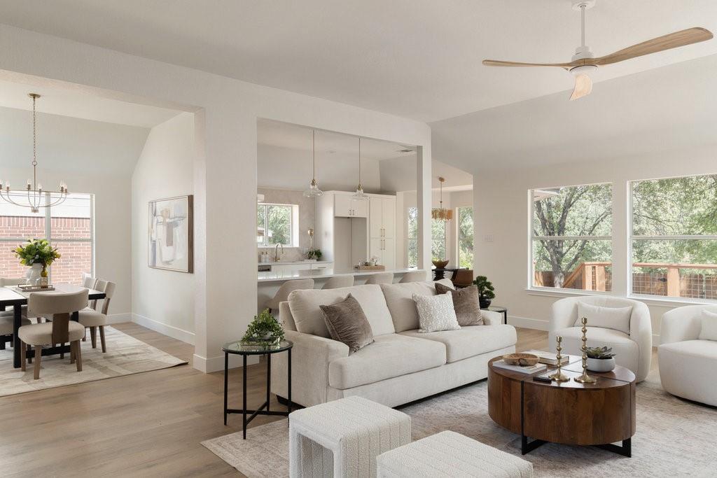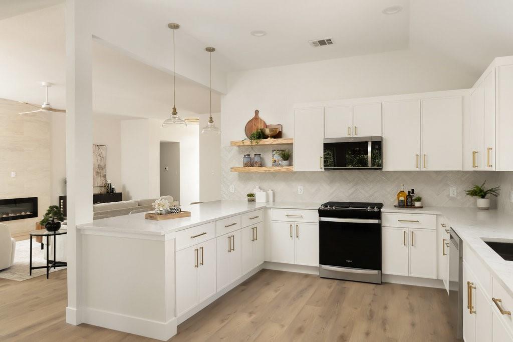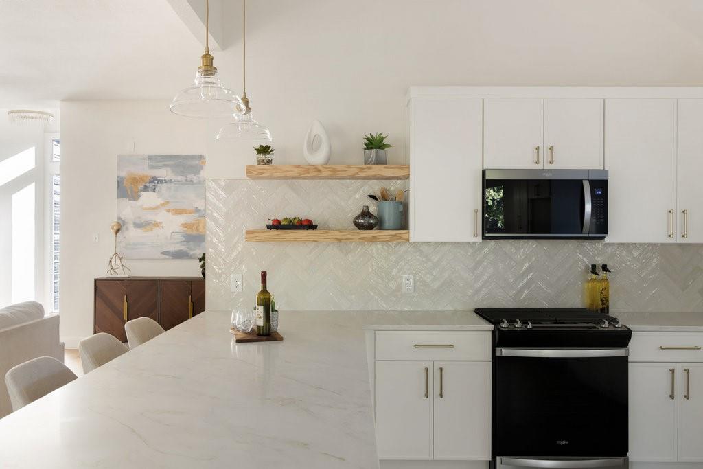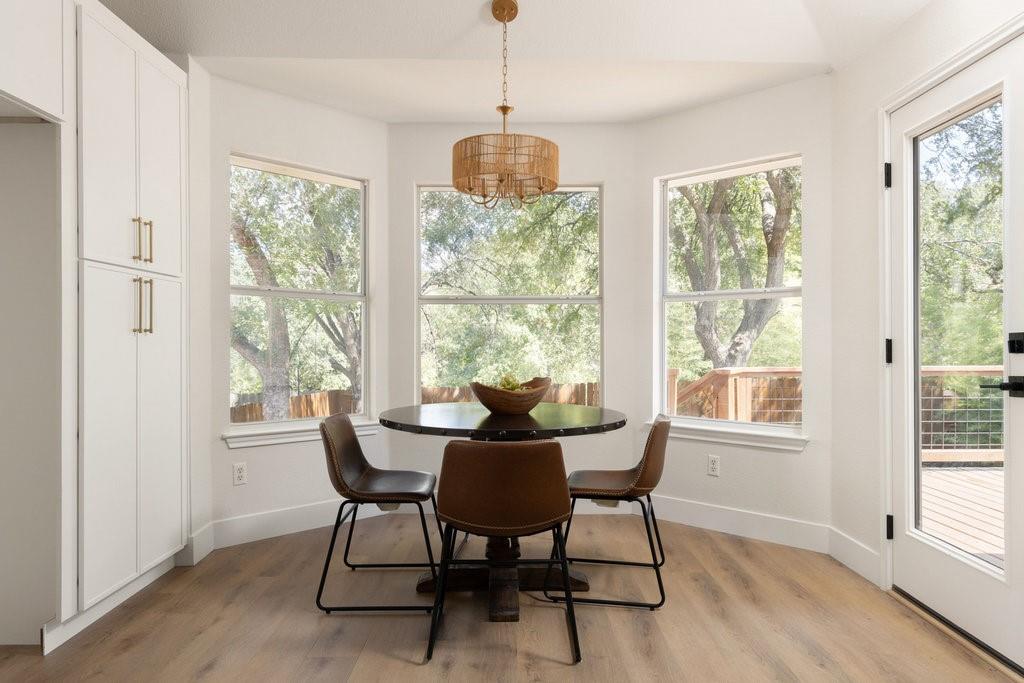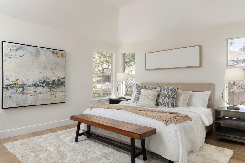 Offer deadline, Monday, November 10th at 7pm. Welcome to your dream home in the highly sought-after Village at Western Oaks, ideally positioned on the greenbelt and just steps from the trailhead. This fully updated residence, flooded with natural light, offers an open floor plan with four spacious bedrooms, two full baths, and a versatile flex space perfectly suited for a home office, dining room, or playroom. Each bedroom features its own walk-in closet, while the centrally located laundry room provides built-in cabinetry and space for an additional refrigerator. The gourmet kitchen is a true centerpiece, showcasing new slim shaker cabinetry, roll-out pantry drawers, quartz countertops, and a brand-new Whirlpool 5-burner gas range with convection and air-fry settings. Flowing effortlessly from the kitchen, the expansive living room is centered around a stunning 72" Dimplex electric fireplace--a statement of warmth and sophistication year round. The primary suite offers a luxurious retreat, complete with a spa-inspired bath featuring a free-standing tub, oversized walk-in shower, with seamless glass and a dual-sink vanity. The secondary bathroom has been fully remodeled as well, with a dual-sink vanity and a designer tile tub surround. Outdoors, relax on the updated deck while enjoying tranquil greenbelt views, complemented by fresh landscaping and the convenience of expansive under-deck storage with easy access. Additional upgrades in 2025 include a 94" front door, backdoor, 6" baseboards, recessed lighting, water heater, HVAC system, exterior hose bibs, main shut-off valve and the roof was replaced in 2018. House pre-inspected as well. All of this is paired with an unbeatable location--just minutes from Mopac, Mills Elementary, Dick Nichols Park, Violet Crown Trail, H-E-B, Alamo Drafthouse, and a wide array of shopping and dining.