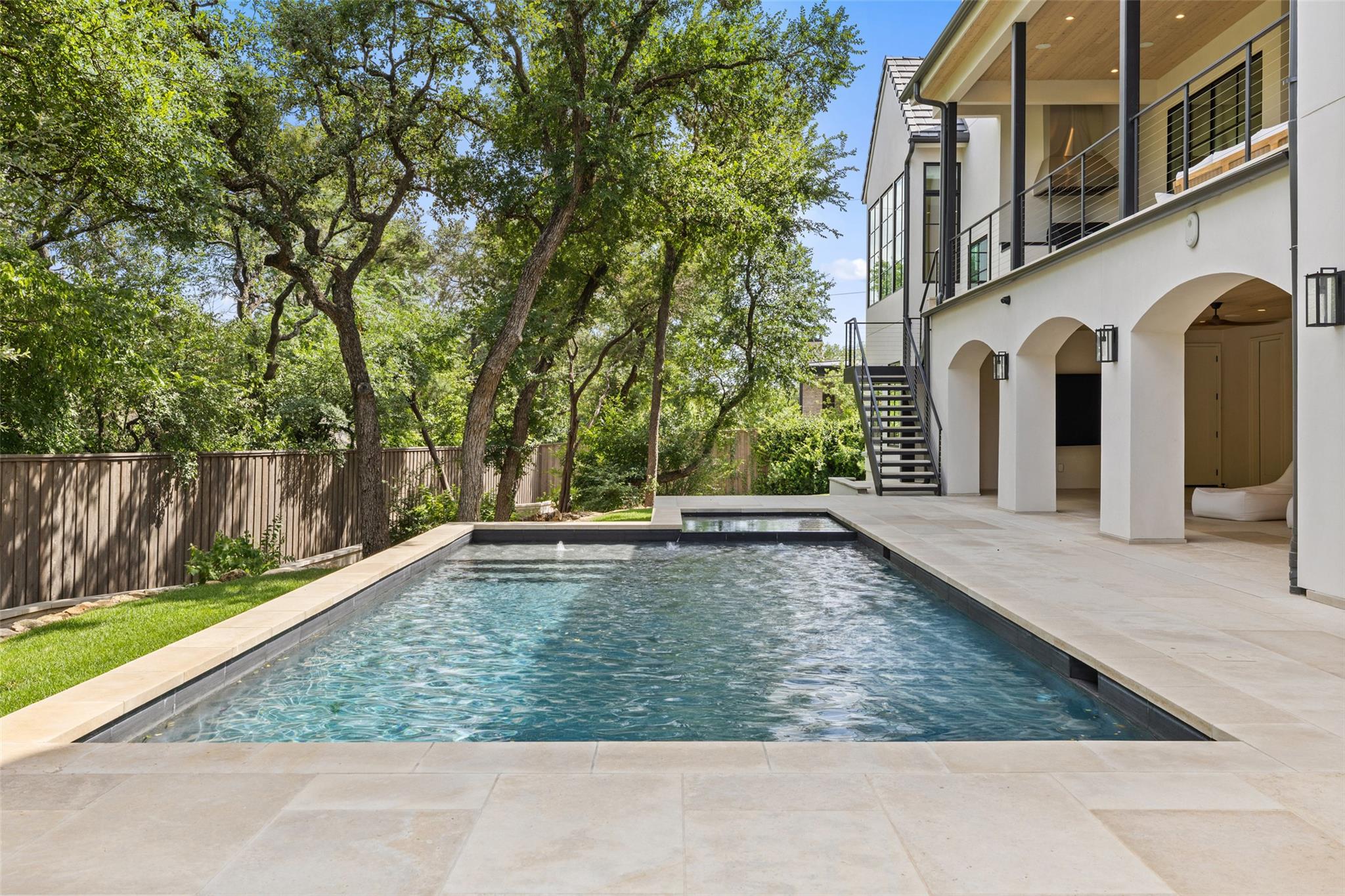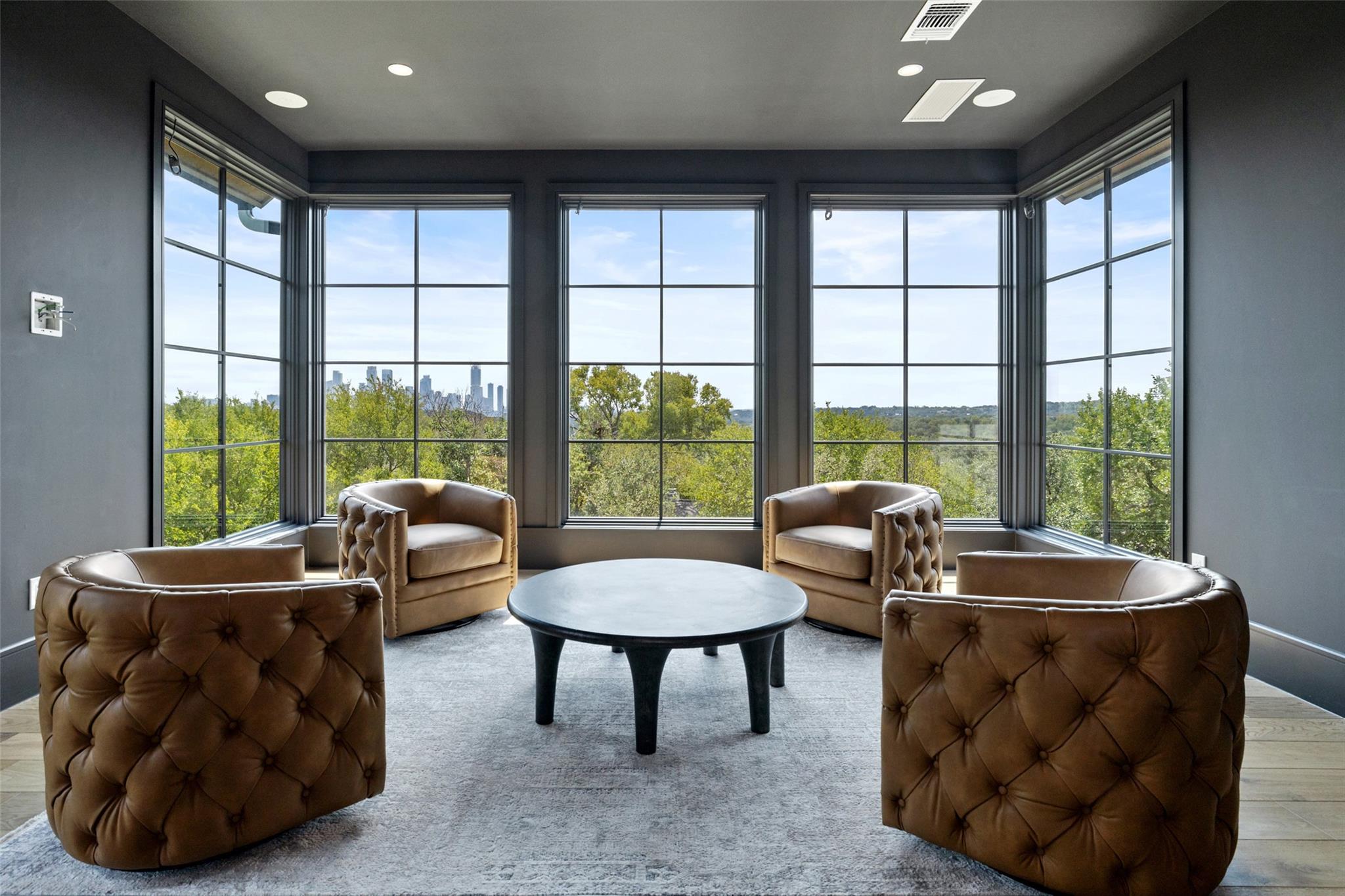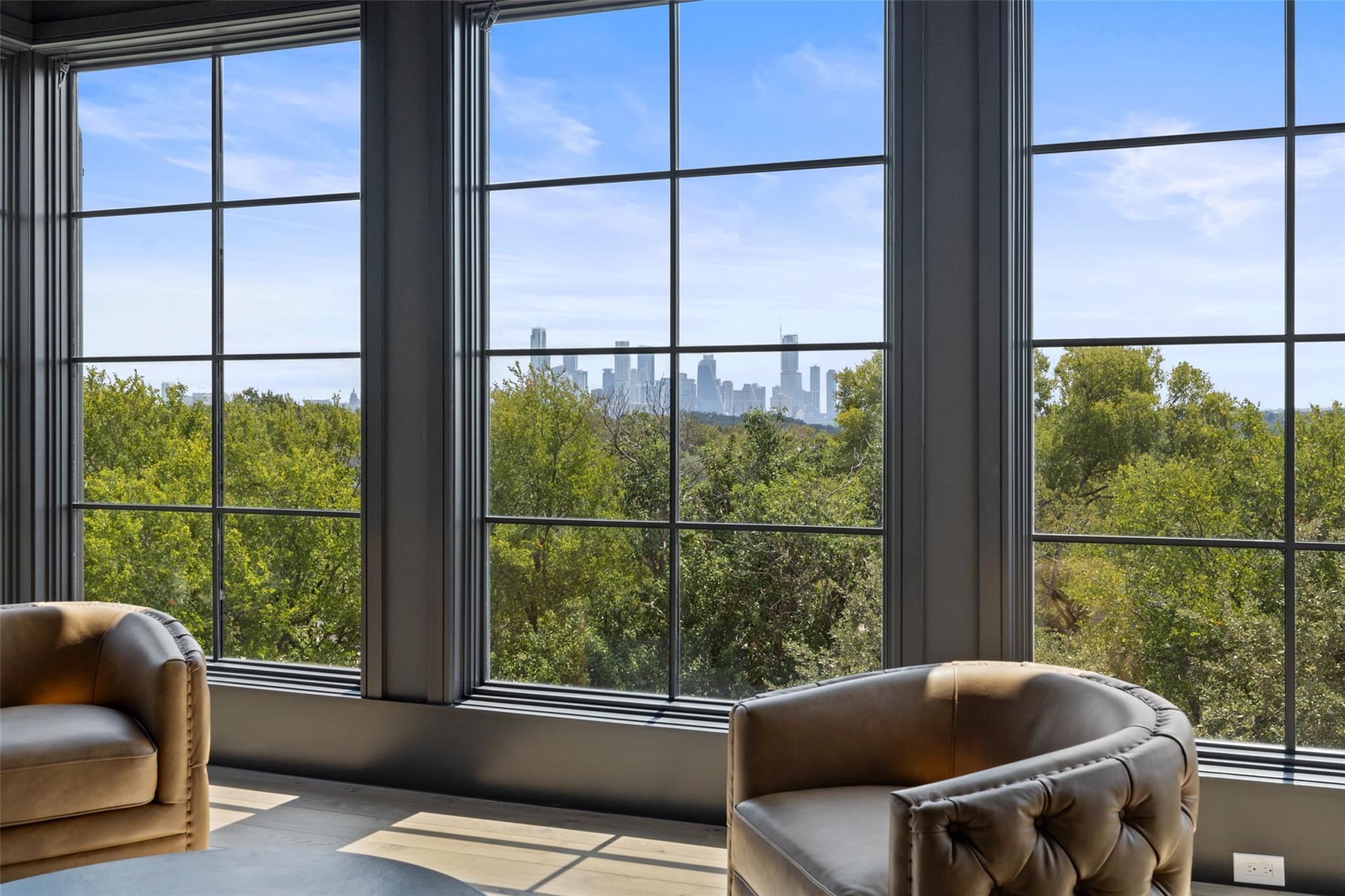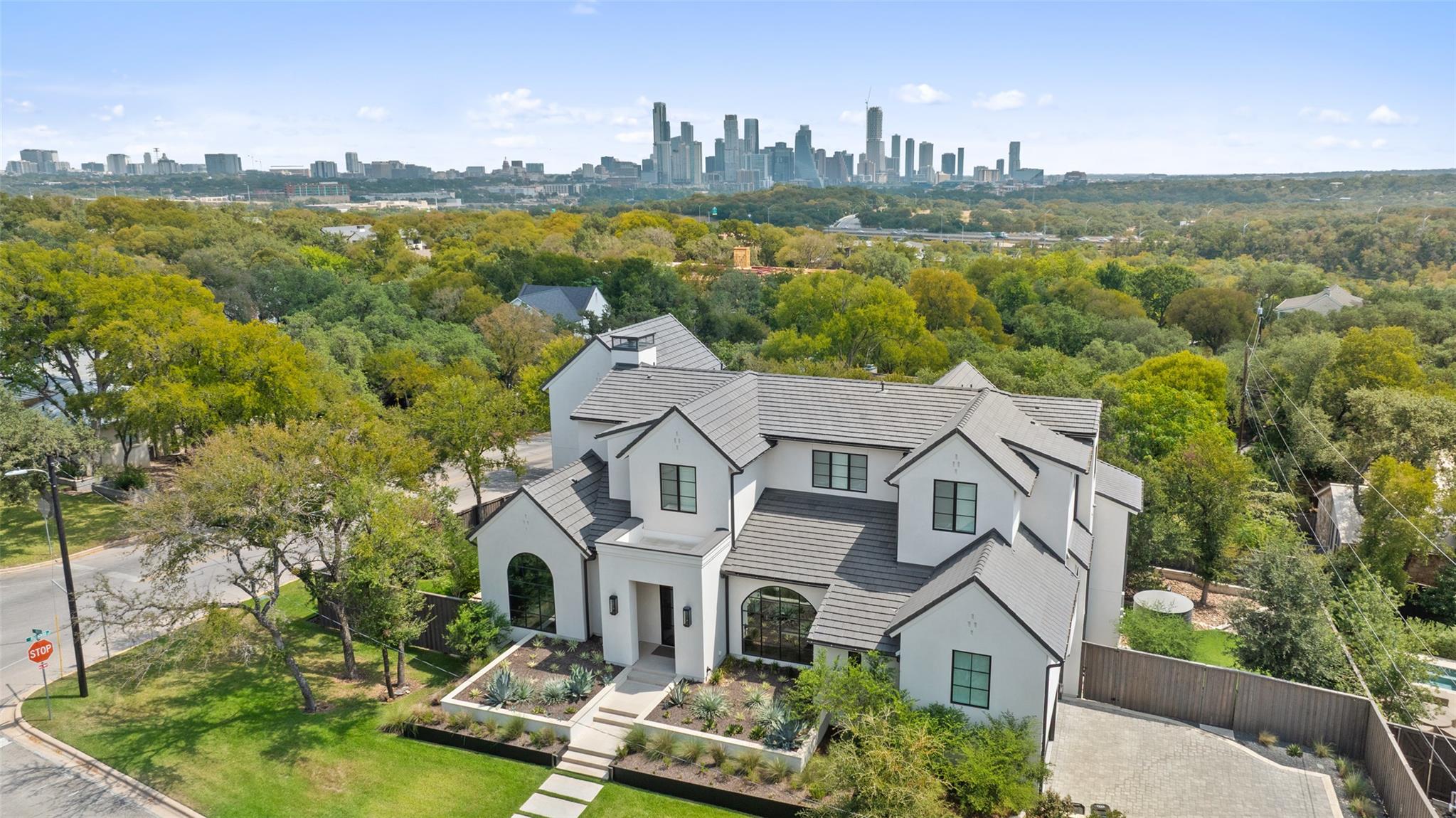 This exceptional home features a thoughtfully designed floor plan with expansive living spaces, wide-plank hardwood floors, beamed ceilings, custom cabinetry, and an abundance of natural light throughout. The main level offers an open-concept living and dining area, formal study, spacious primary suite, and a private guest suite. Upstairs includes three large secondary bedrooms, a generous game room, and a stylish lounge with wet bar--perfect for entertaining. The lower level provides additional flexibility with an oversized bedroom suite and a versatile bonus room ideal for a gym, media room, or casual living. Enjoy two levels of covered outdoor living, a sparkling pool, and sweeping views of the city skyline. Prime location just minutes from downtown and Zilker Park. www.601rileyrd.com