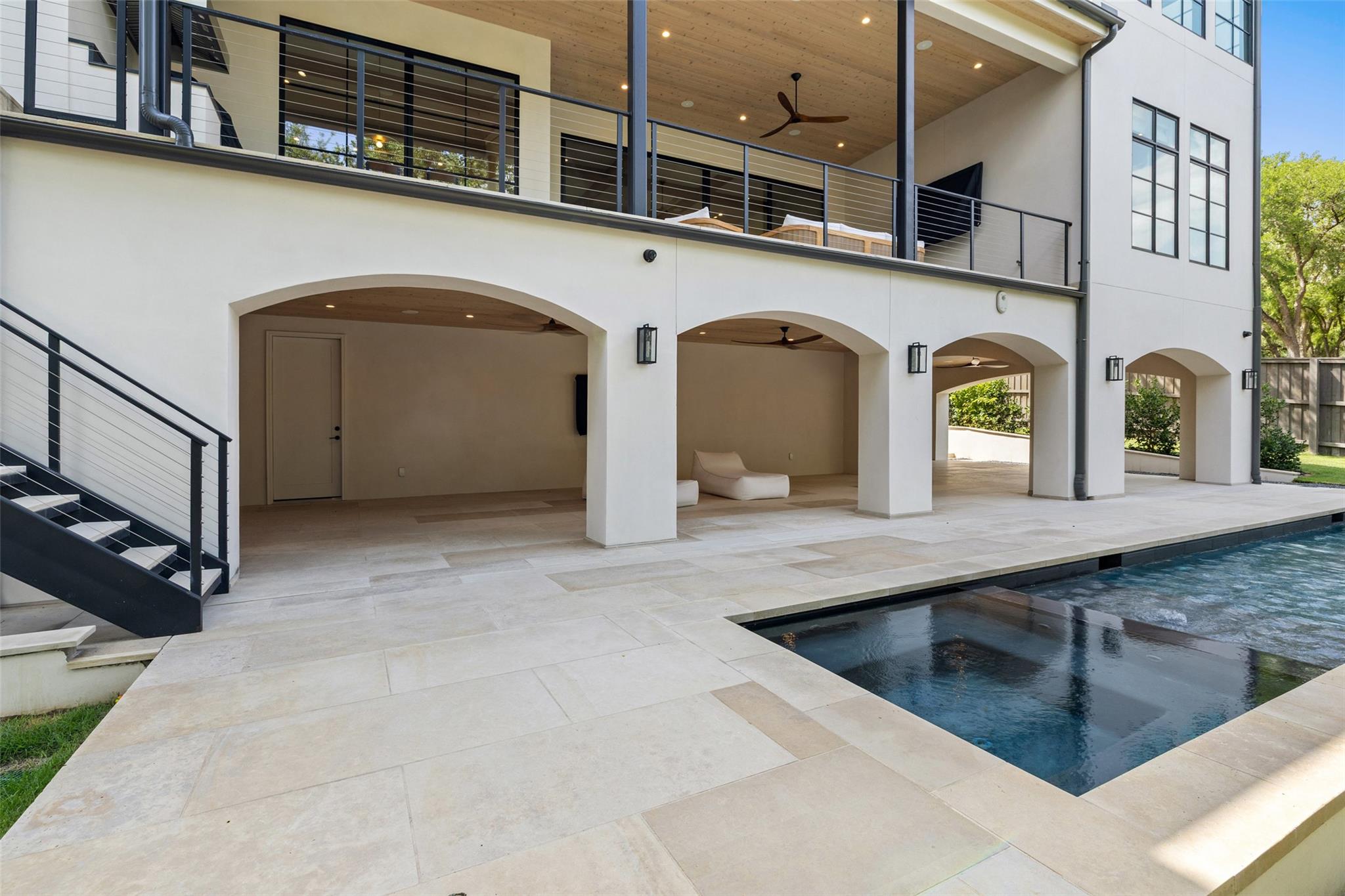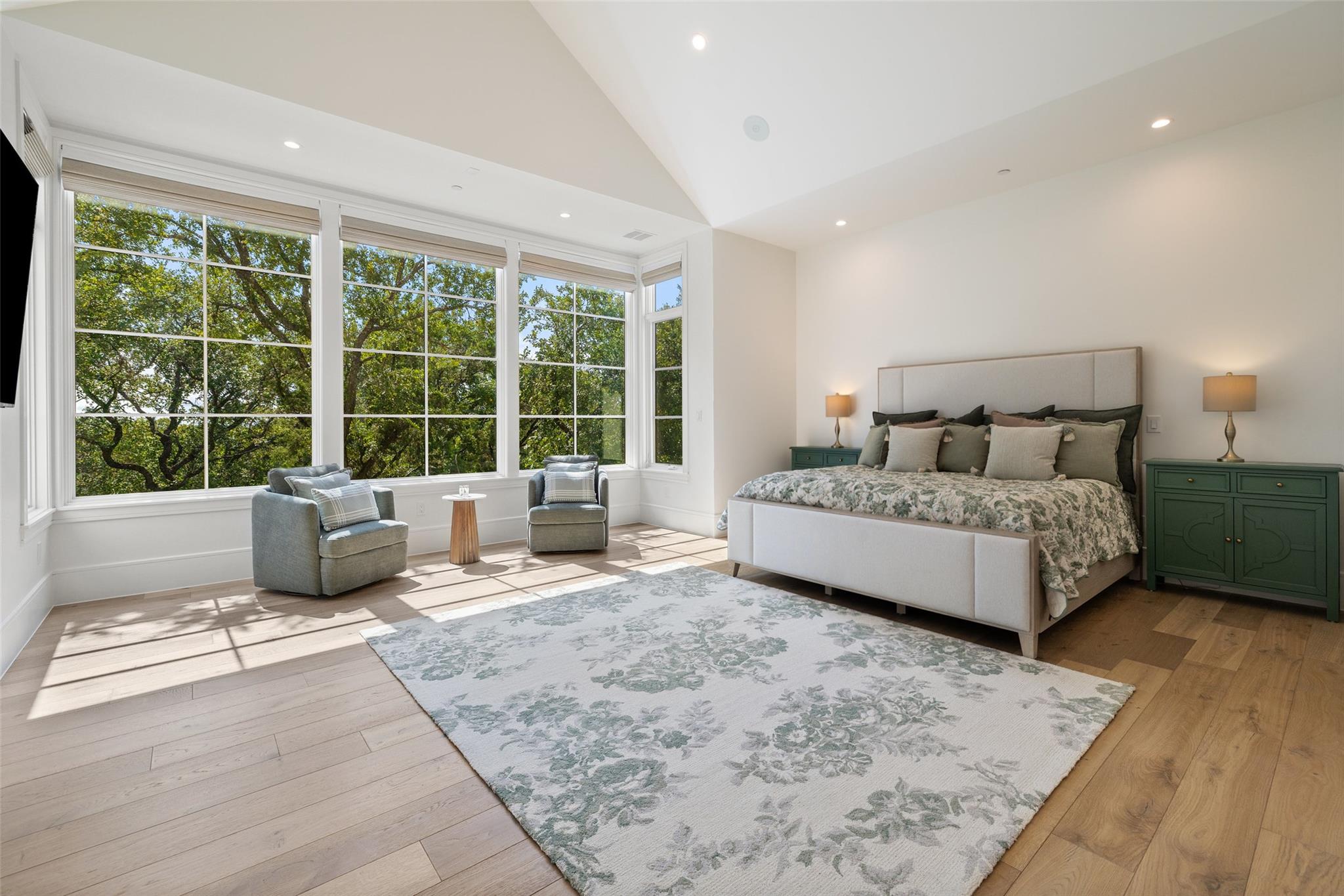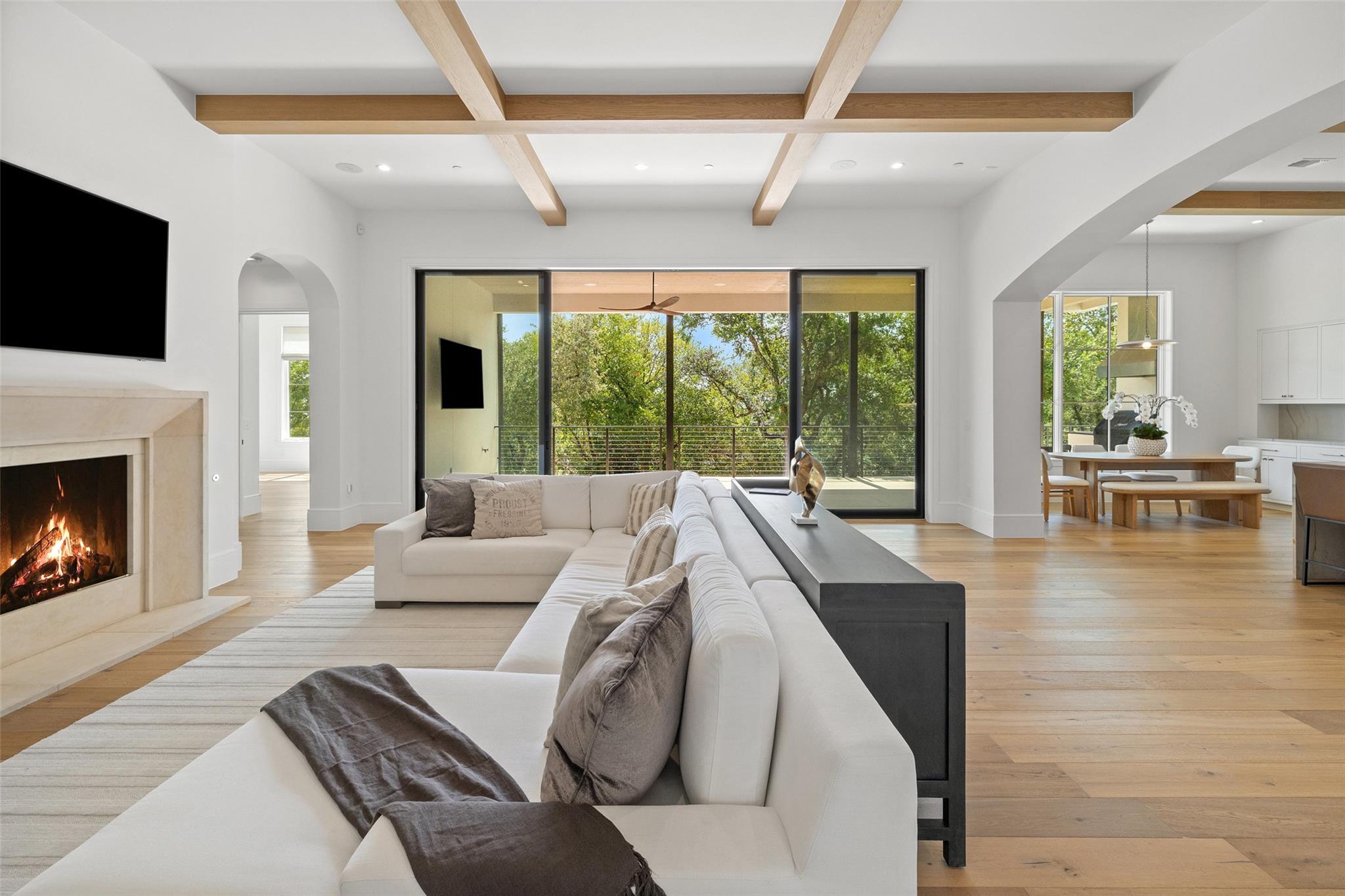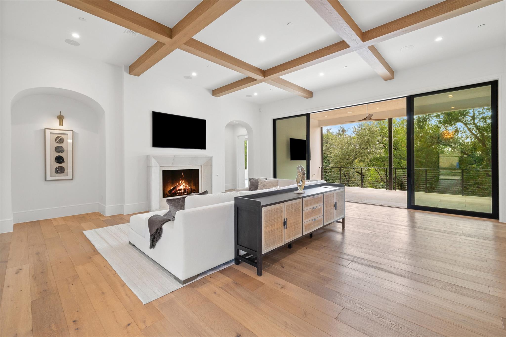 This exceptional home features a thoughtfully designed floor plan with expansive living spaces, wide-plank hardwood floors, beamed ceilings, custom cabinetry, and an abundance of natural light throughout. The main level offers an open-concept living and dining area, formal study, spacious primary suite, and a private guest suite. Upstairs includes three large secondary bedrooms, a generous game room, and a stylish lounge with wet bar--perfect for entertaining. The lower level provides additional flexibility with an oversized bedroom suite and a versatile bonus room ideal for a gym, media room, or casual living. Enjoy two levels of covered outdoor living, a sparkling pool, and sweeping views of the city skyline. Prime location just minutes from downtown and Zilker Park. www.601rileyrd.com