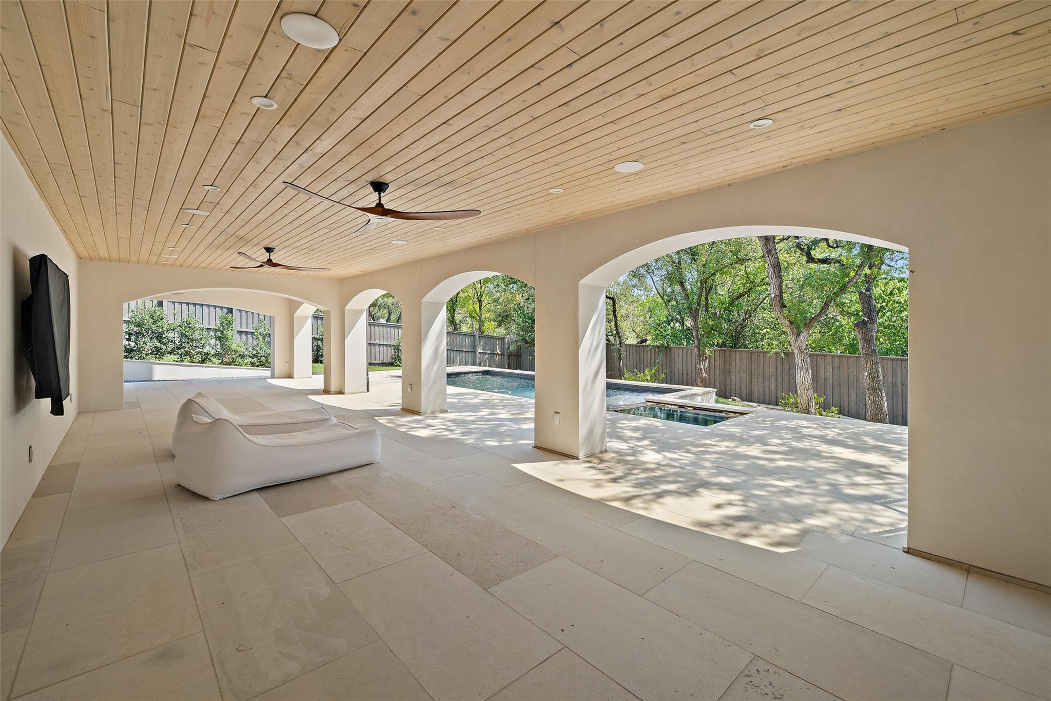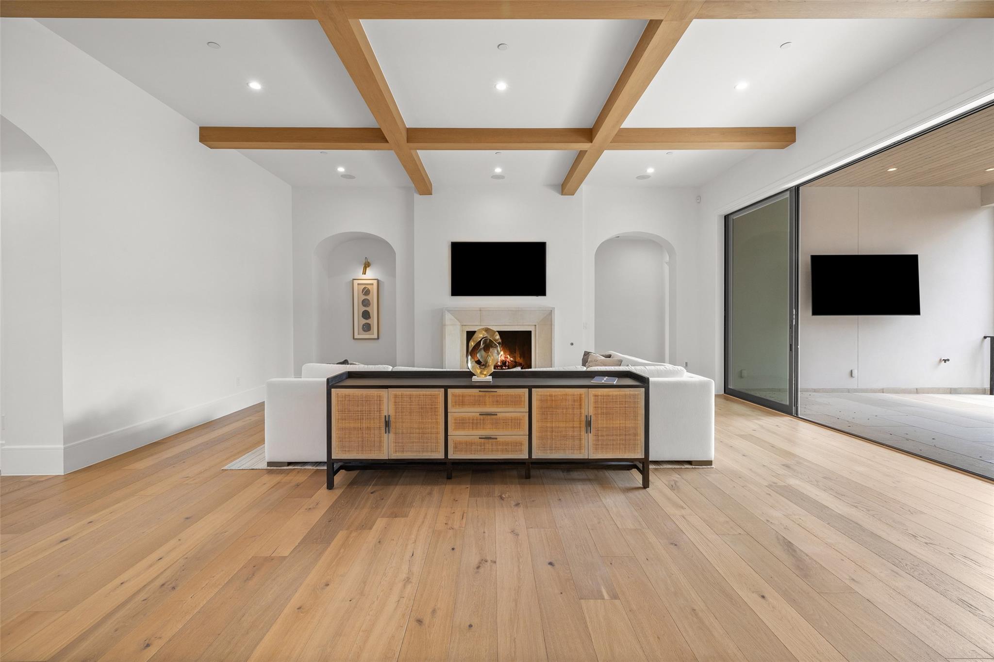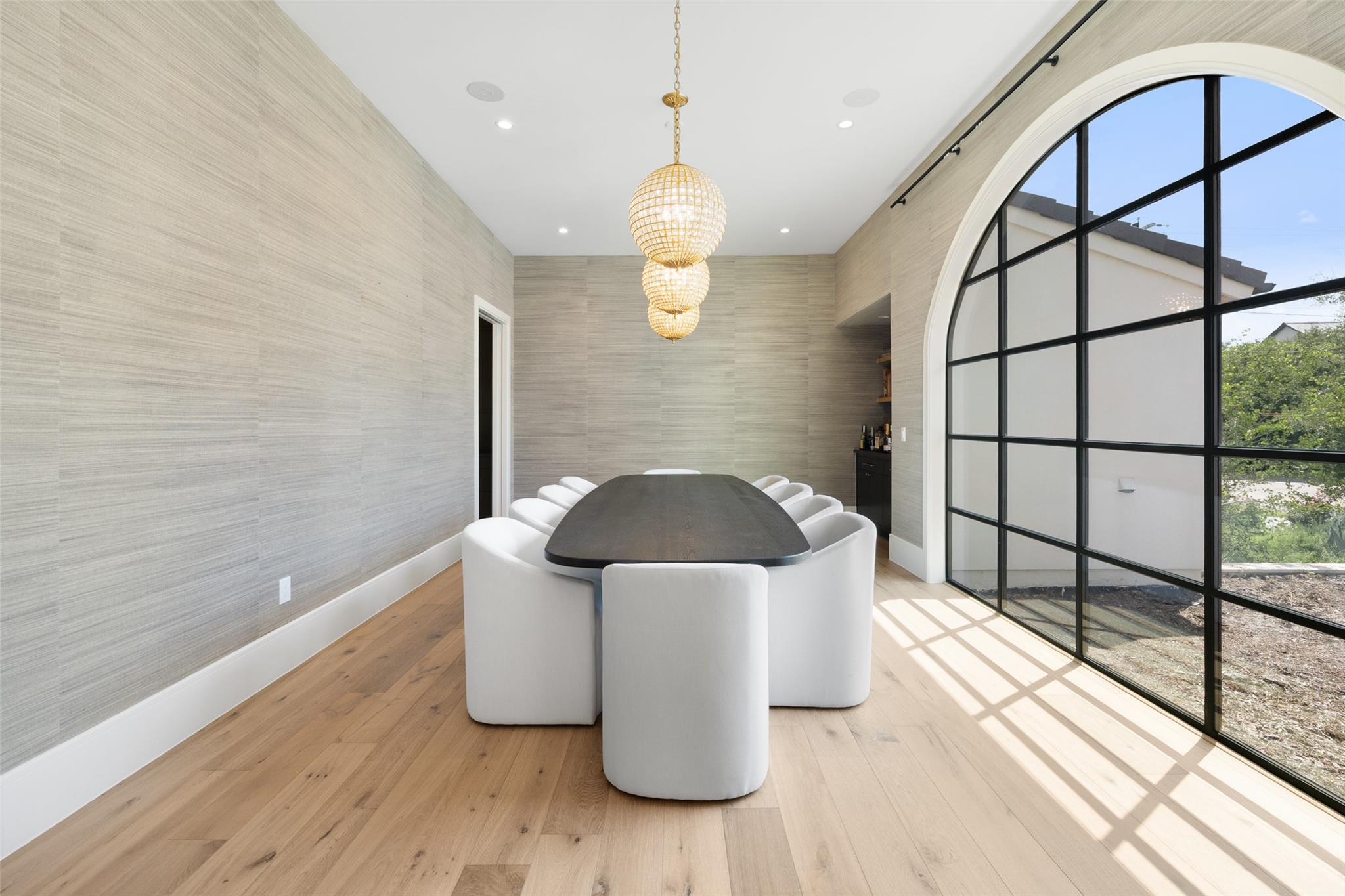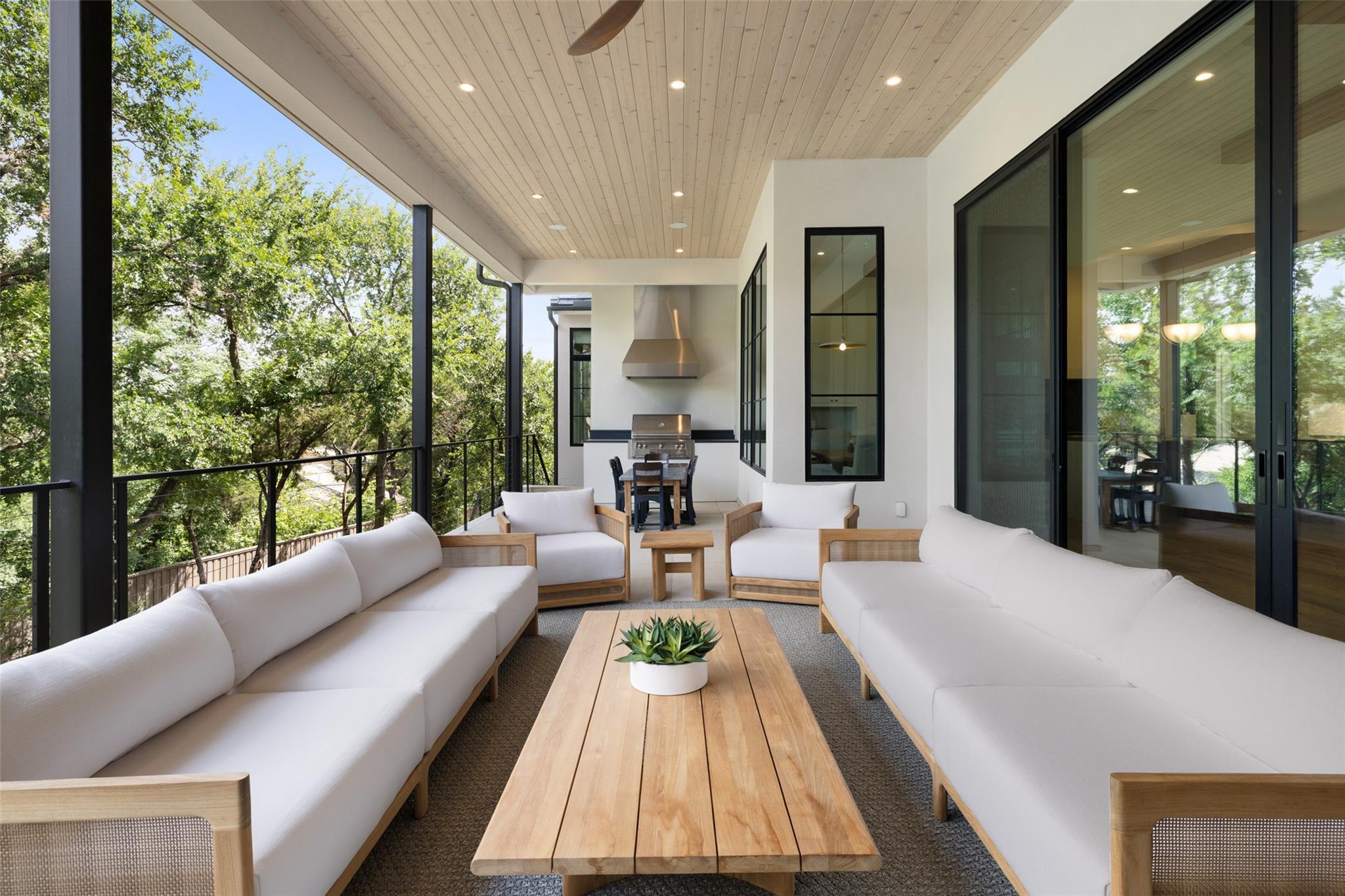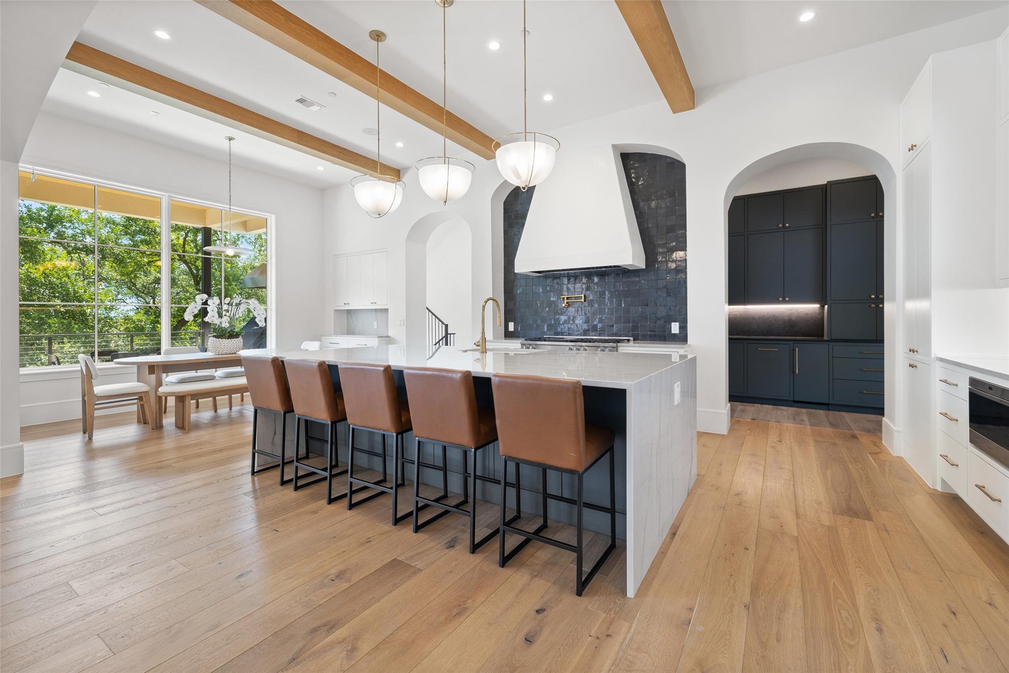 This exceptional home features a thoughtfully designed floor plan with expansive living spaces, wide-plank hardwood floors, beamed ceilings, custom cabinetry, and an abundance of natural light throughout. The main level offers an open-concept living and dining area, formal study, spacious primary suite, and a private guest suite. Upstairs includes three large secondary bedrooms, a generous game room, and a stylish lounge with wet bar--perfect for entertaining. The lower level provides additional flexibility with an oversized bedroom suite and a versatile bonus room ideal for a gym, media room, or casual living. Enjoy two levels of covered outdoor living, a sparkling pool, and sweeping views of the city skyline. Prime location just minutes from downtown and Zilker Park. www.601rileyrd.com