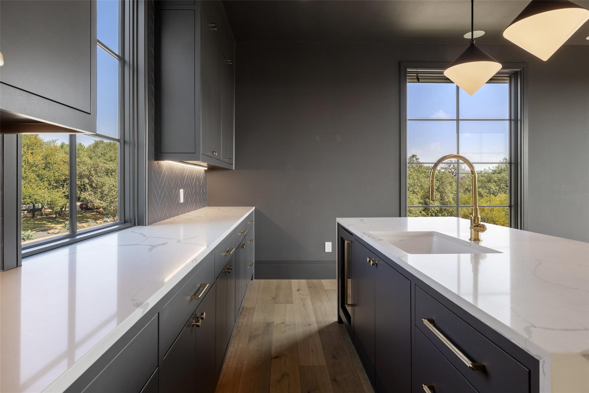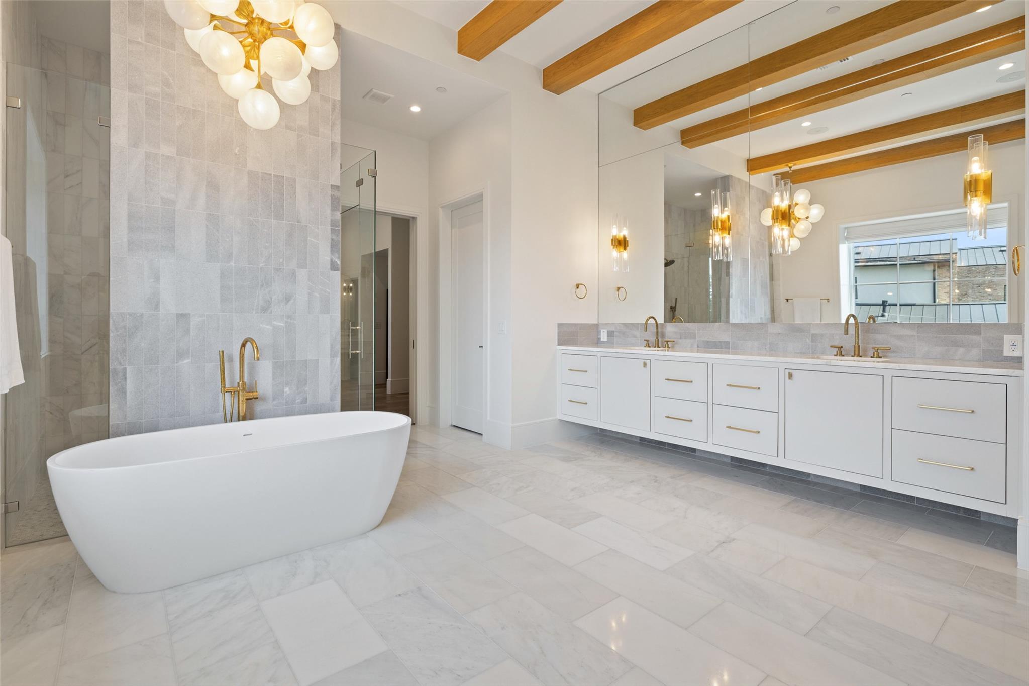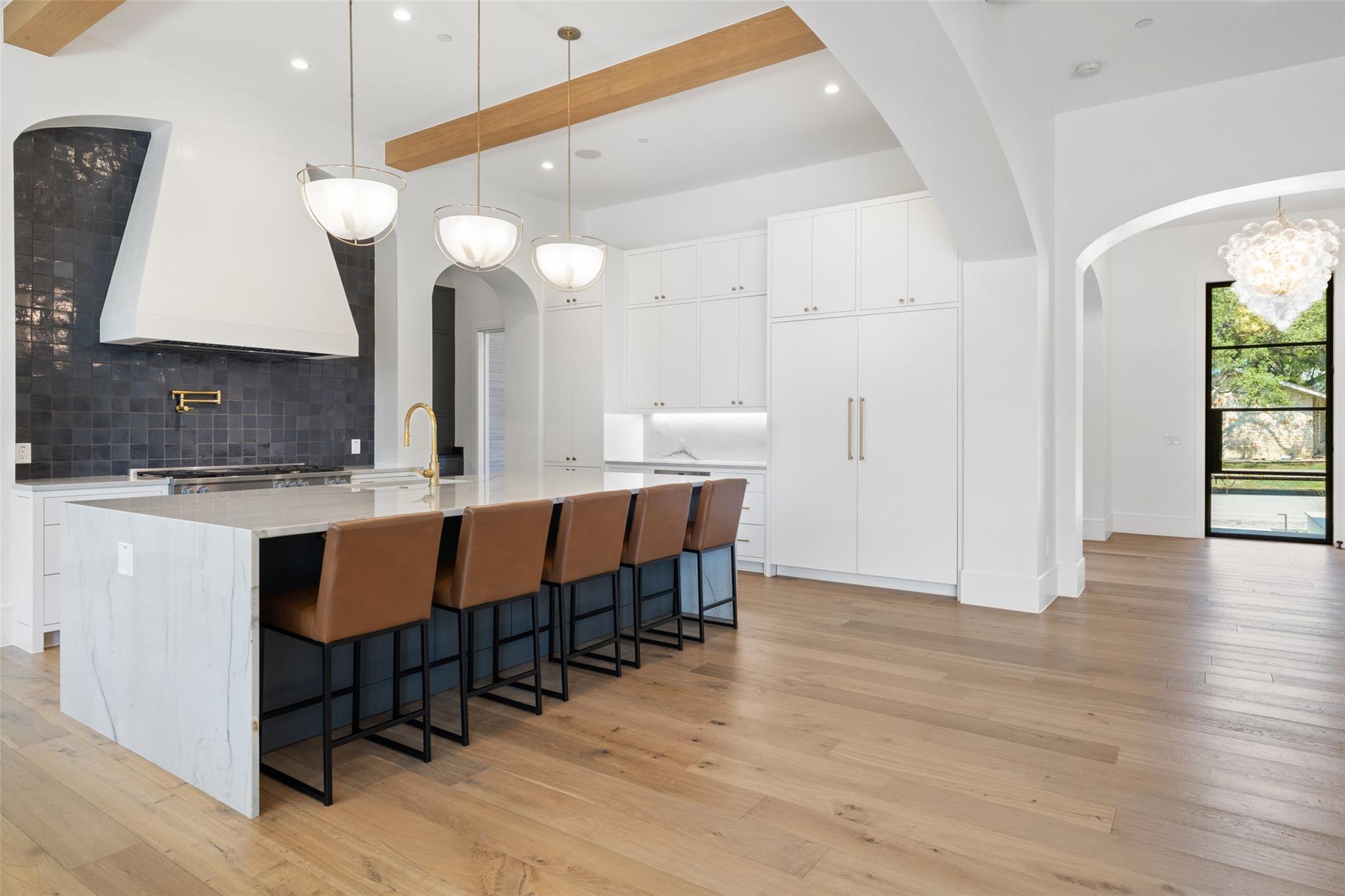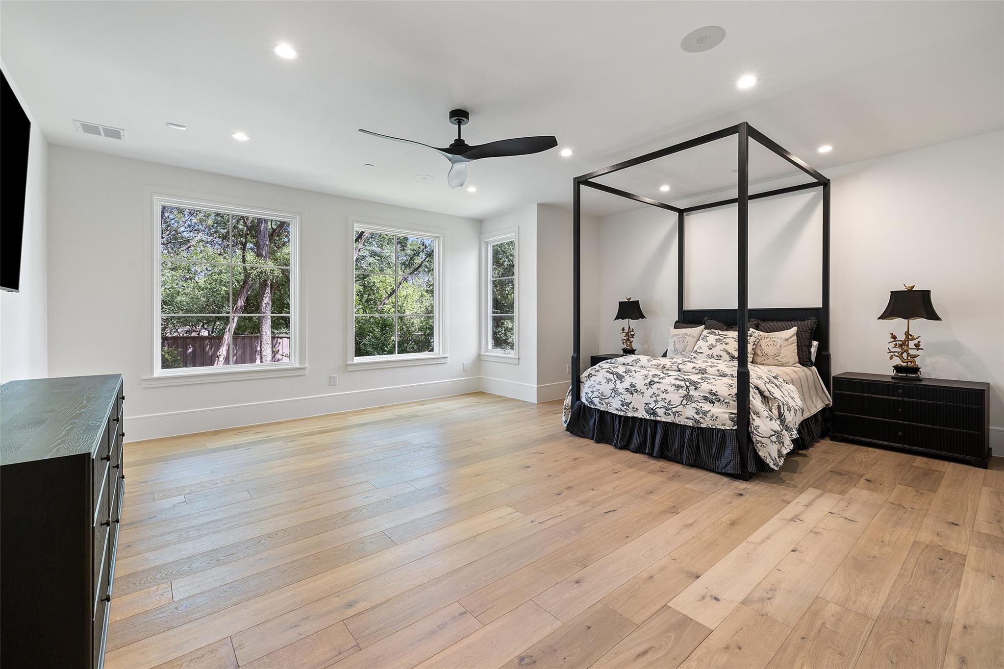 This exceptional home features a thoughtfully designed floor plan with expansive living spaces, wide-plank hardwood floors, beamed ceilings, custom cabinetry, and an abundance of natural light throughout. The main level offers an open-concept living and dining area, formal study, spacious primary suite, and a private guest suite. Upstairs includes three large secondary bedrooms, a generous game room, and a stylish lounge with wet bar--perfect for entertaining. The lower level provides additional flexibility with an oversized bedroom suite and a versatile bonus room ideal for a gym, media room, or casual living. Enjoy two levels of covered outdoor living, a sparkling pool, and sweeping views of the city skyline. Prime location just minutes from downtown and Zilker Park. www.601rileyrd.com