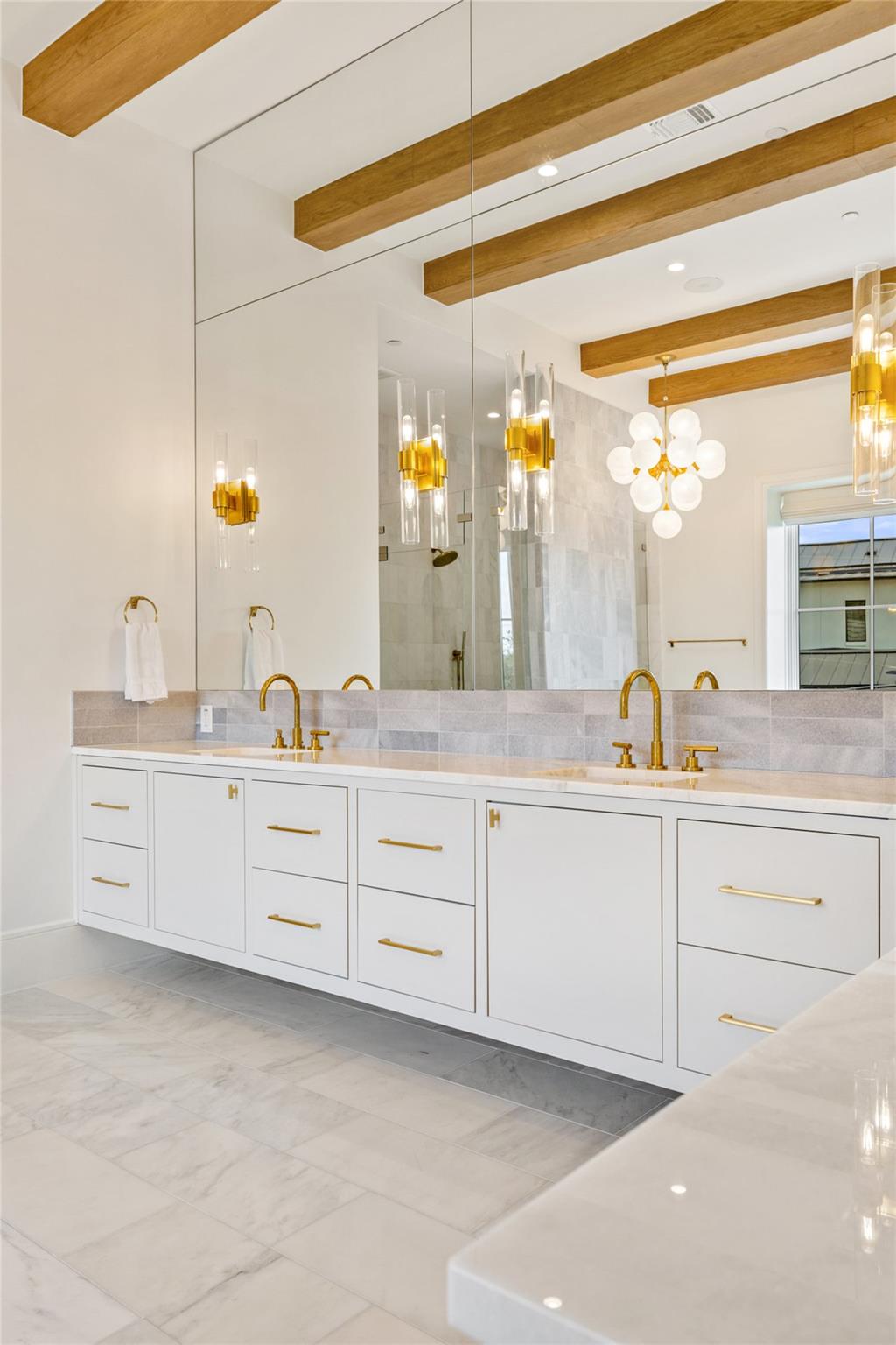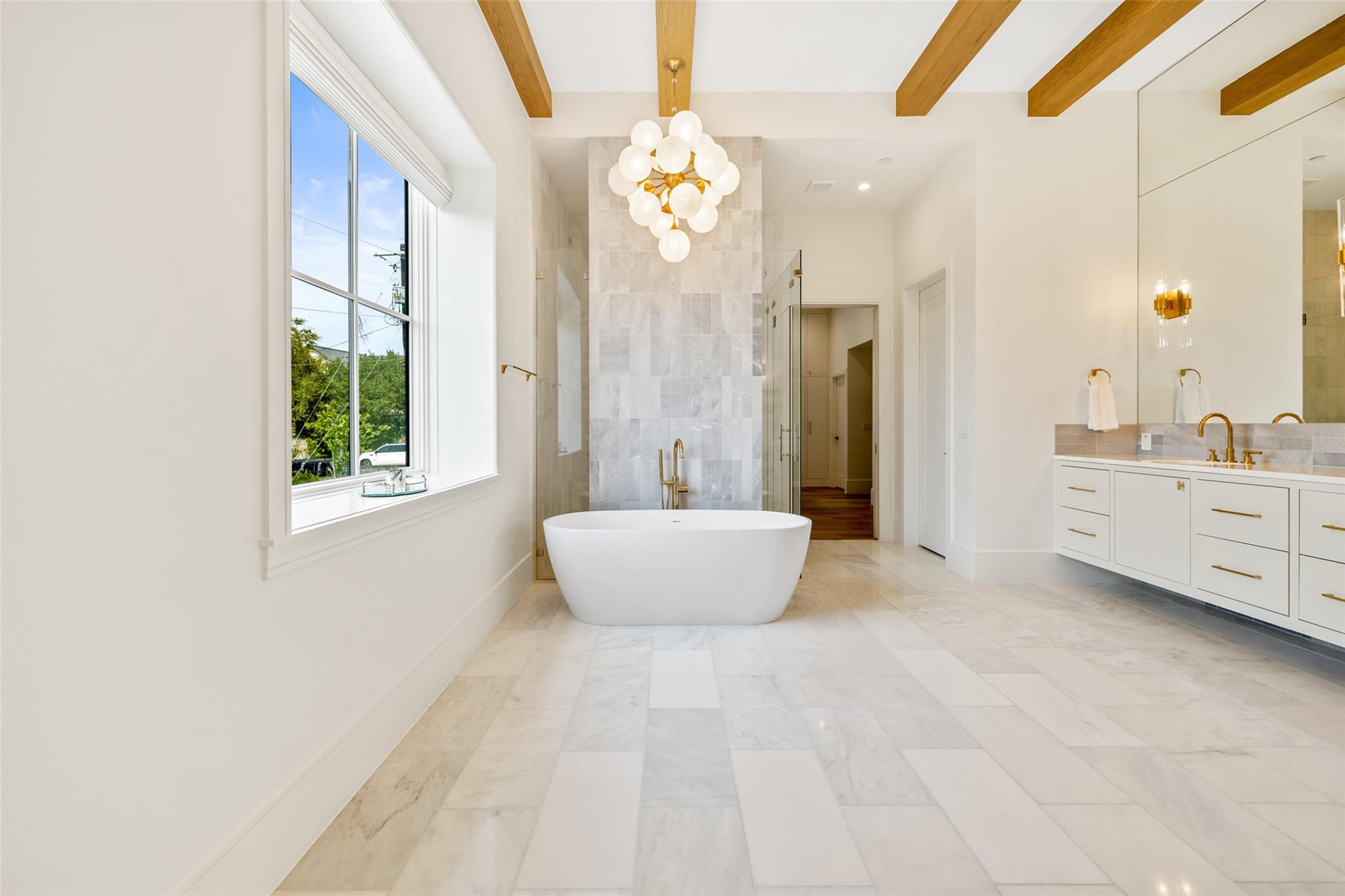 Other Interior Features: Bar, Bookcases, Built-in Features, Beamed Ceilings, High Ceilings, Chandelier, Quartz Counters, Double Vanity, Eat-in Kitchen, Entrance Foyer, Interior Steps, Kitchen Island, Multiple Dining Areas, Multiple Living Areas, Pantry, Primary Bedroom on Main, Recessed Lighting, Soaking Tub, Walk-In Closet(s), Washer Hookup, Wet Bar