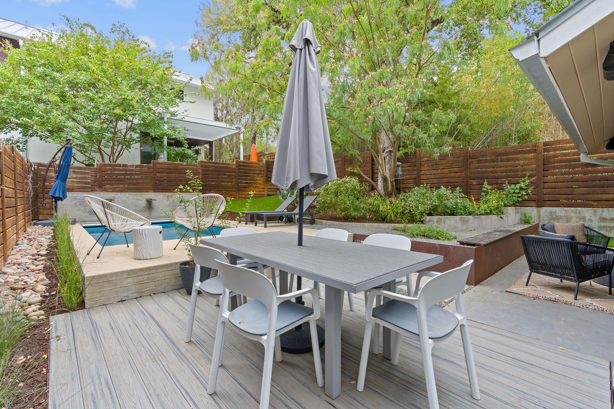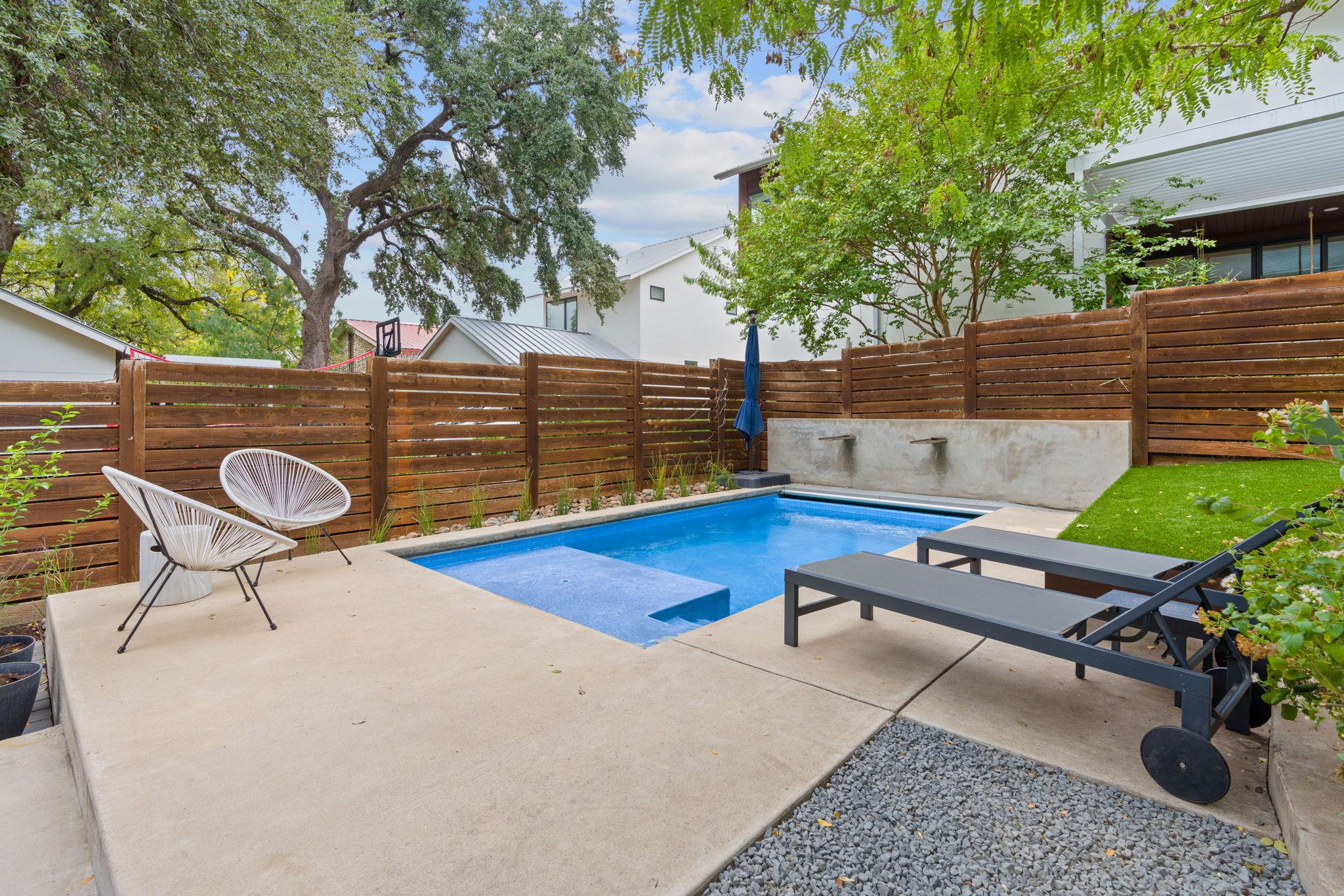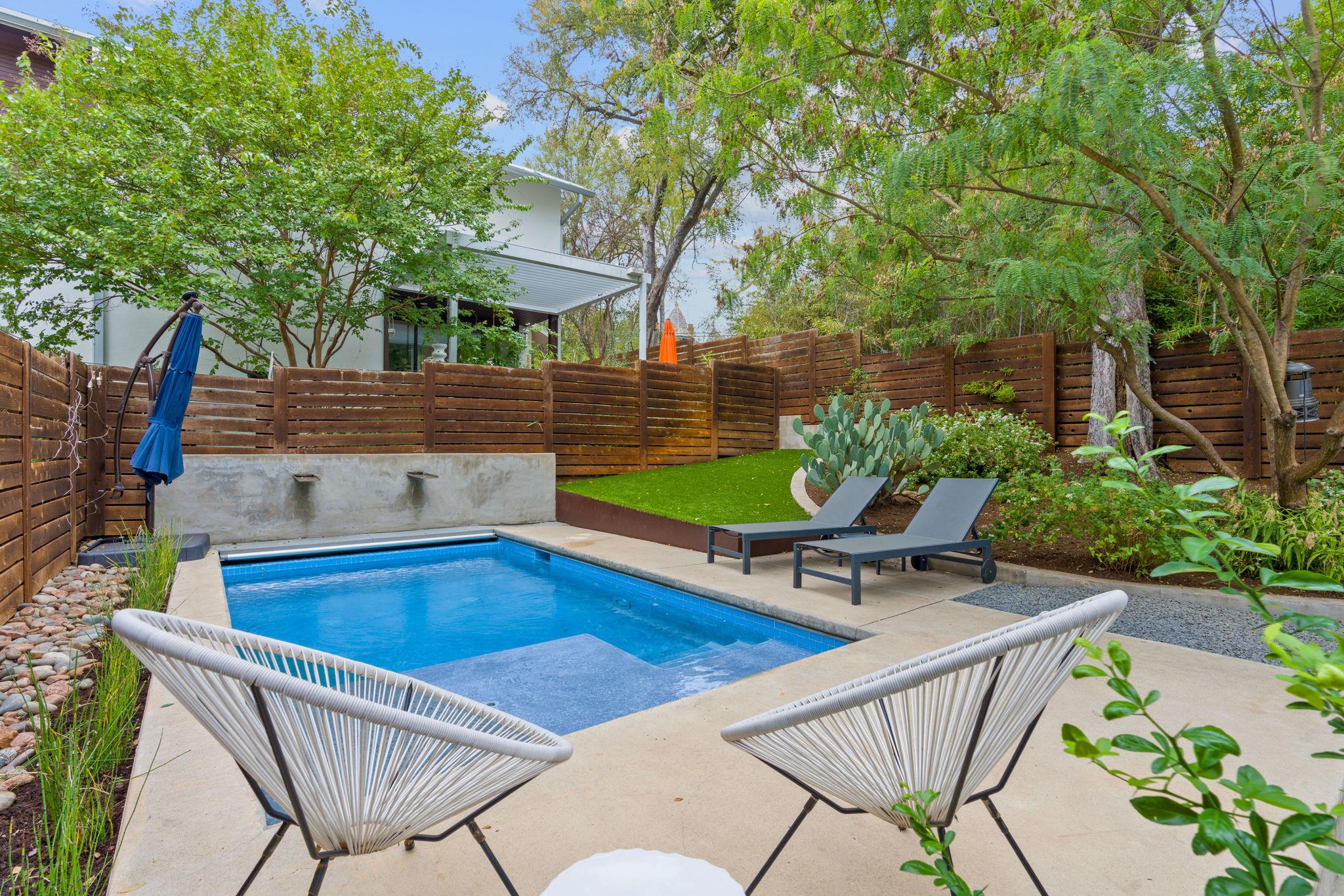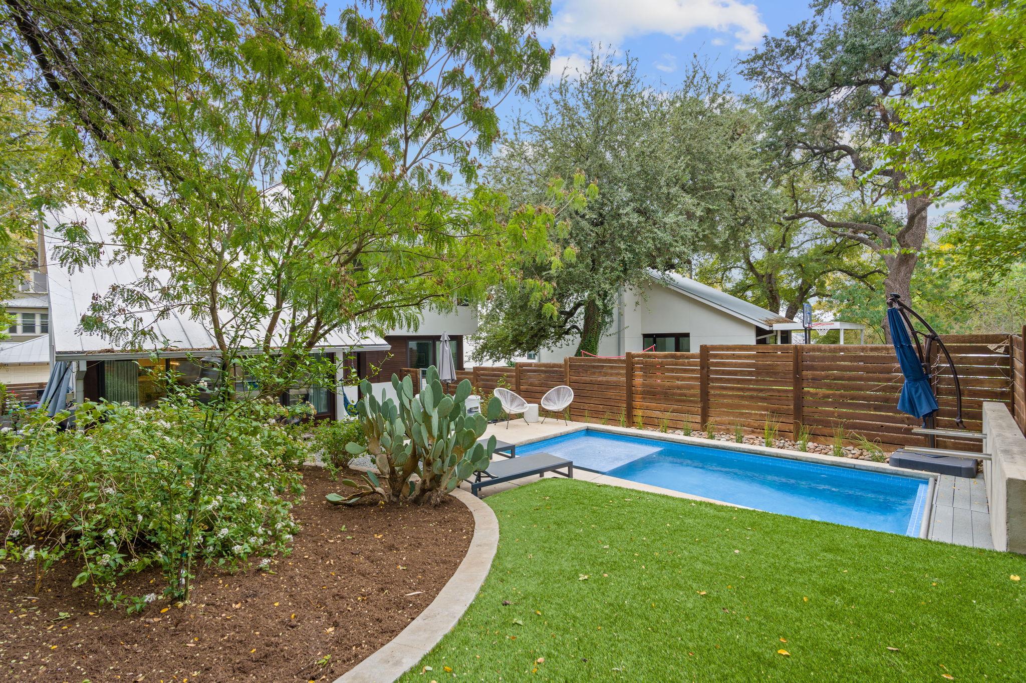 Location doesn't get much better than this Clarksville retreat tucked out of hustle and bustle but steps from downtown and Ladybird Lake! This 5 star green, low maintenance home features a perfect balance of urban convenience and single family privacy. The custom floor plan leaves nothing to be desired with four bedrooms (one bedroom includes a built in murphy bed), a loft space perfect for office or extra living, and a tucked away playroom behind a hidden door. The main living space features two walls of sliding glass doors, vaulted ceilings, custom drapery and automatic blinds. There is no shortage of closet and pantry space in this meticulously designed space. Entertaining made easy in this urban oasis with pool, covered patio, and Trex deck. Rare 2 car garage with 3 additional parking spaces. Zoned to Mathews Elementary, O'Henry Middle and Austin High. Ready for tenants mid September, rent includes weekly pool and lawn maintenance. Agent owned.