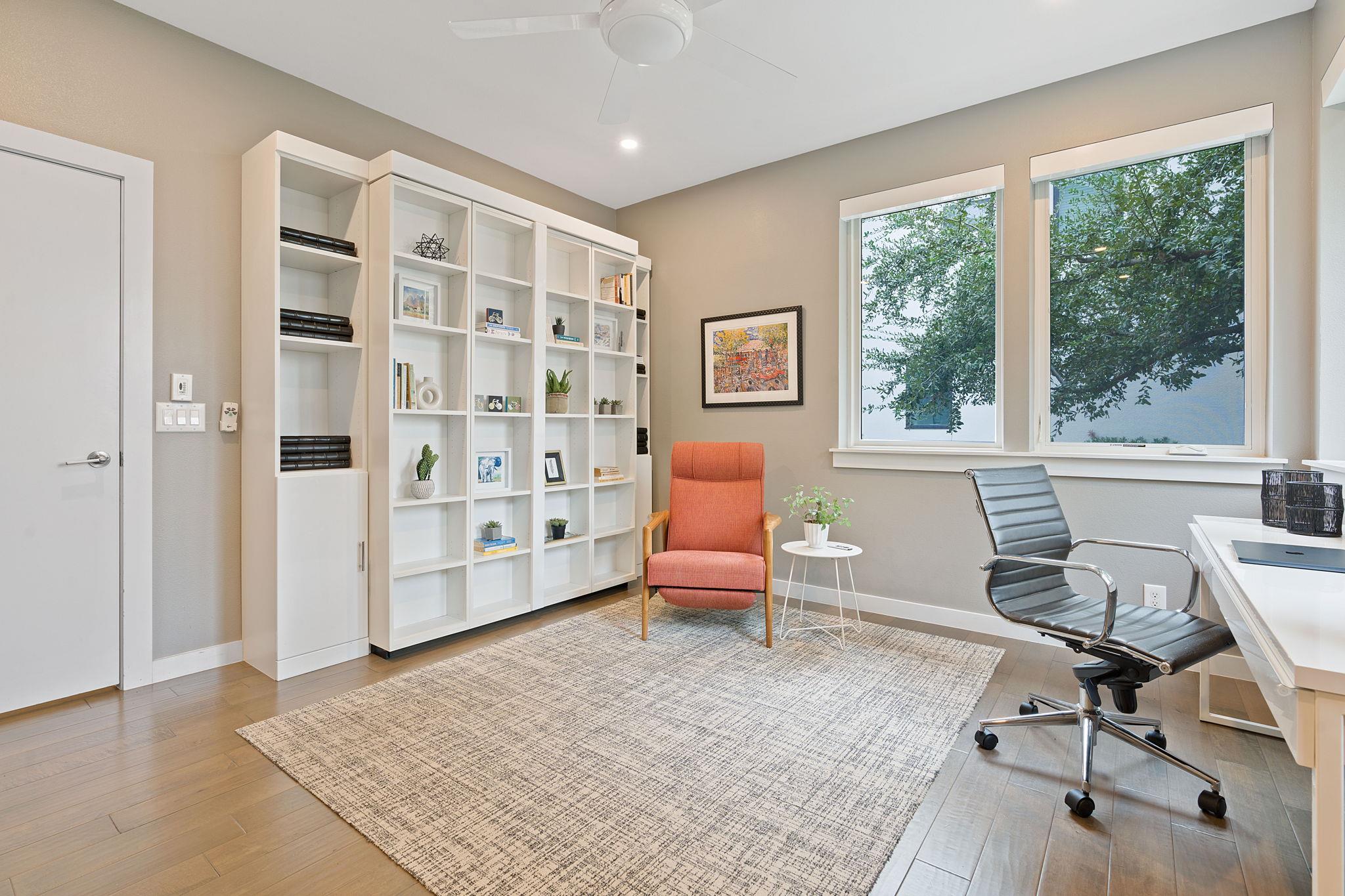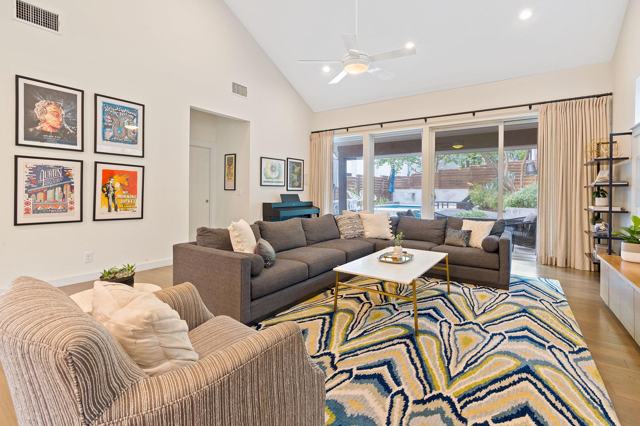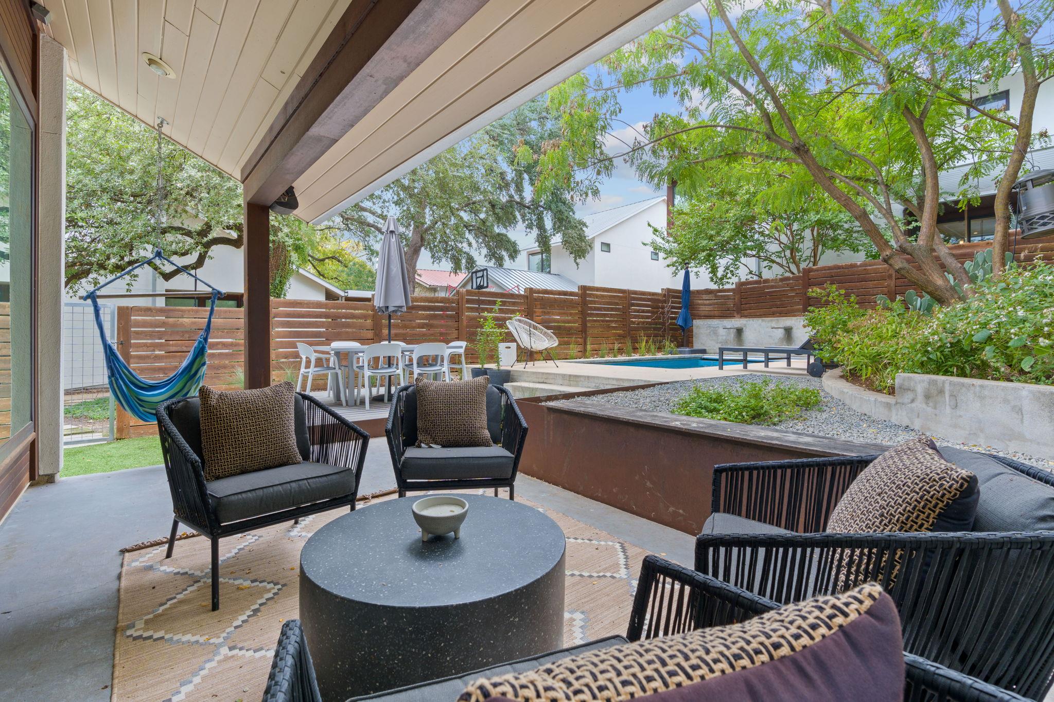 Location doesn't get much better than this Clarksville retreat tucked out of hustle and bustle but steps from downtown and Ladybird Lake! This 5 star green, low maintenance home features a perfect balance of urban convenience and single family privacy. The custom floor plan leaves nothing to be desired with four bedrooms (one bedroom includes a built in murphy bed), a loft space perfect for office or extra living, and a tucked away playroom behind a hidden door. The main living space features two walls of sliding glass doors, vaulted ceilings, custom drapery and automatic blinds. There is no shortage of closet and pantry space in this meticulously designed space. Entertaining made easy in this urban oasis with pool, covered patio, and Trex deck. Rare 2 car garage with 3 additional parking spaces. Zoned to Mathews Elementary, O'Henry Middle and Austin High. Ready for tenants mid September, rent includes weekly pool and lawn maintenance. Agent owned.