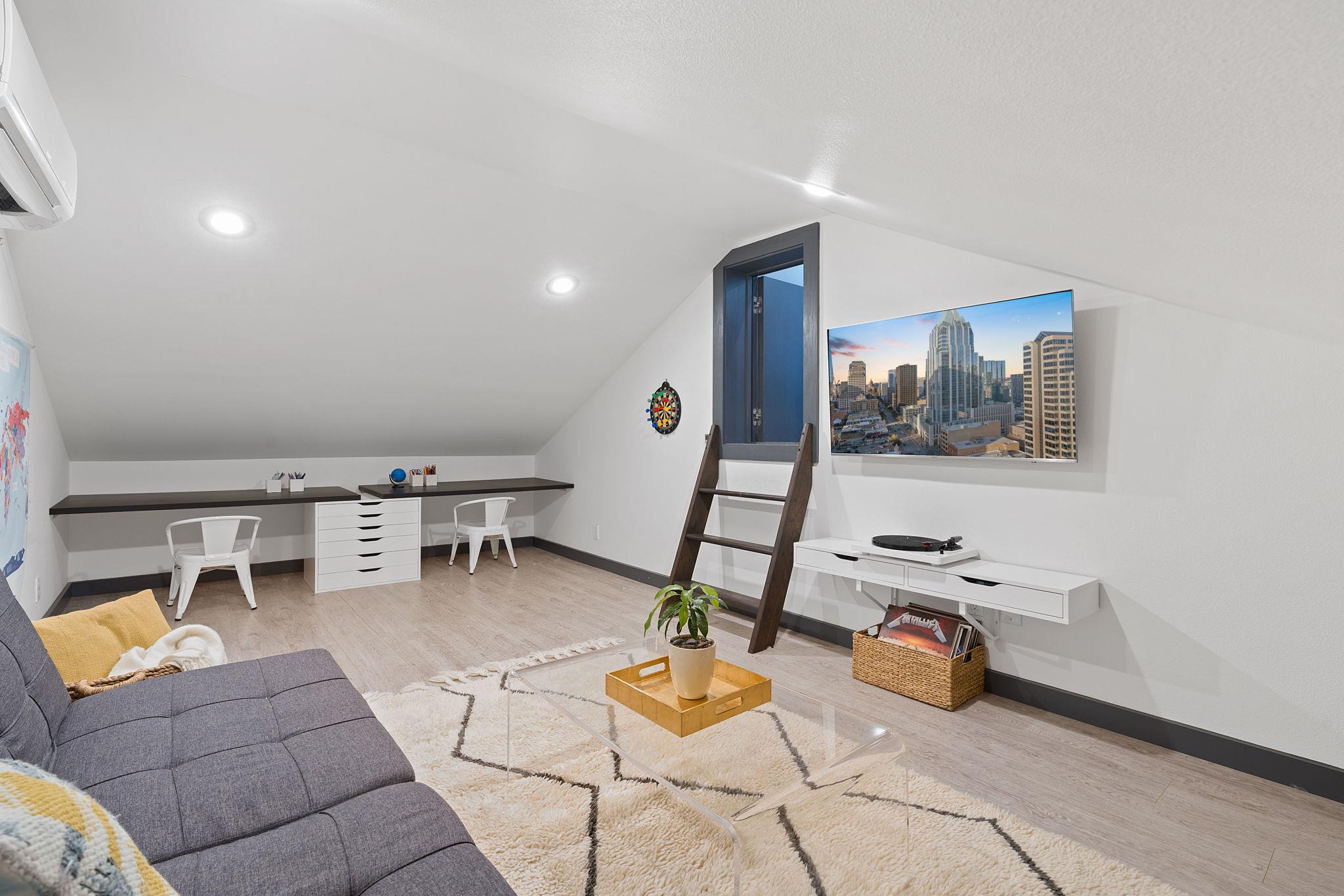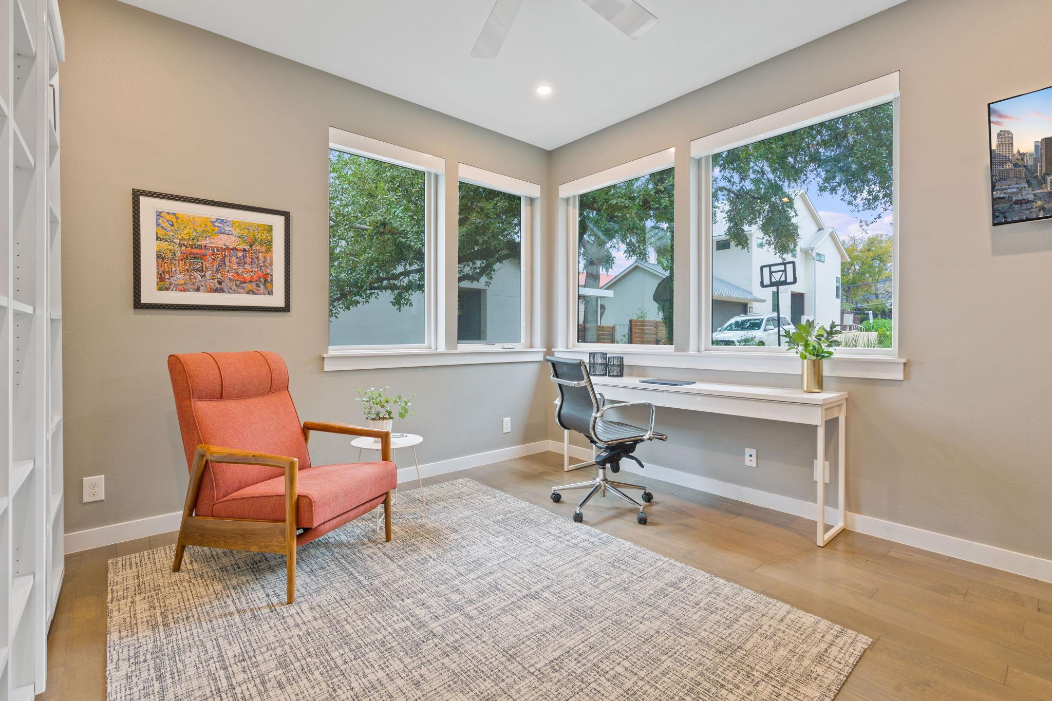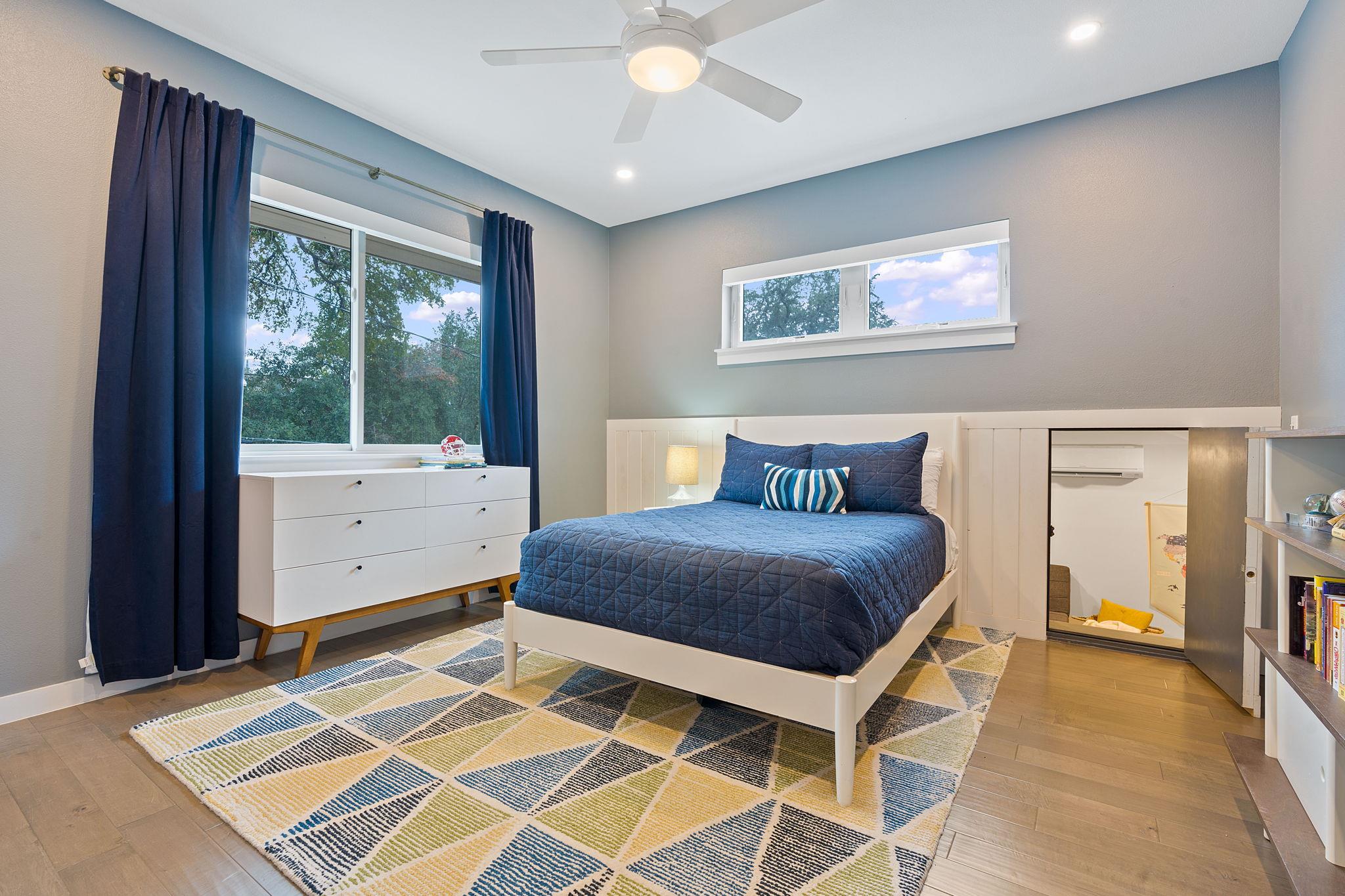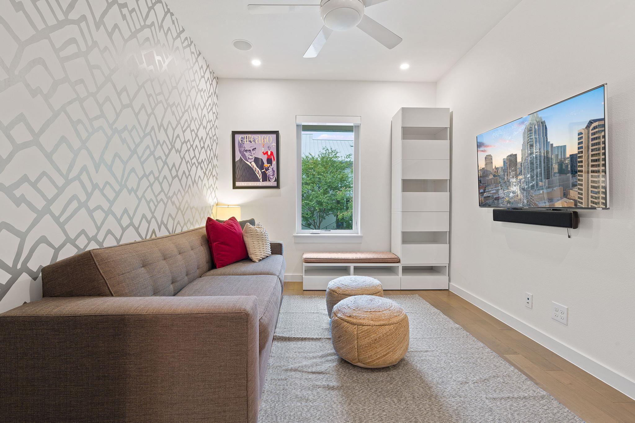 Location doesn't get much better than this Clarksville retreat tucked out of hustle and bustle but steps from downtown and Ladybird Lake! This 5 star green, low maintenance home features a perfect balance of urban convenience and single family privacy. The custom floor plan leaves nothing to be desired with four bedrooms (one bedroom includes a built in murphy bed), a loft space perfect for office or extra living, and a tucked away playroom behind a hidden door. The main living space features two walls of sliding glass doors, vaulted ceilings, custom drapery and automatic blinds. There is no shortage of closet and pantry space in this meticulously designed space. Entertaining made easy in this urban oasis with pool, covered patio, and Trex deck. Rare 2 car garage with 3 additional parking spaces. Zoned to Mathews Elementary, O'Henry Middle and Austin High. Ready for tenants mid September, rent includes weekly pool and lawn maintenance. Agent owned.