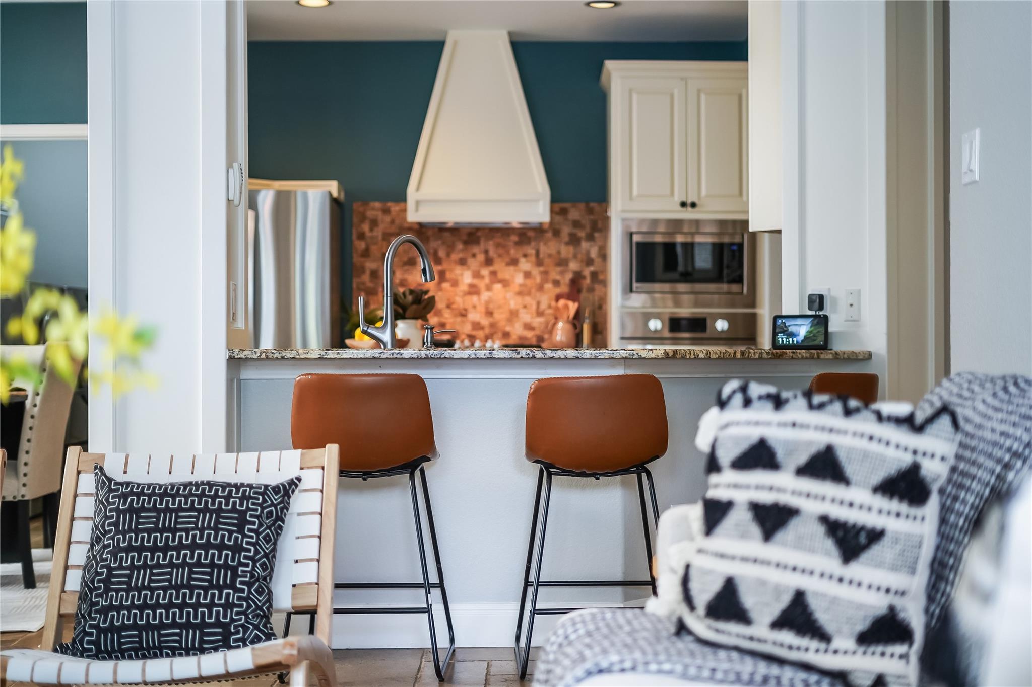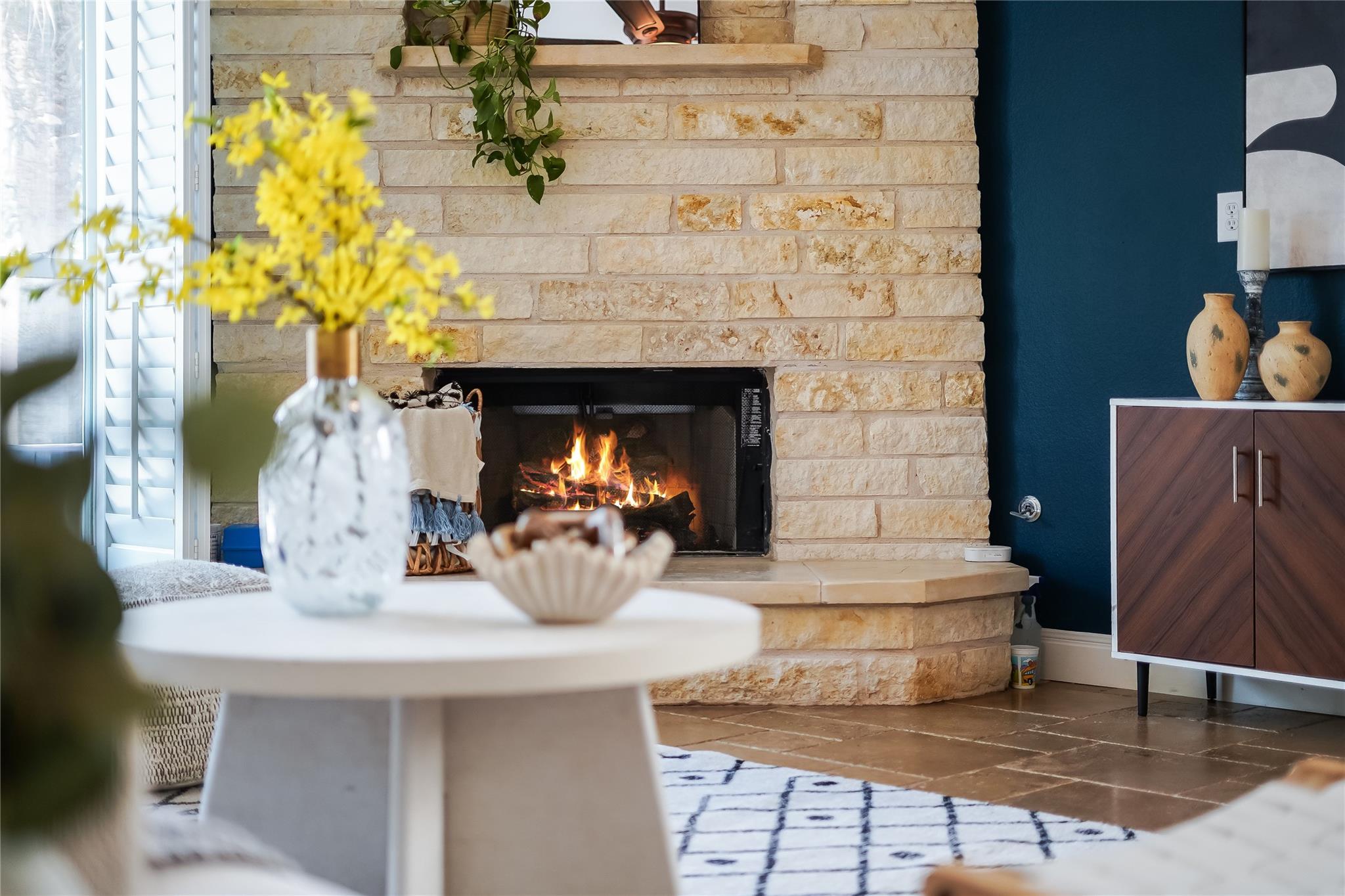 Step inside to a grand archway entry, high ceilings, and natural light. Travertine floors keep the home cool in summer, while a stone fireplace adds winter warmth. Plantation shutters, smart thermostats, smart switches, and an ADT security system blend style and convenience. Fresh paint, updated fixtures, new kitchen/laundry appliances, and added island cabinetry make the home feel fresh, functional, and move-in ready.