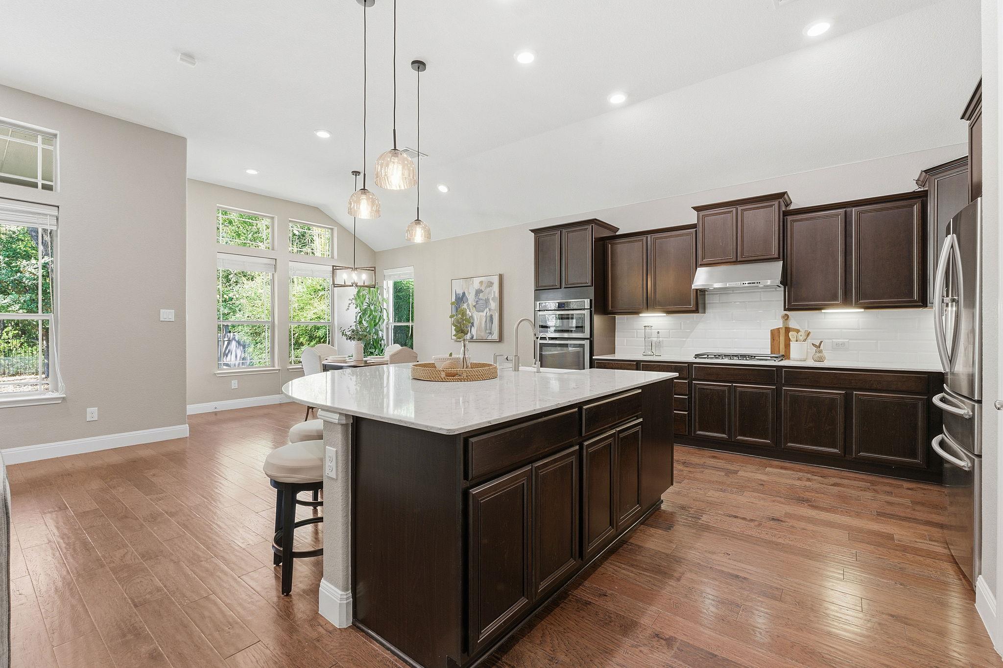 This home offers the perfect blend of comfort, style, and location in one of Round Rock's most desirable areas. Situated just minutes from Kalahari Resort, Dell Diamond, Old Settlers Park, and a variety of popular food trucks, this home provides easy access to the best local attractions while maintaining a quiet neighborhood feel. Inside, you'll find an open and airy floor plan filled with natural light. The spacious living area flows seamlessly into the dining space and updated kitchen, featuring modern finishes, stainless steel appliances, generous counter space, and plenty of storage. Every detail has been thoughtfully designed to create a warm, inviting environment that's ideal for both everyday living and entertaining. The primary suite provides a private retreat with a large walk-in closet and a beautifully appointed bathroom. Additional bedrooms offer flexibility for guests, a home office, or creative space. The backyard is truly special. With direct access to the community trails, you can step outside and enjoy scenic walks, runs, or bike rides right from your own property. The outdoor space is perfect for relaxing, hosting gatherings, or watching sunsets over the greenbelt with no rear neighbors to interrupt your view. Located near major employers, highly rated schools, shopping, dining, and entertainment, this home combines suburban tranquility with urban convenience. 612 Trailside Drive is ready for its next owner to enjoy everything this vibrant Round Rock community has to offer! 2 hour notice please for showings***