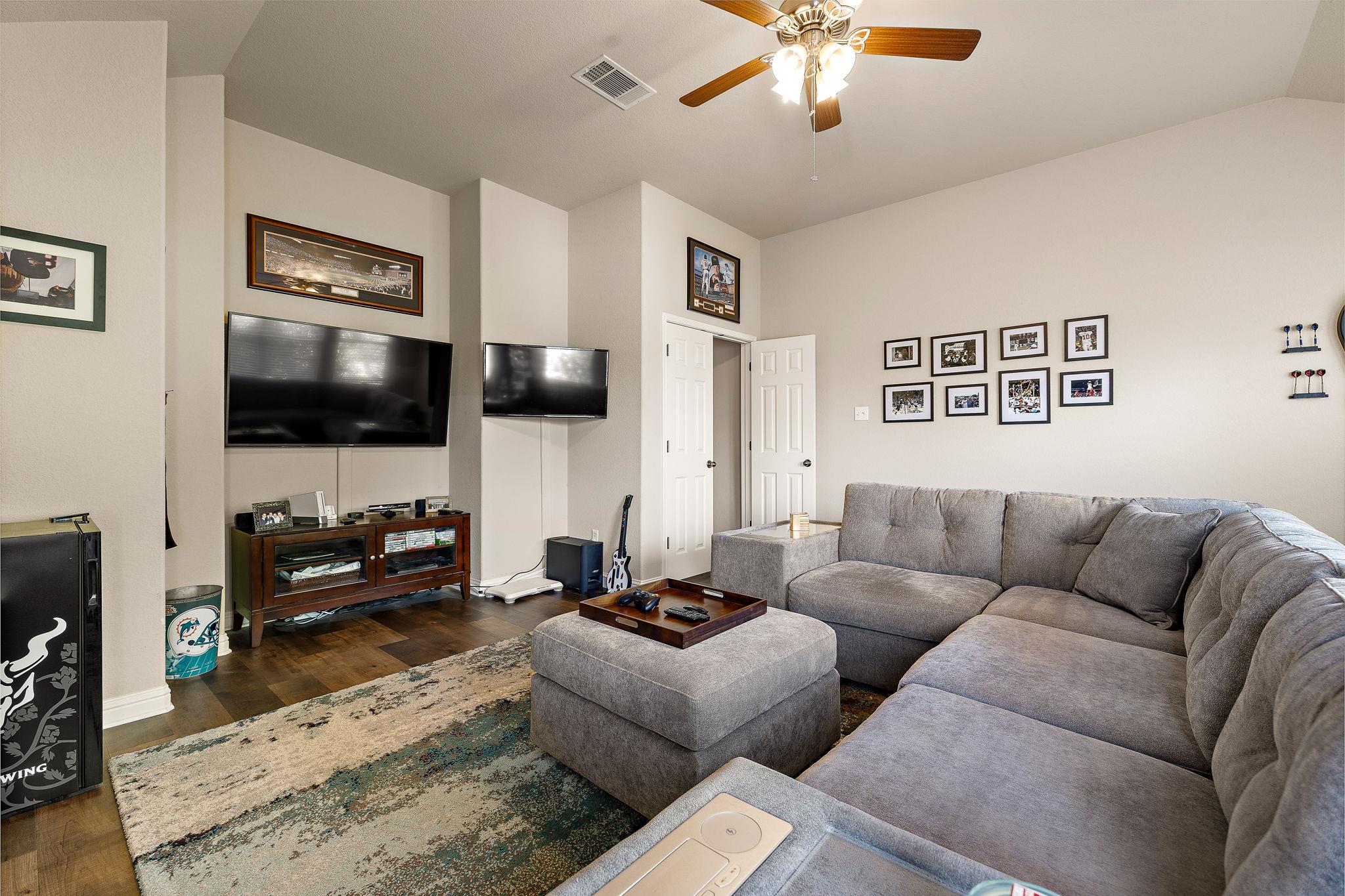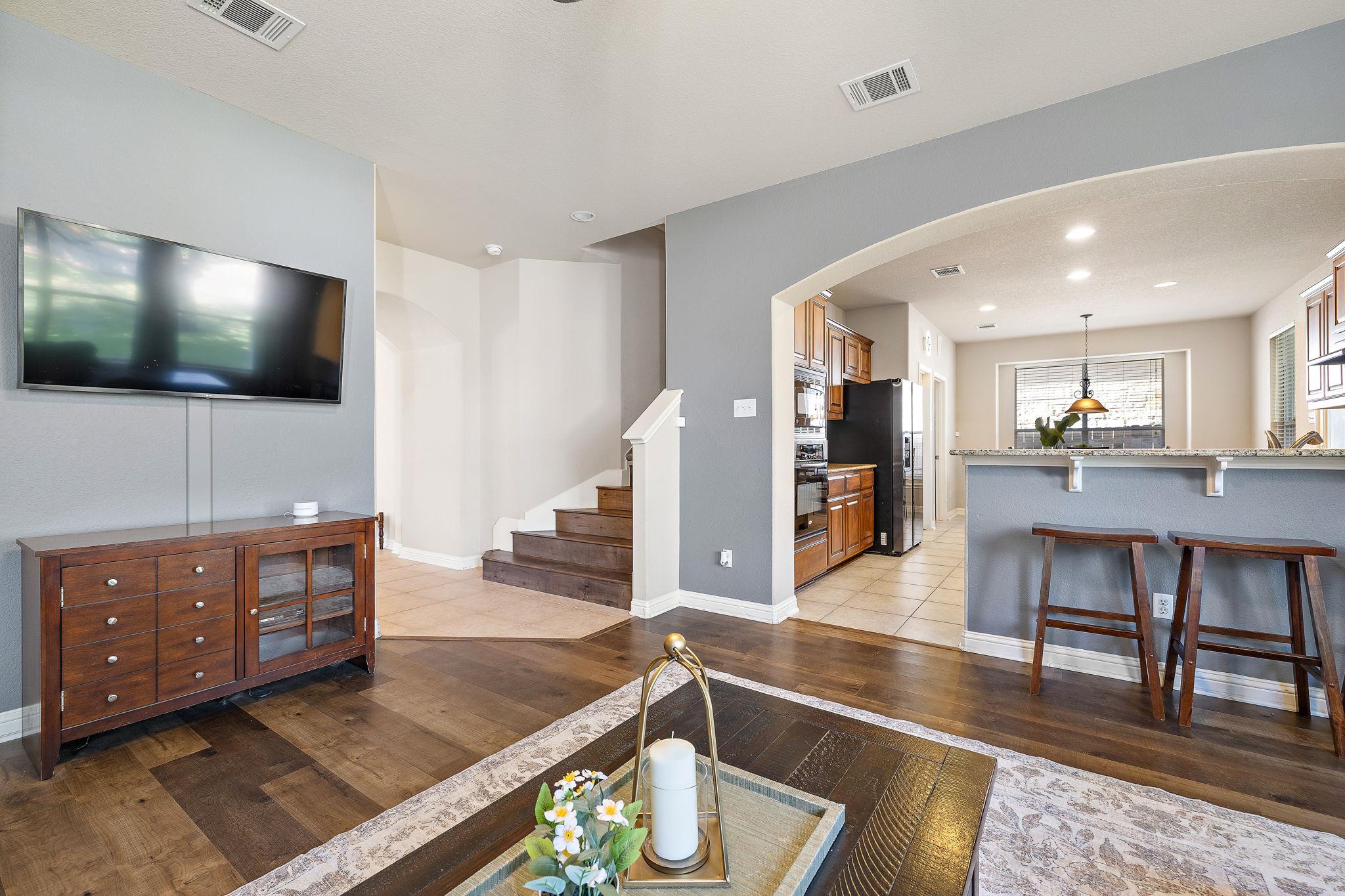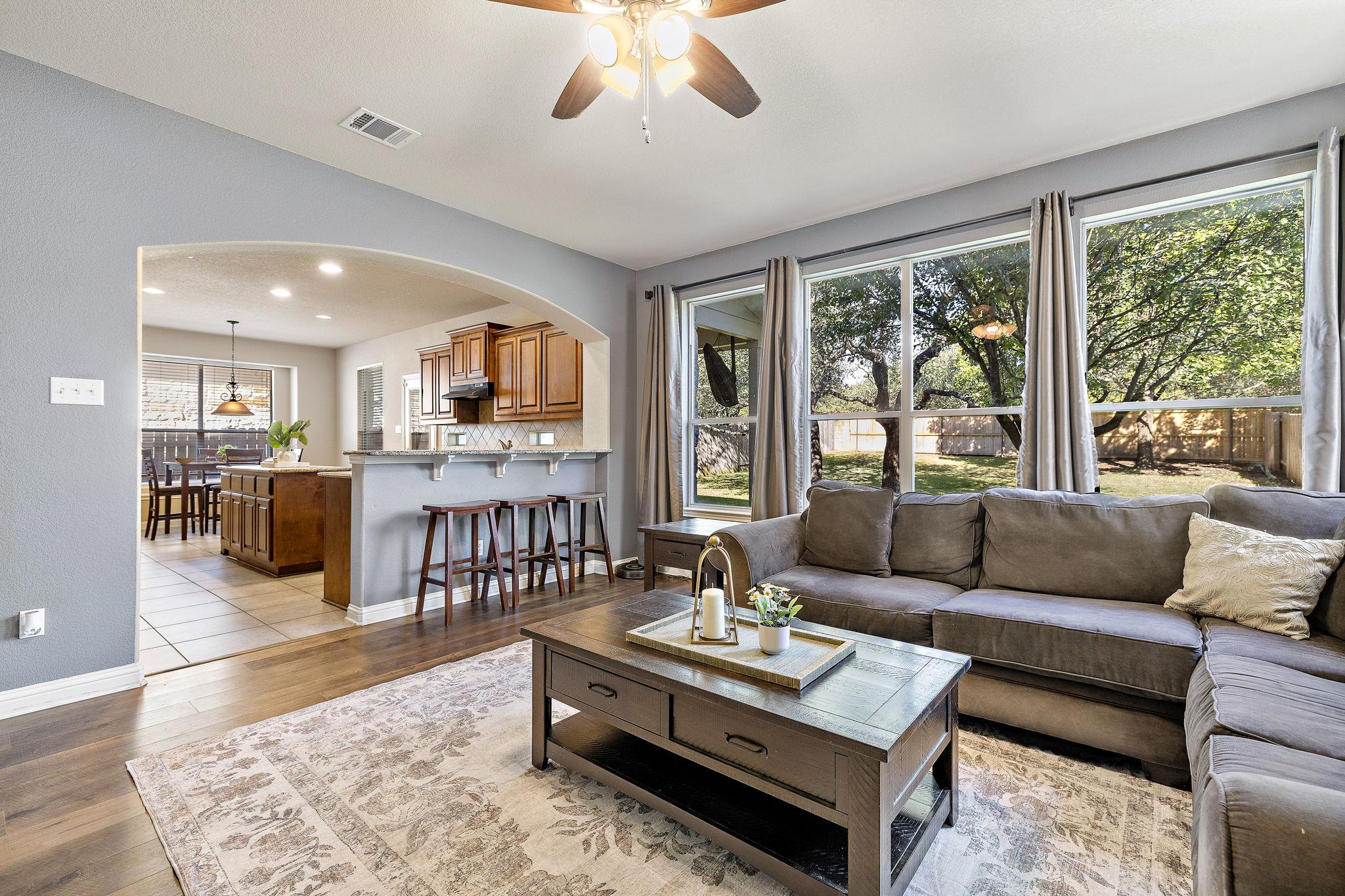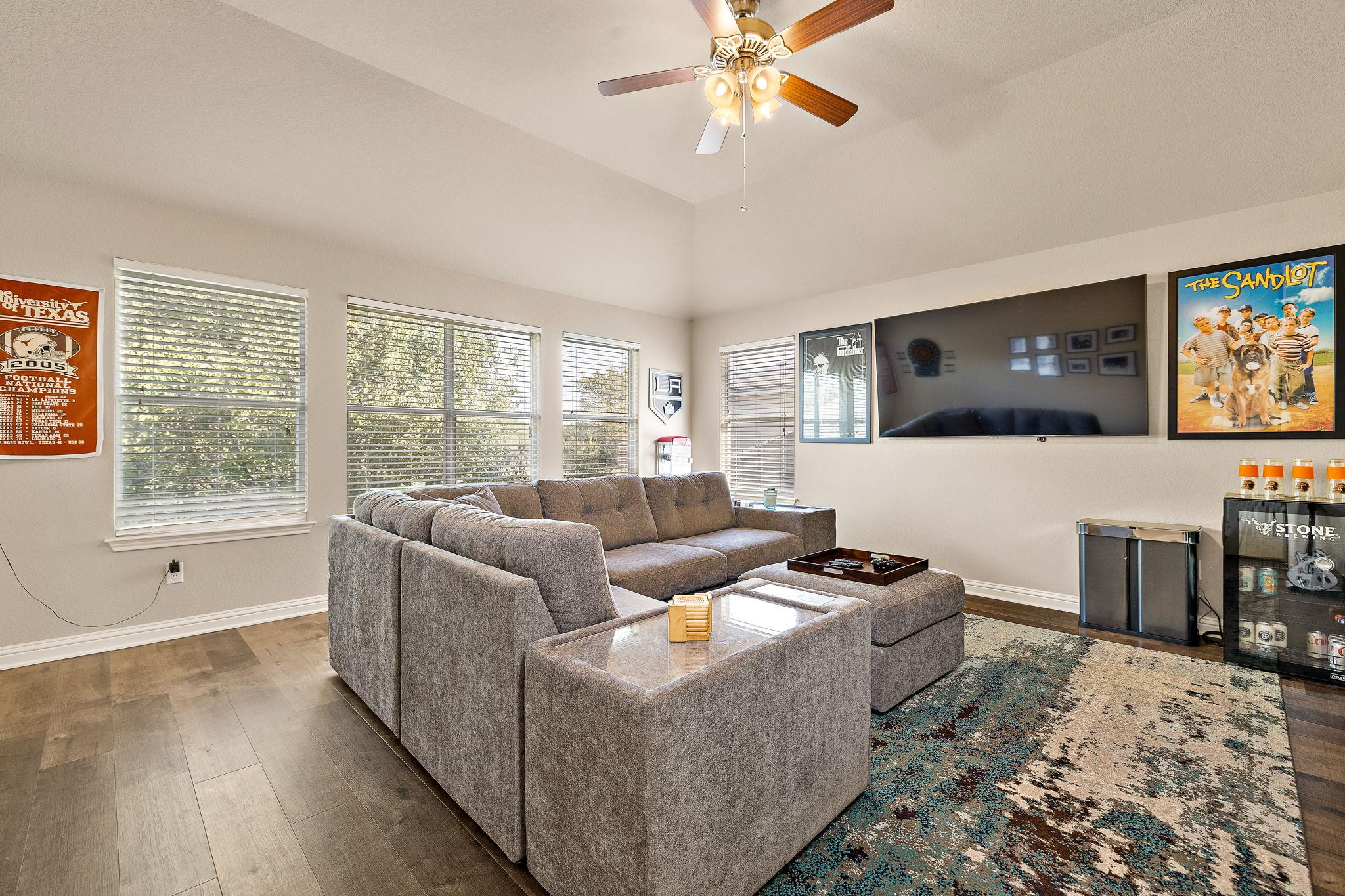 Welcome to 619 Basie Bend, a well-maintained home in Cypress Canyon set on a private lot with no rear neighbors and backing to the Baker Bird Sanctuary. Cypress Canyon is part of the Deer Creek homeowners association, which offers two neighborhood pools, a basketball court, a playground, a meeting space, walking trails, pocket parks, and even its own cave, Dies Ranch Treasure Cave- a historic site once explored for hidden treasure.