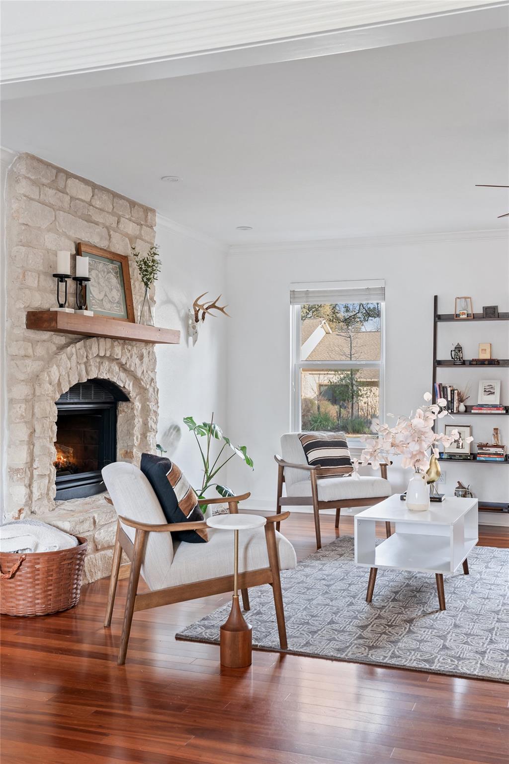 Welcome to 6523 Heron Drive, a charming two-story home nestled in Great Hills. This 4 bed, 2.5 bath home offers an expansive floor plan perfect for entertaining friends and family. Features like wood floors, beamed ceilings, and an abundance of natural light create a harmonious and welcoming atmosphere. As you step inside, you are greeted by the living area featuring a cozy fireplace. The space flows seamlessly into the dining area and kitchen. Catering to both the casual cook and culinary enthusiasts, the kitchen boasts granite countertops and stainless steel appliances. An eat-in dining nook offers space for breakfast and casual meals while the formal dining area is ideal for more formal gatherings. Upstairs, the primary suite is a private retreat featuring an ensuite bath with a walk-in shower and his & hers walk-in closets. The two additional bedrooms are generously sized and share a spacious bathroom with ample cabinet and counter space. A spacious flex space can be used for a fourth bedroom or offers the perfect space for game and movie nights. Step through sliding glass doors to enjoy your private outdoor oasis in the backyard. Featuring a covered patio, extended stone patio, and beautiful landscaping with built-in landscape lighting and automatic sprinklers, the expansive backyard is perfect for al fresco dining, barbecuing, gardening, playing, or just relaxing. A shed in the backyard offers additional storage. Located in the picturesque neighborhood of Highlands at Oak Forest in Great Hills, this home is within walking distance to Great Hills Park and is in proximity to excellent schools, shopping centers, and recreational facilities, ensuring a convenient and fulfilling lifestyle. HVAC and water heater replaced in 2024.