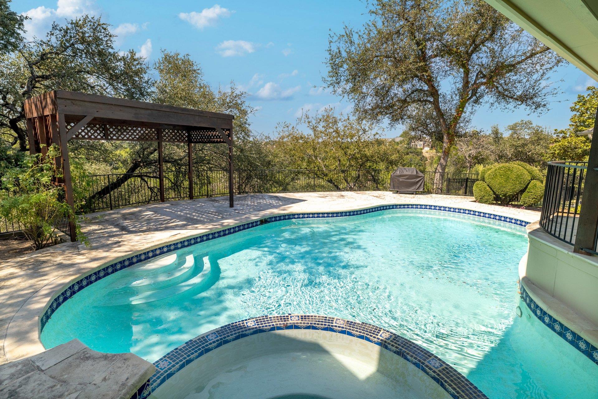 Special opportunity in a desirable pocket of Great Hills! Original owner, charming custom 4 bed/3.5 bath home that sits on a cul-de-sac on over 3 acres with a pool and beautiful tree-lined views. Home boasts great curb appeal and a functional layout with two en-suite bedrooms down and two additional bedrooms upstairs. As you walk through the front door you will see the spacious living room with vaulted ceilings and you'll catch a view of your private pool and surrounding scenic views. Feeds into highly-rated schools, strong community & 10 mins from all the restaurants and shopping you could need. Also great proximity to Great Hills Park, Oakview Park and Great Hills Country Club. Must see this gem! *Estate sale, no survey available*