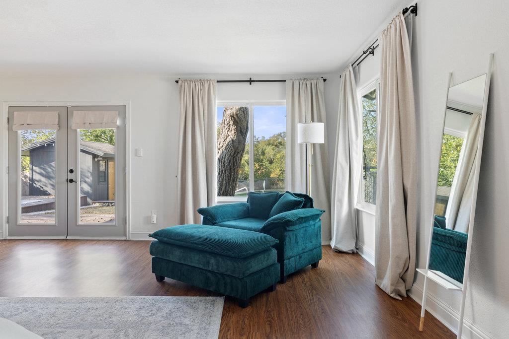 Beautifully re-imagined ranch-style home nestled on nearly 1.25 acres just 15 minutes from downtown Austin. Set back along a private drive and surrounded by mature oaks and a pecan grove, this home offers a warm sense of seclusion while remaining close to favorites like Oak Hill Social and a short drive to Jester King Brewing. Step into timeless appeal as you cross the charming front porch and enter into a updated interior featuring wood floors, exposed beams, and modern fixtures throughout. The heart of the home is the kitchen, featuring stone countertops, stainless steel appliances, and an open flow that connects to two distinct living rooms, ideal for both relaxed family time and more formal entertaining. The generous primary suite is its own private oasis, with expansive windows framing the wooded serenity outside and an en-suite bath boasting a double vanity and thoughtful design. Two additional bedrooms and a full bath provide flexible space for guests, family, or a home office. Outdoors is your own resort-style setting: a private pool, extended patio and deck, a dedicated pool bathroom, and an outdoor shower create the ultimate environment for al fresco dining, grilling, lively entertaining, or unwinding under the Hill Country sky. A dog run creates the perfect space for pets to roam safely. The three-car carport plus a workshop and shed offer space for storage or tinkering. A large circle drive provides ample space for a boat, RV, or extra toys. A breezeway connects the carport to the house for ease of access and flow.